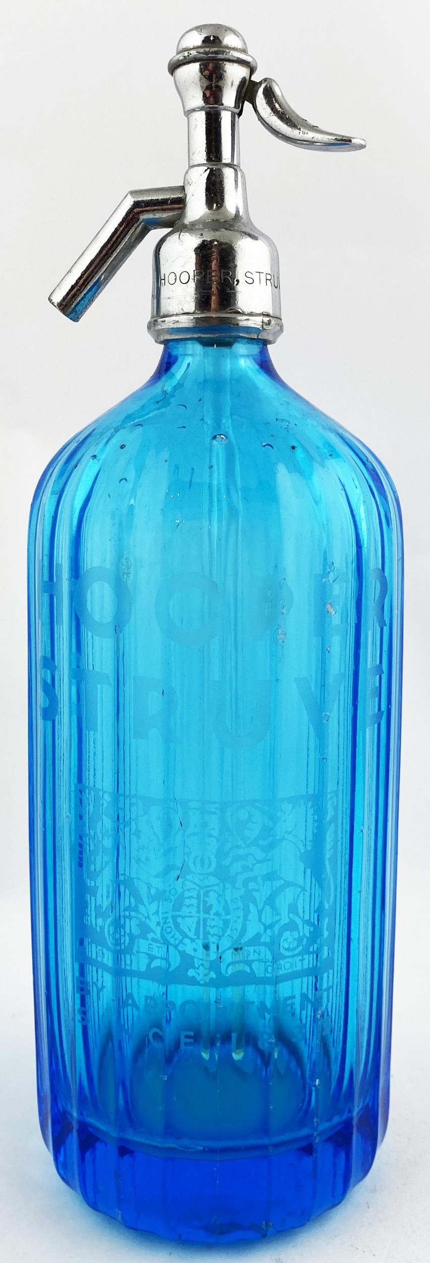 HOOPER STRUVE SODA SYPHON. 13ins tall. Acid etched complete with trigger. Body dings.