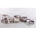 Cups- one cup has a chip to the rim, 2 cups are showing hairline cracks, one cup has a repair to the handle and one cup has a repair. Plates all showing hairline cracks, one small plate has a chip to the rim. Lidded pot chip to inside of lid, residue to inside and out. Teapot - showing hairline cracks. All pieces have surface marks throughout, loss of gilding.