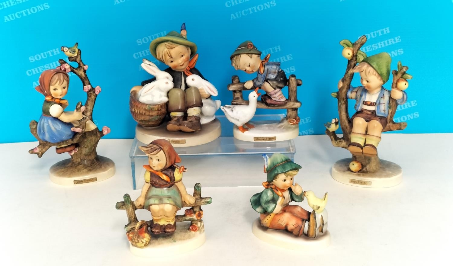 Hummel Figures (6) to include Apple Tree Boy and Girl, Playmates, etc. Tallest 15cm.