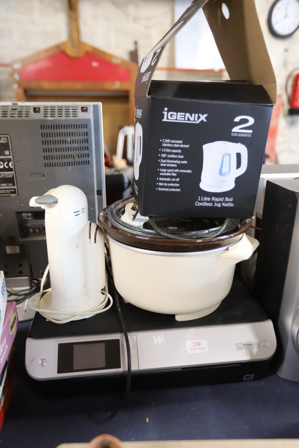 Kenwood electric tin opener, new kettle & HP Envy print/scan/copy & photo - warranted until 12 noon Tuesday following the above sale