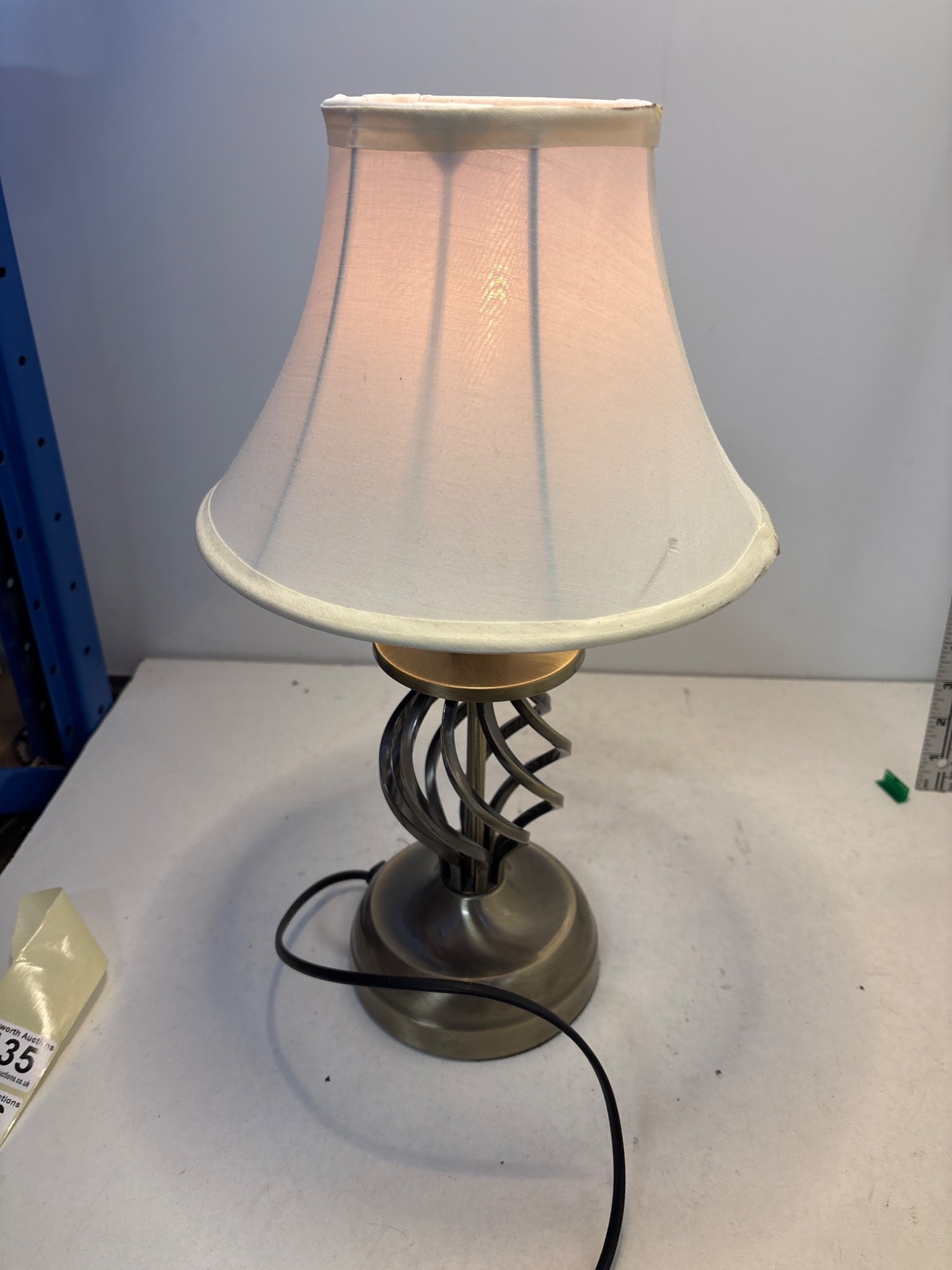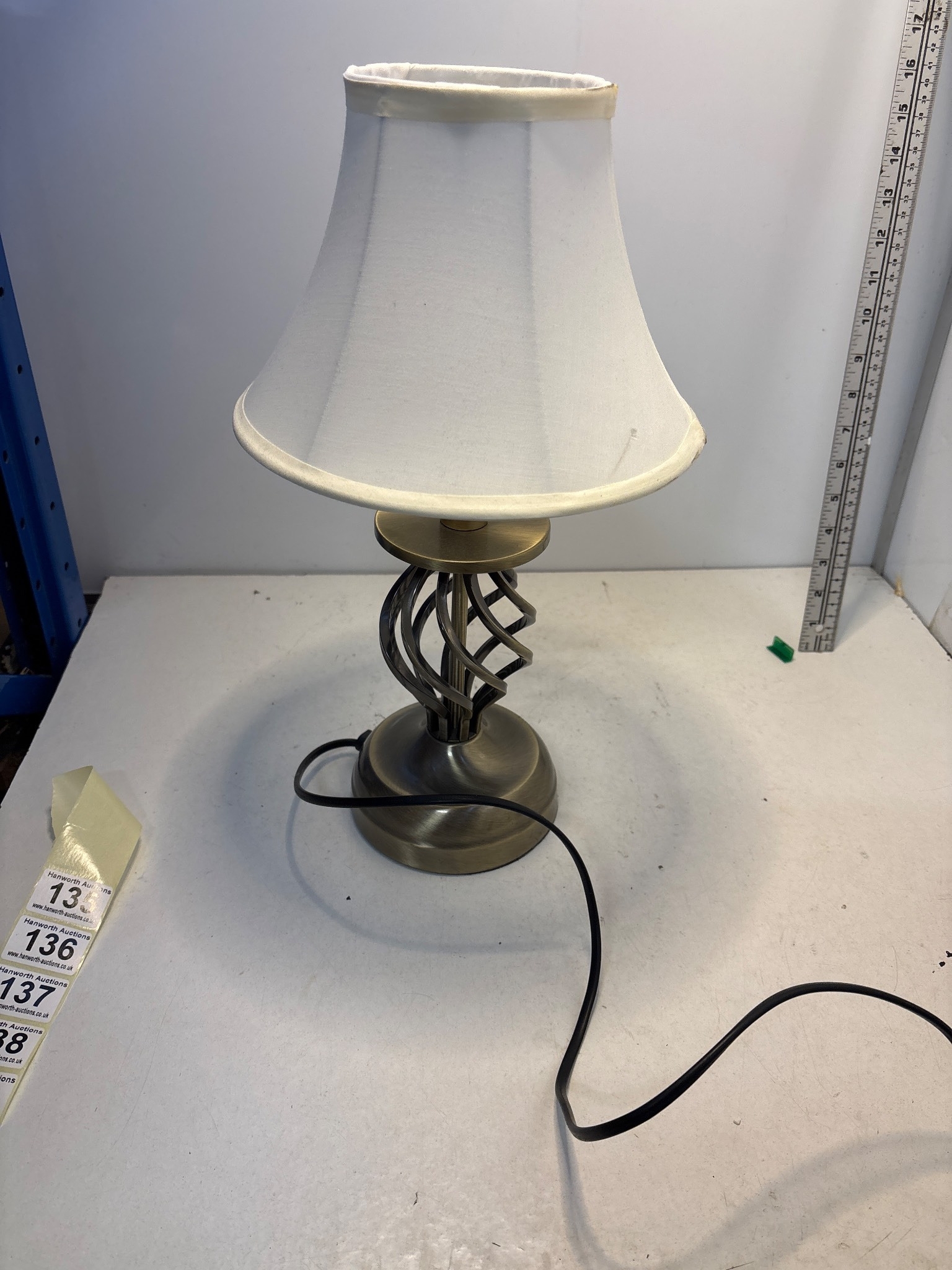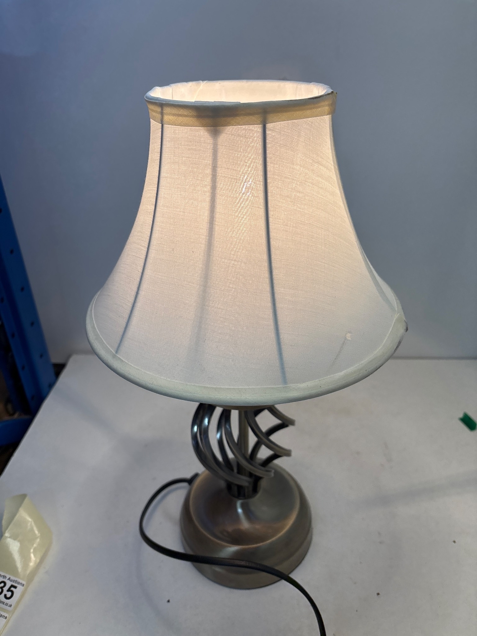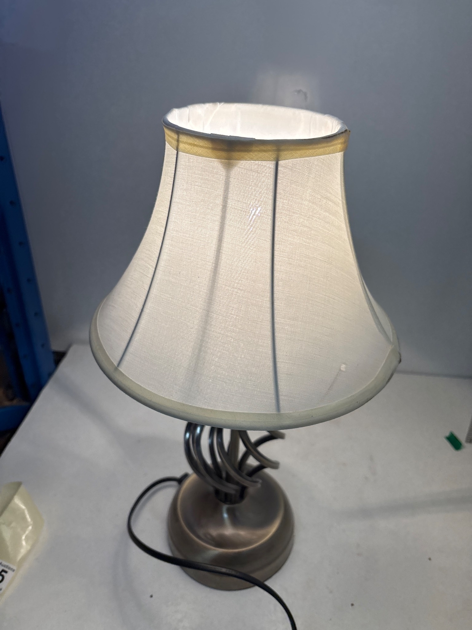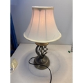 Touch table lamp with a white fabric shade, functional. 3 brightnesses
