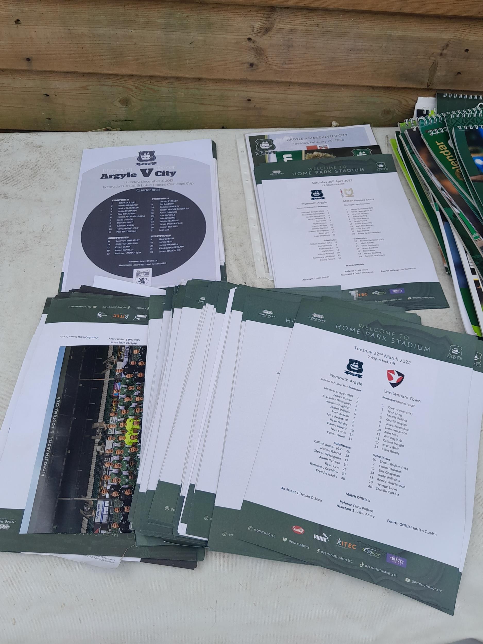 Football memorabilia : Mainly Plymouth Argyle, souvenir programmes, tickets, calendars etc.