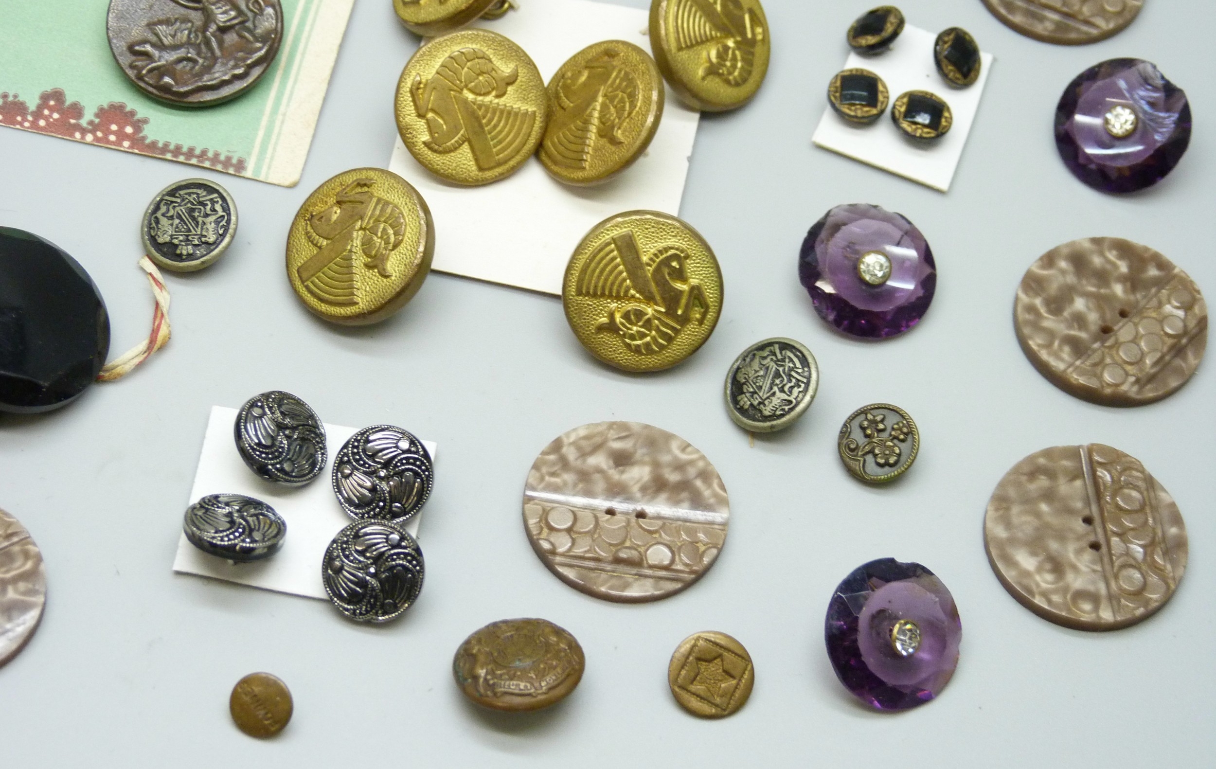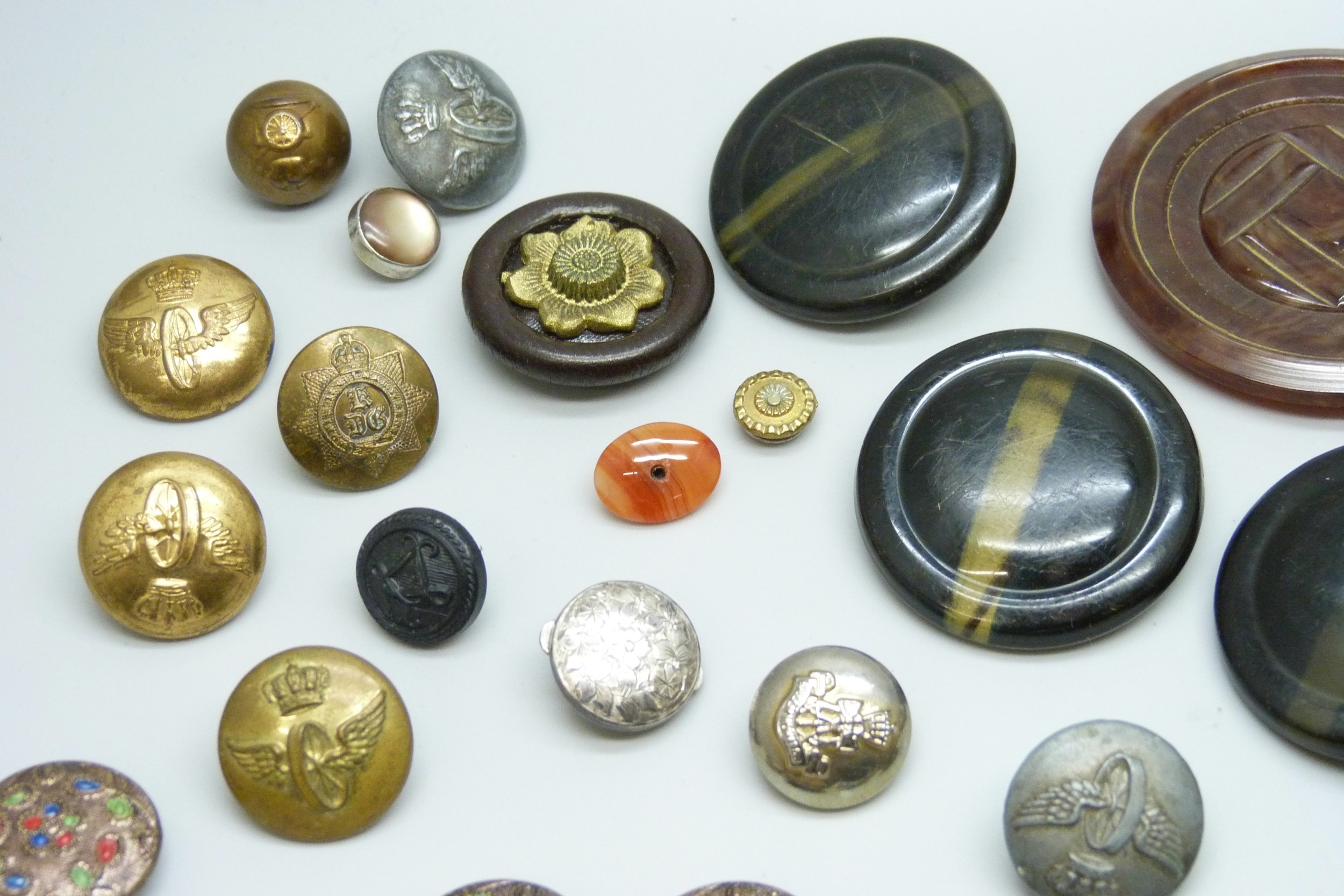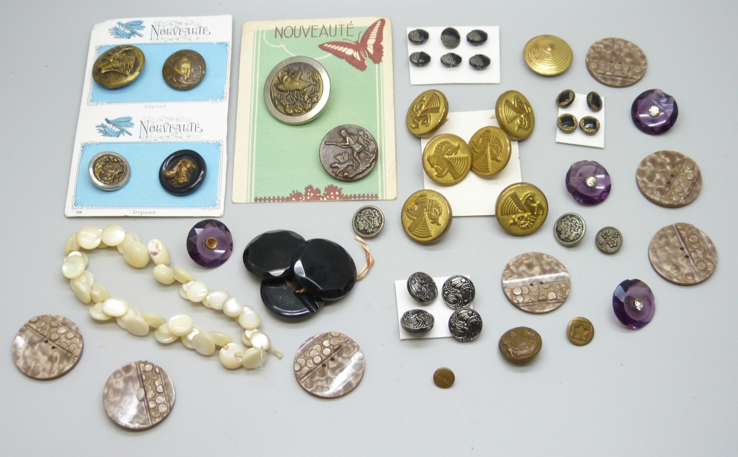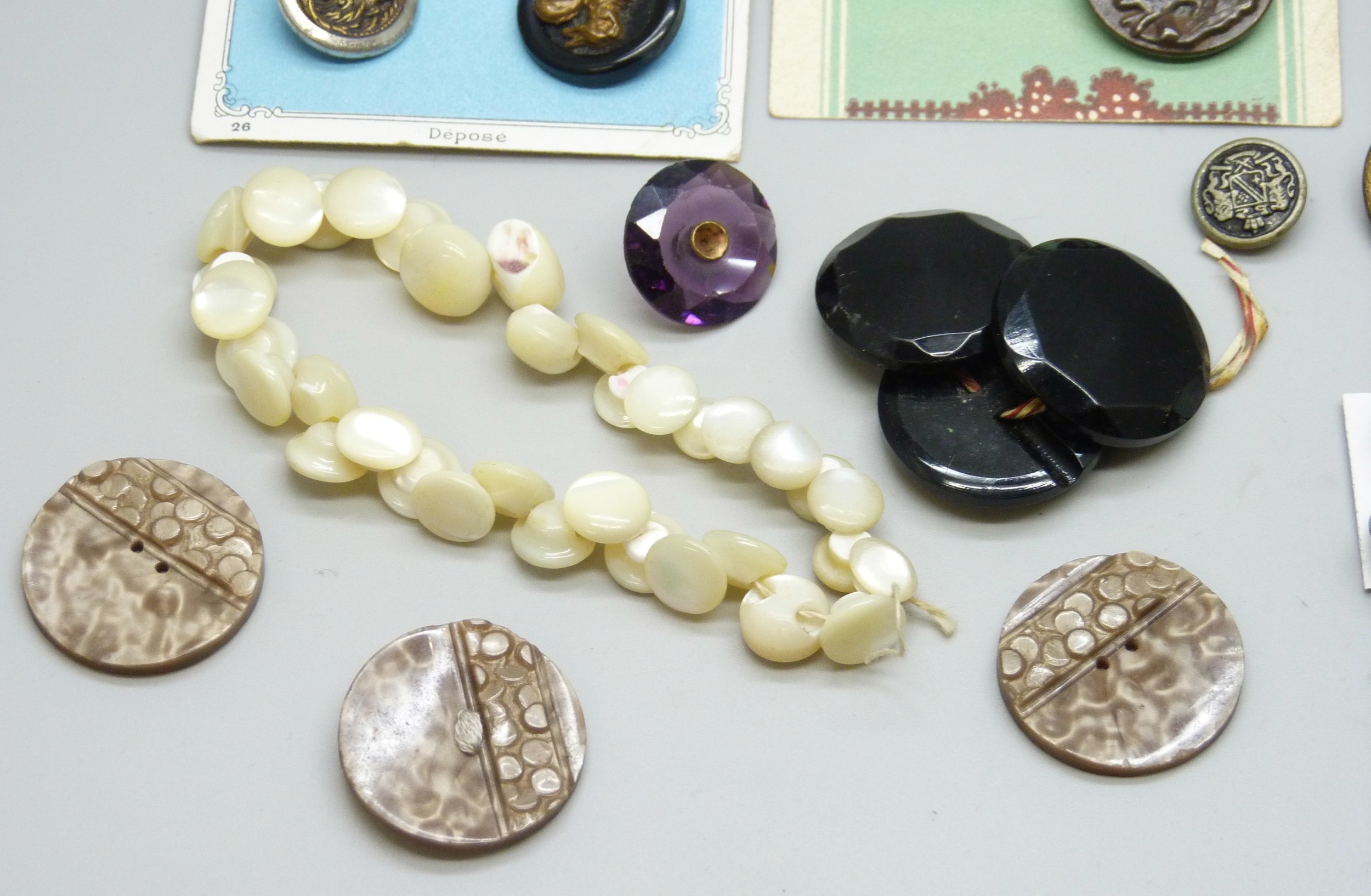 A collection of antique and later buttons, including G.T.F of Paris bird examples, micro-mosaic and enamel
