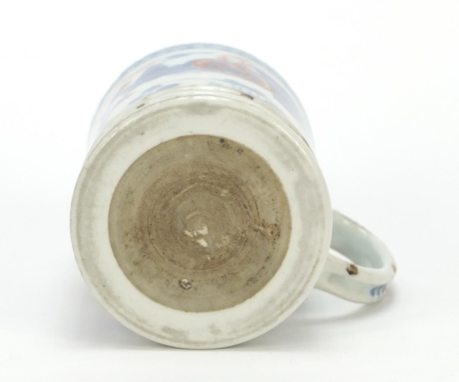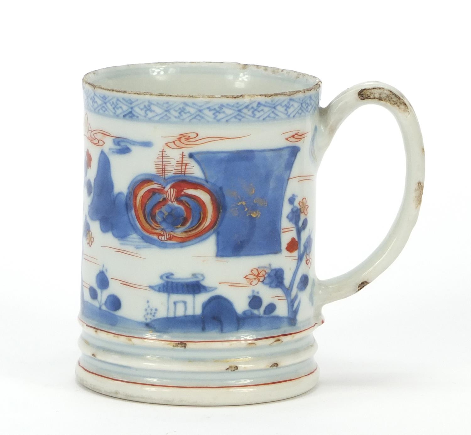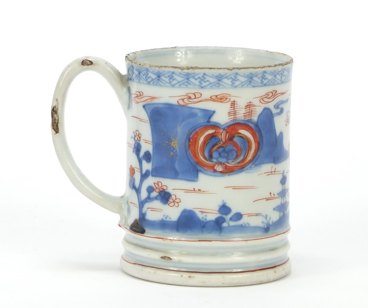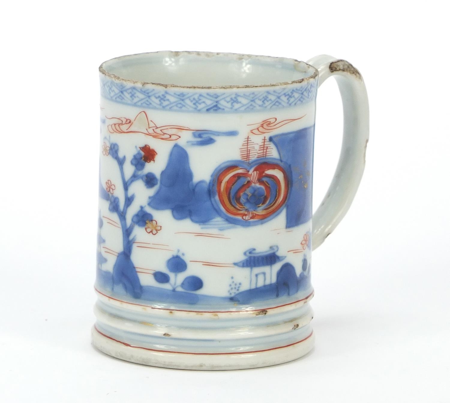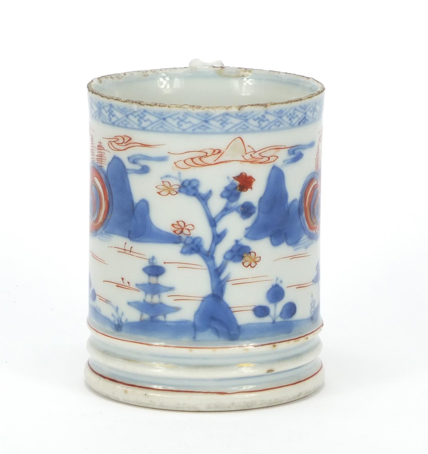 Chinese porcelain mug hand painted with a continuous landscape, 9cm high