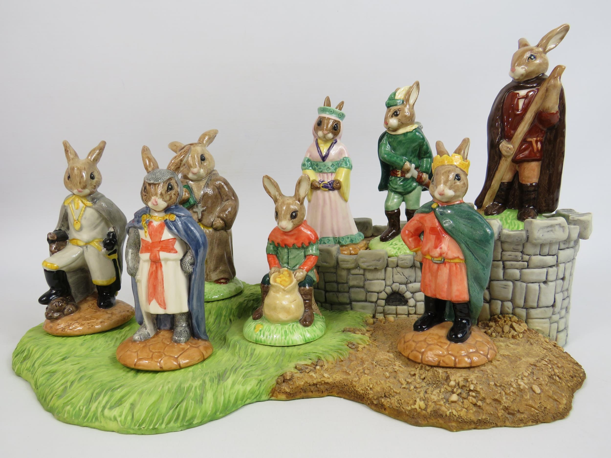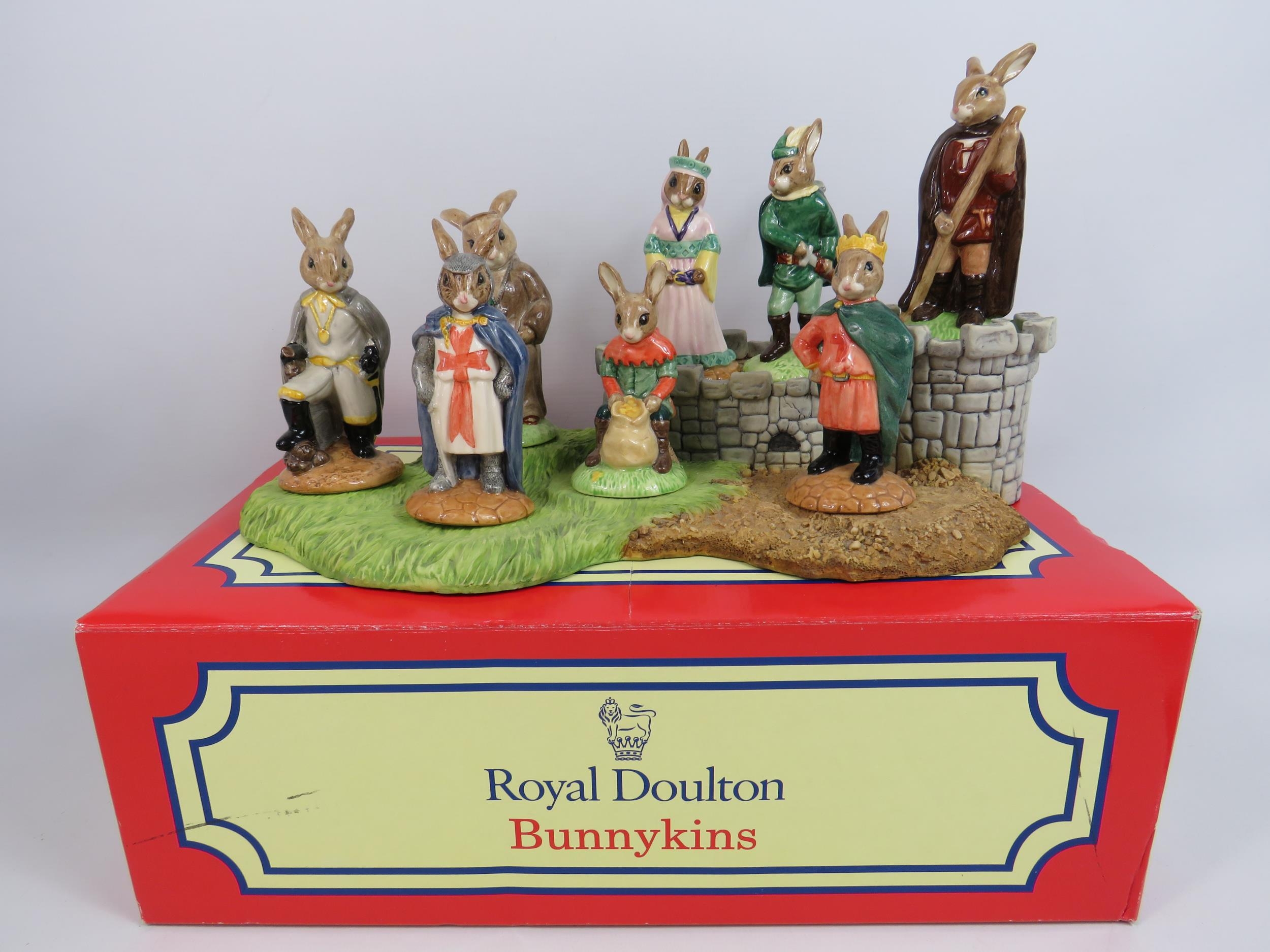 Royal Doulton Bunnykins The Robin Hood collection 8 figurines and base. No boxes for figurines but the base has its box.
