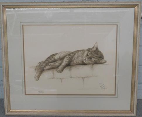 Sleeping cat, limited edition print artist Sue Willis 192/750 (frame approx 20x17" approx)