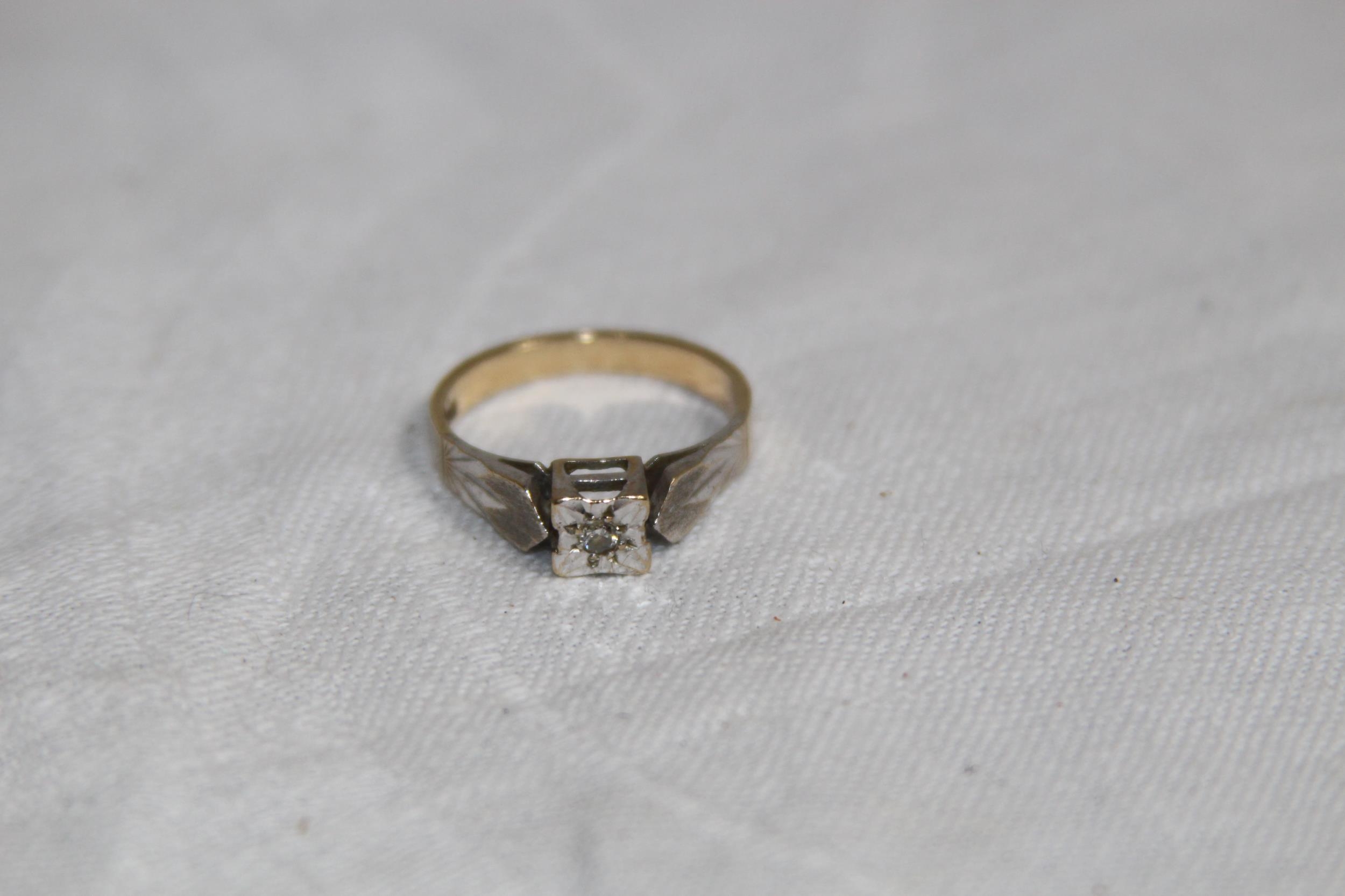 9CT GOLD AND DIAMOND RING - 2.65G - SIZE M 1/2