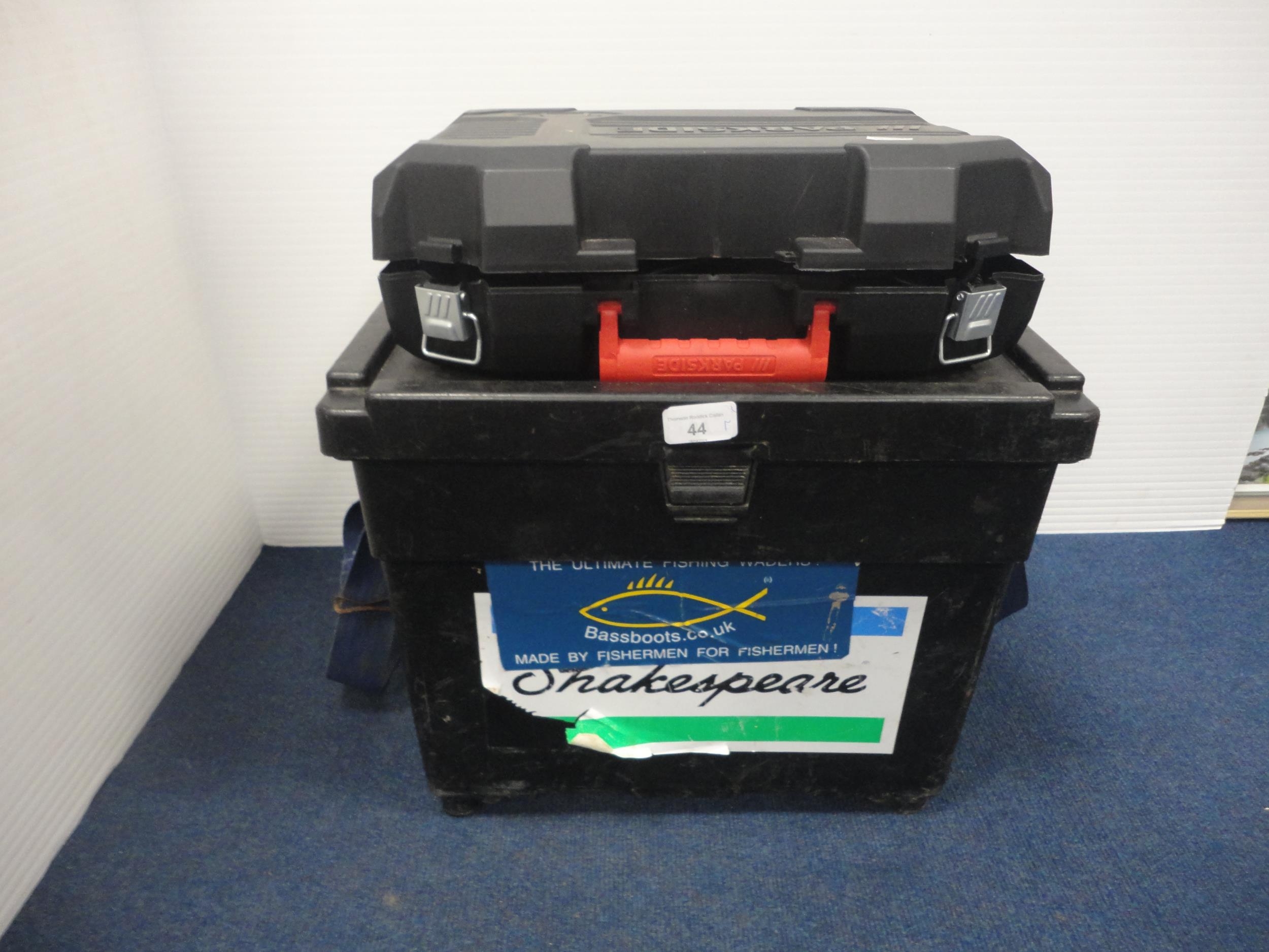 Parkside PSBM 1100 B1 impact drill and accessories, boxed, and a fishing accessories box.