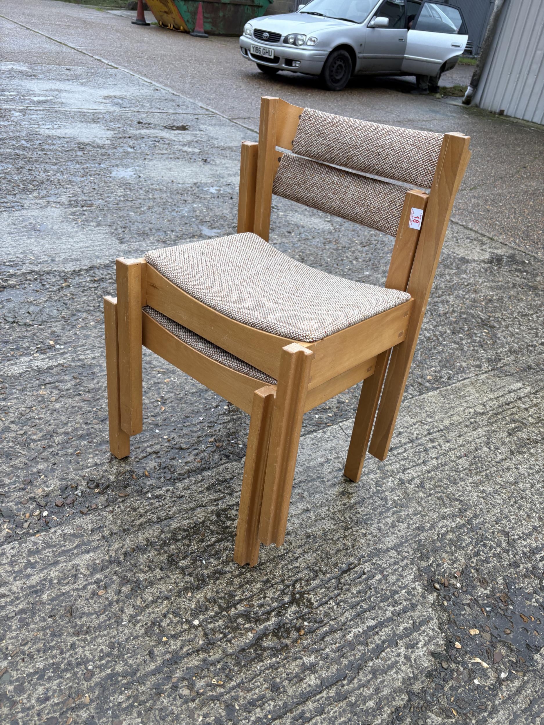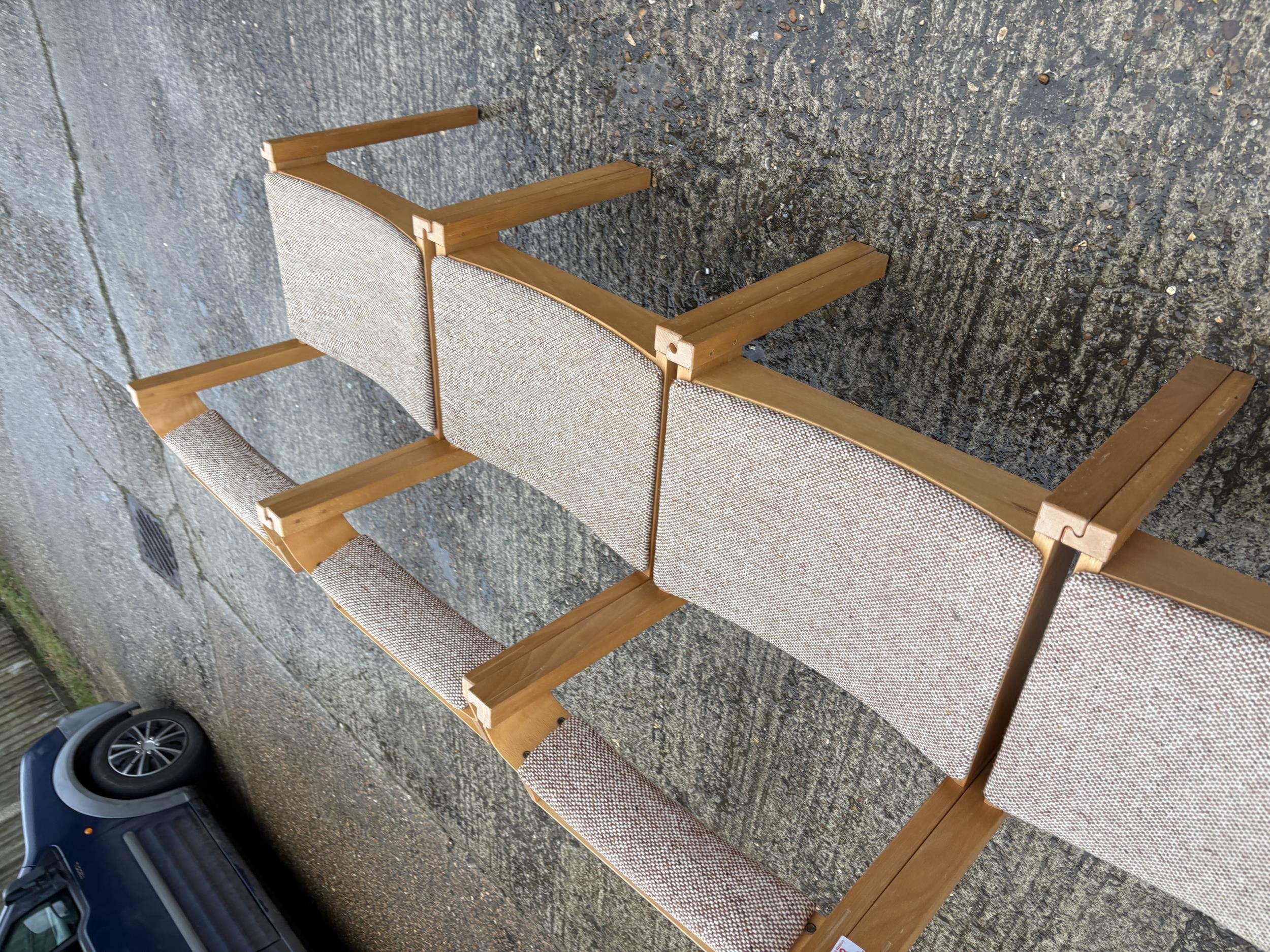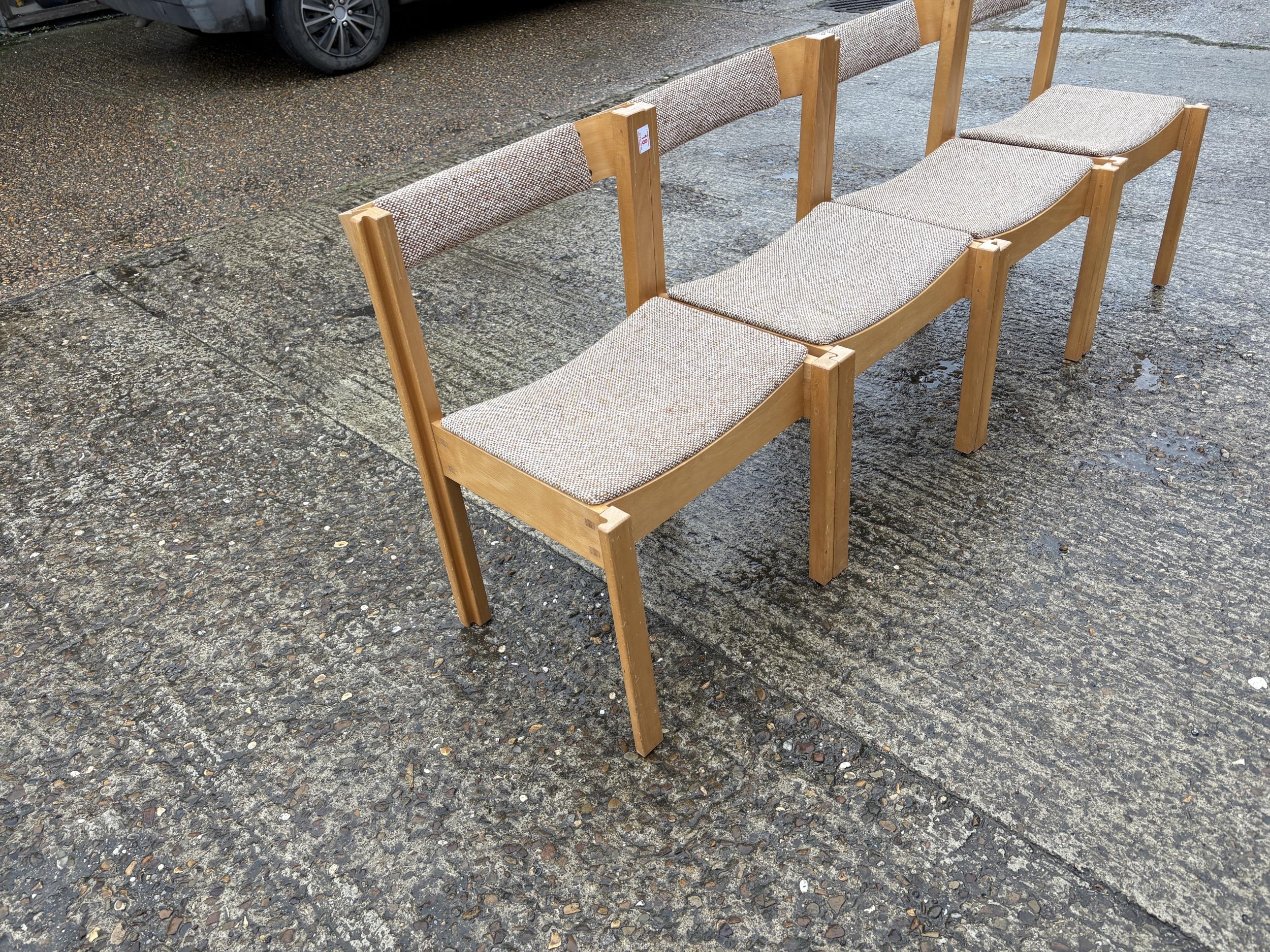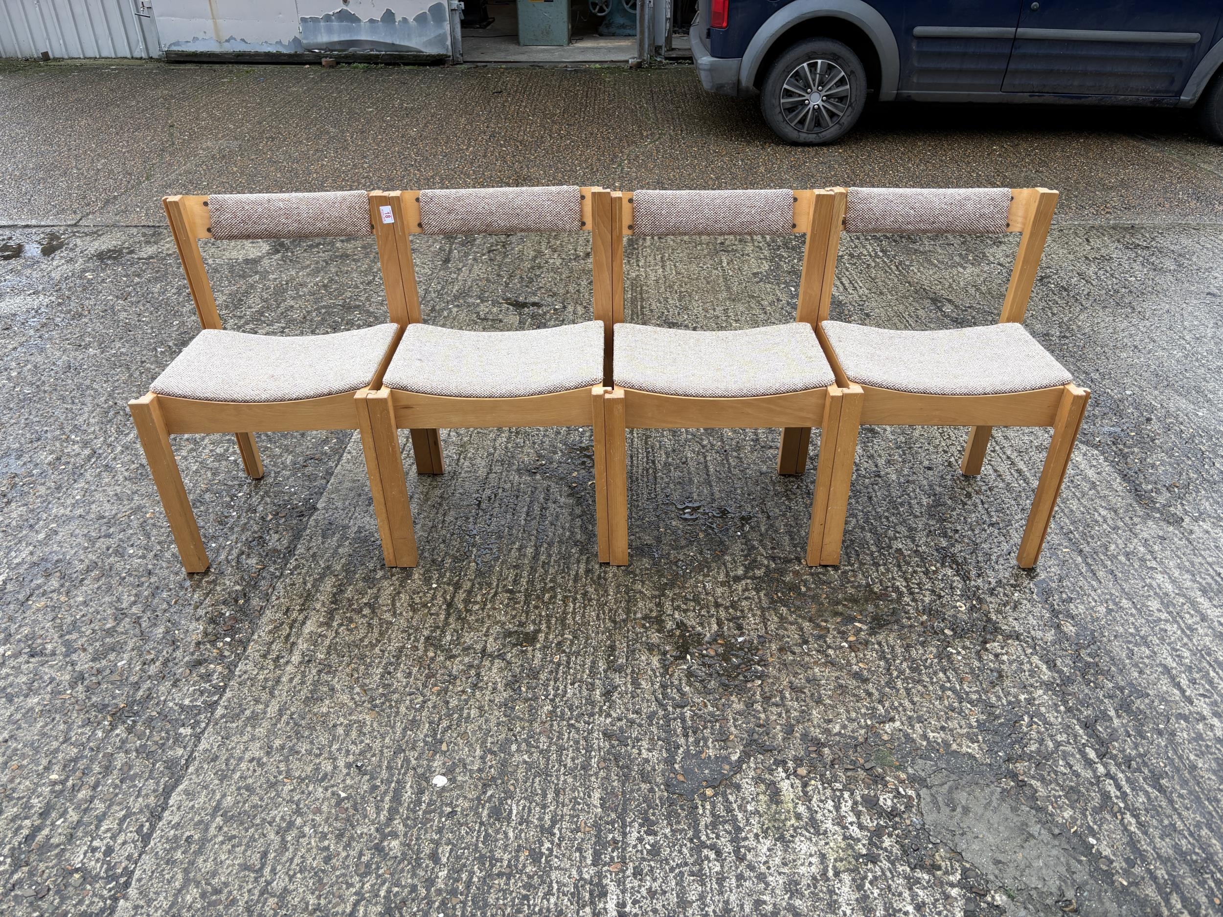A set of four interlocking / stacking chapel style chairs