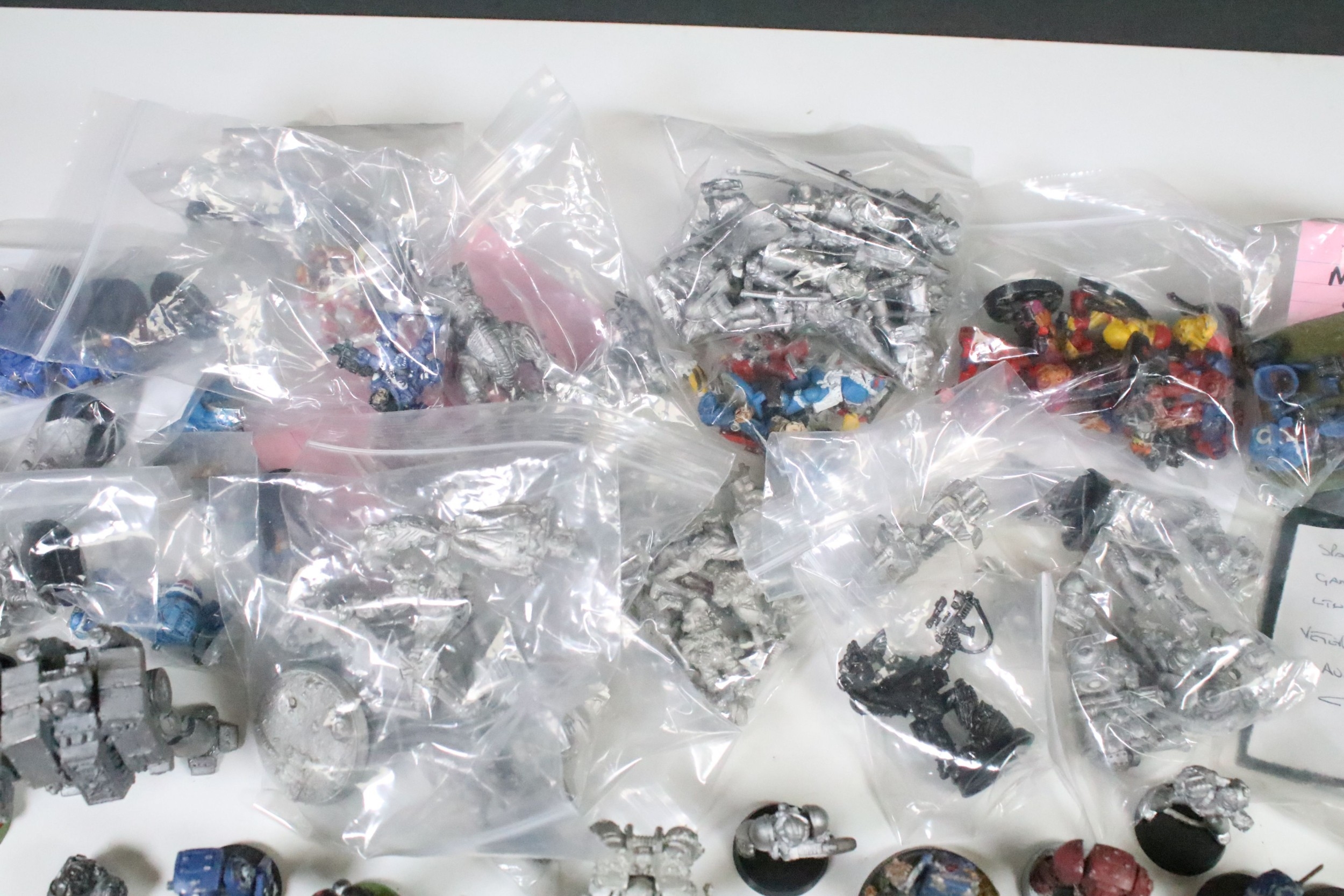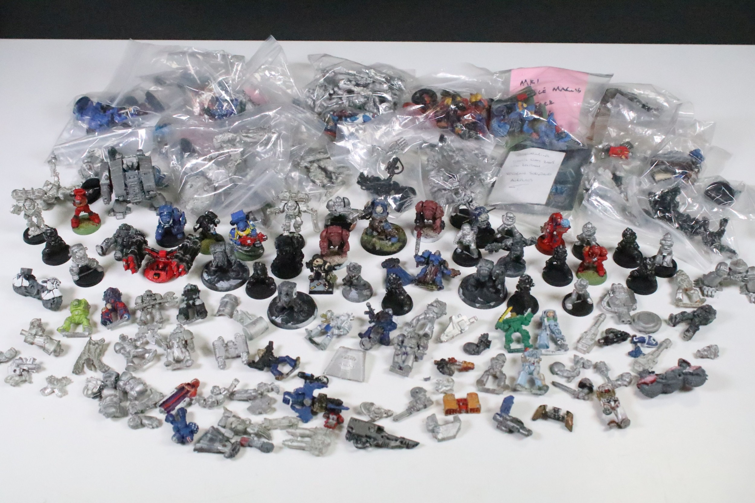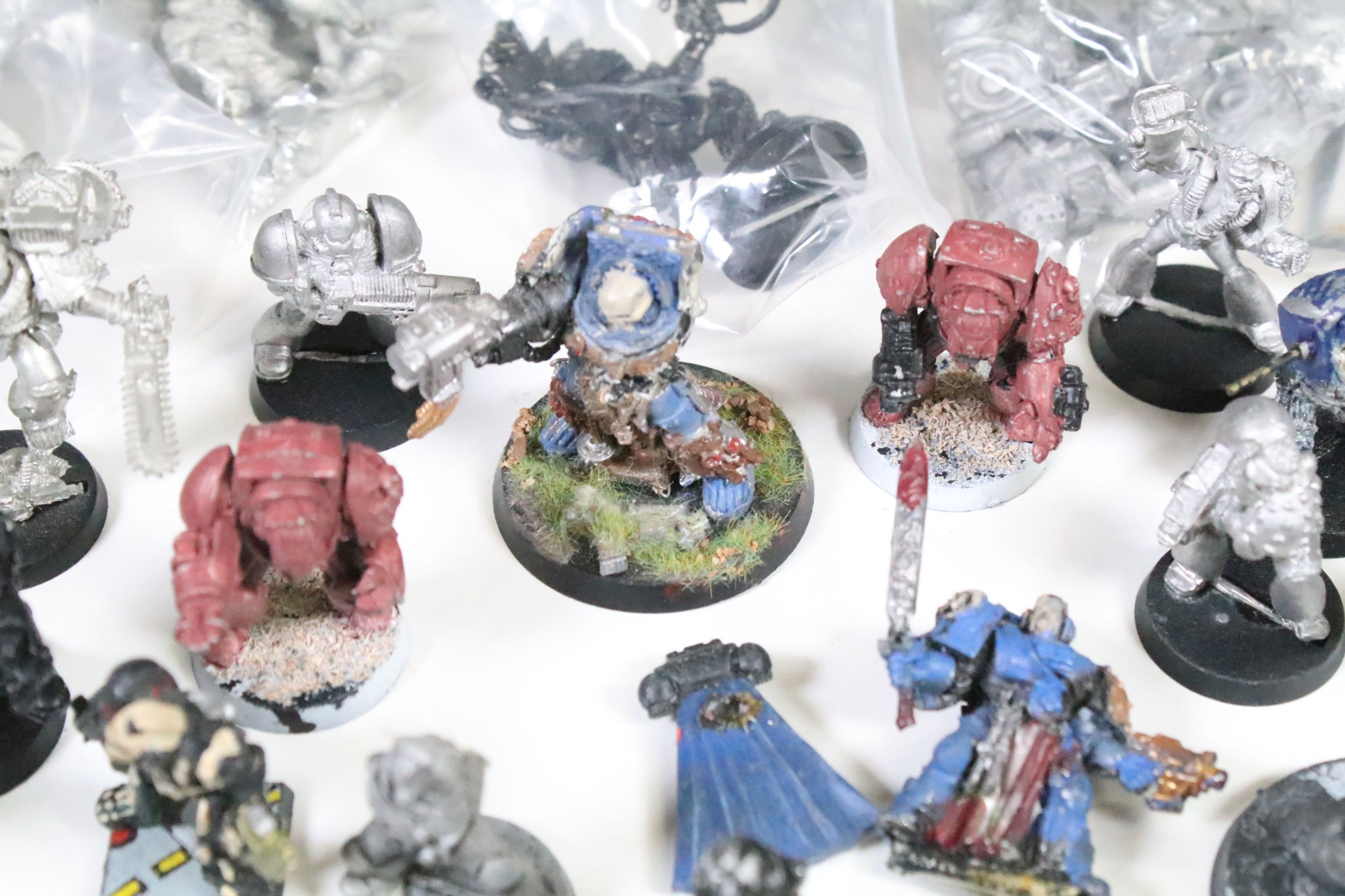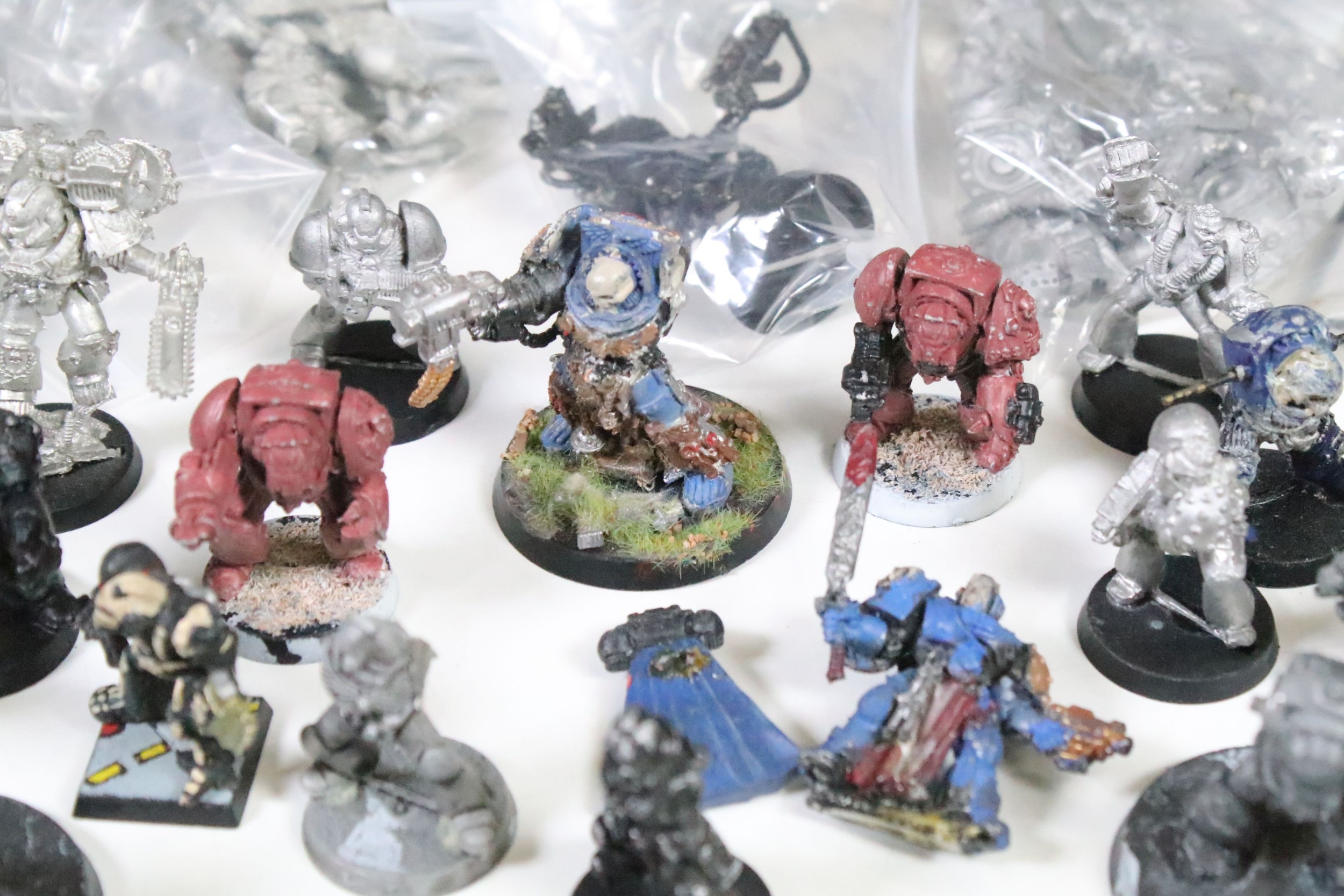 Games Workshop - Collection of painted and unpainted Warhammer figures, Featuring Space Wolves, Ultramarines, Chaos Space Marines, Dreadnought, Chaos Fabius Bile, Chaos Kharn the Betrayer ect
