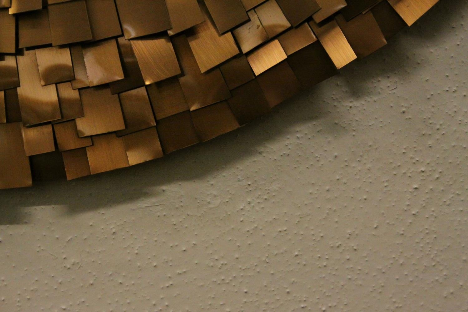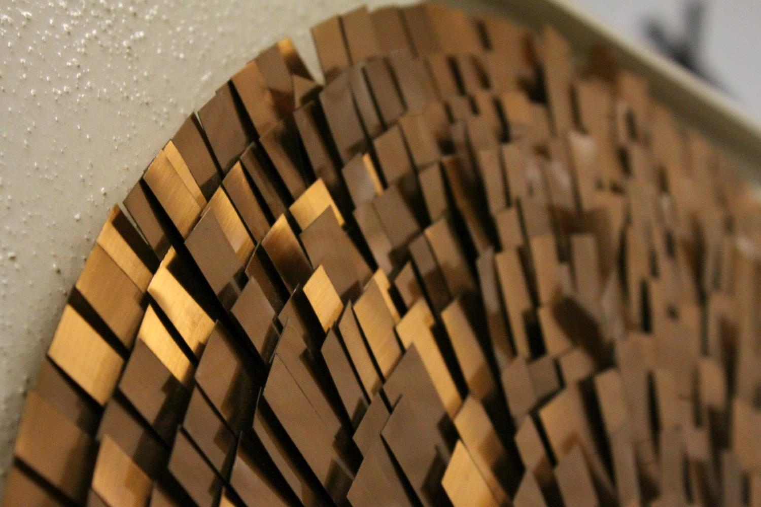 Rockall 1969 Copper Sphere on Framed White Ground, printed signature lower right ' Rockall 1969 ' 76cms x 56cms