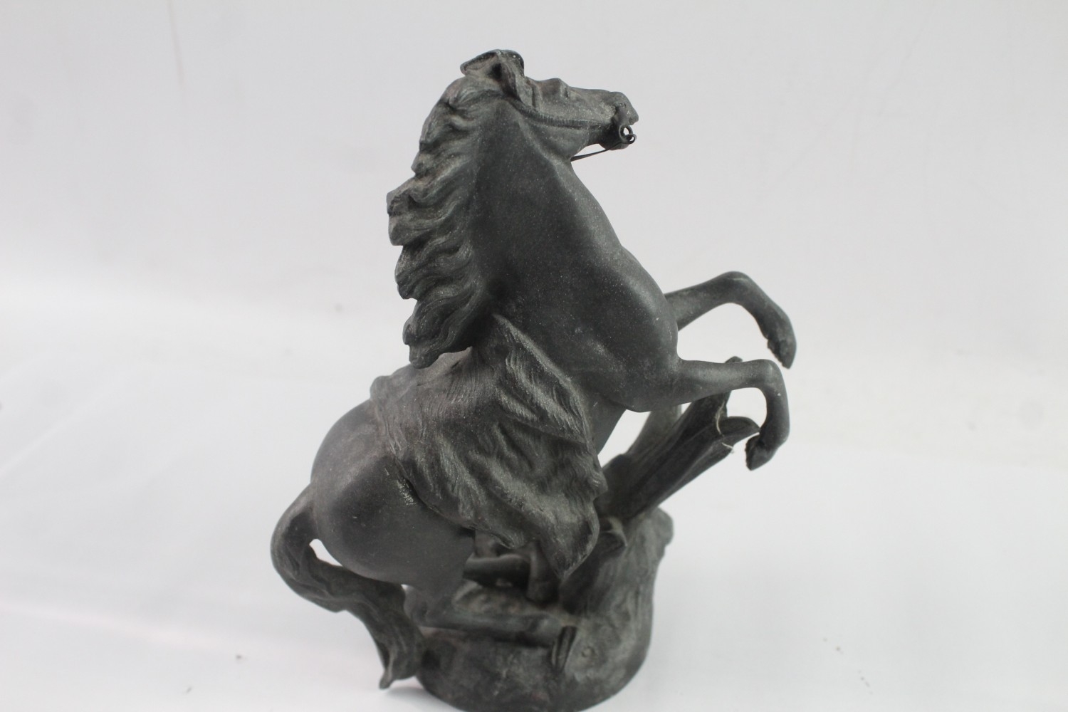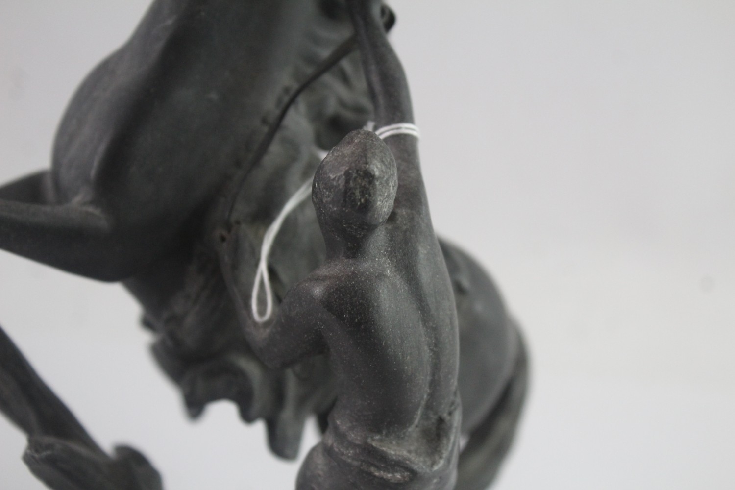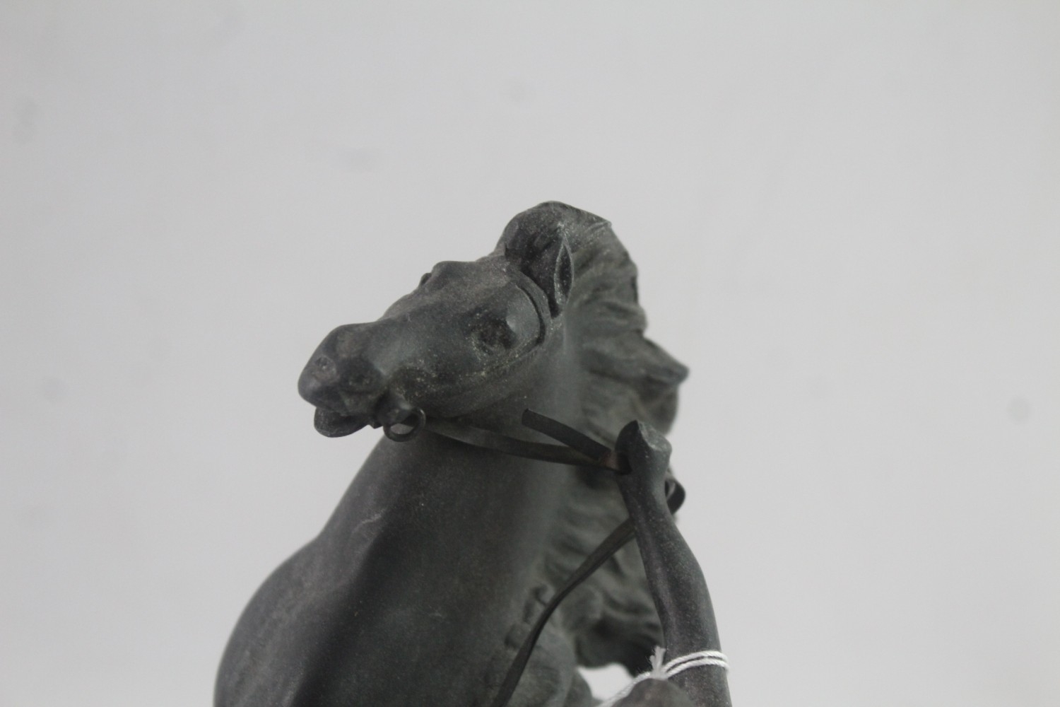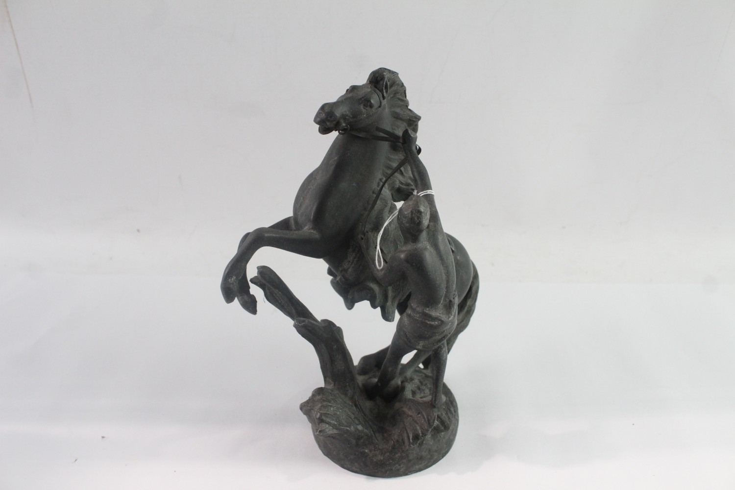 A cast metal horse and handler figurine - approx. 22cm high