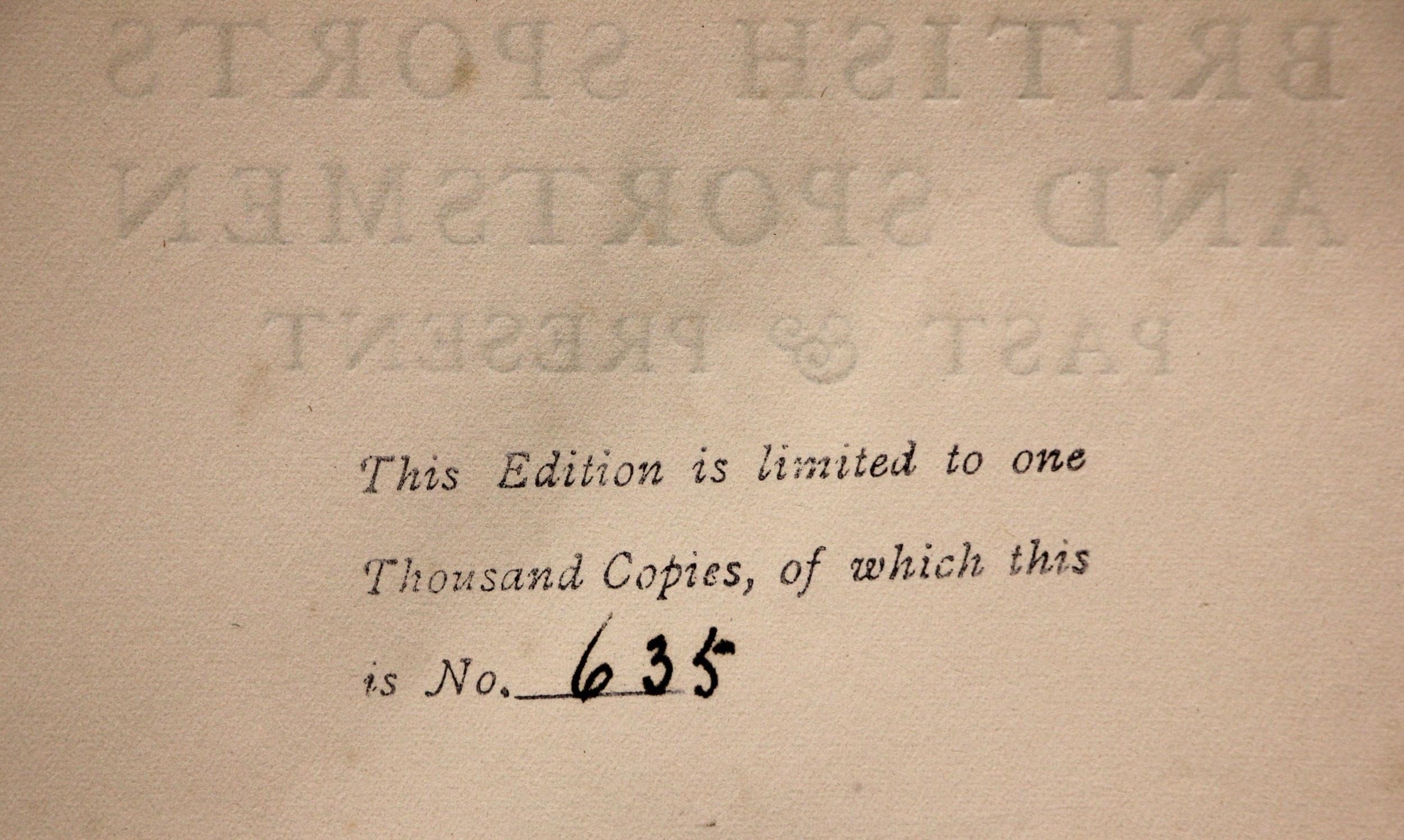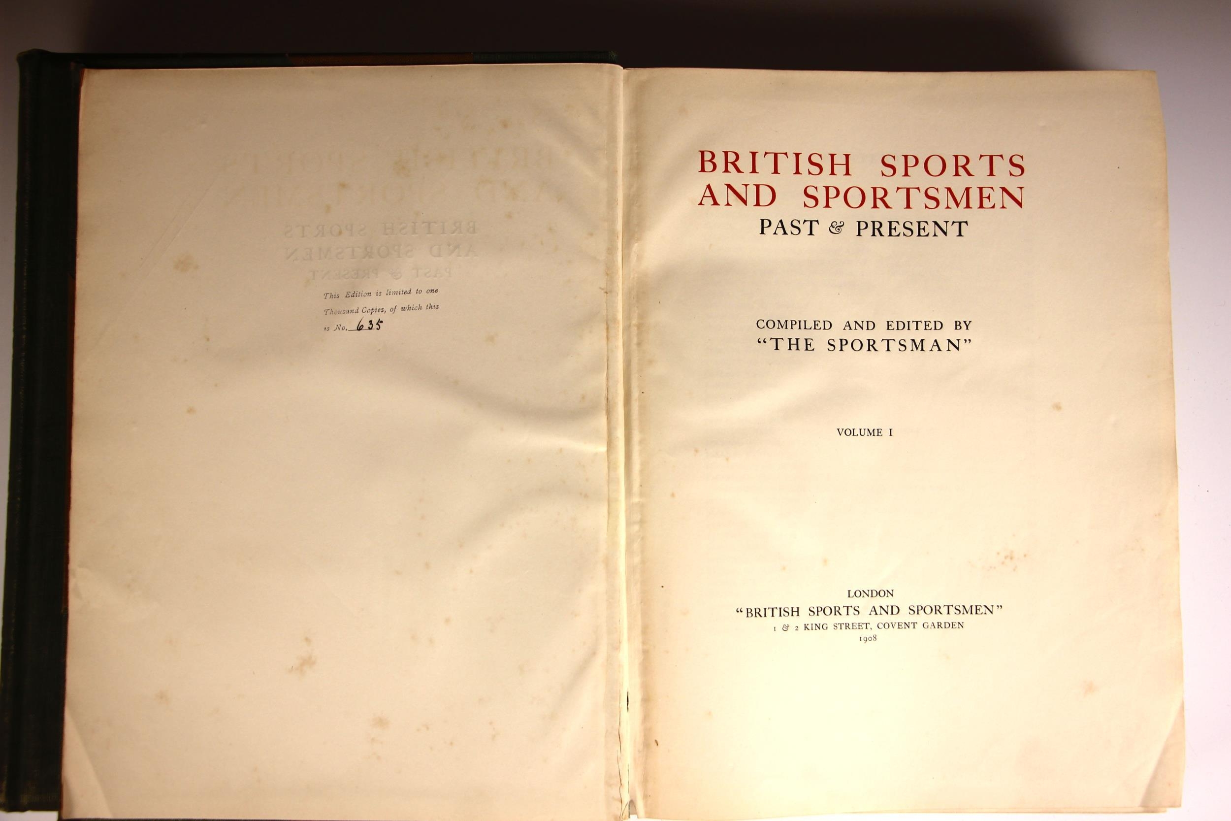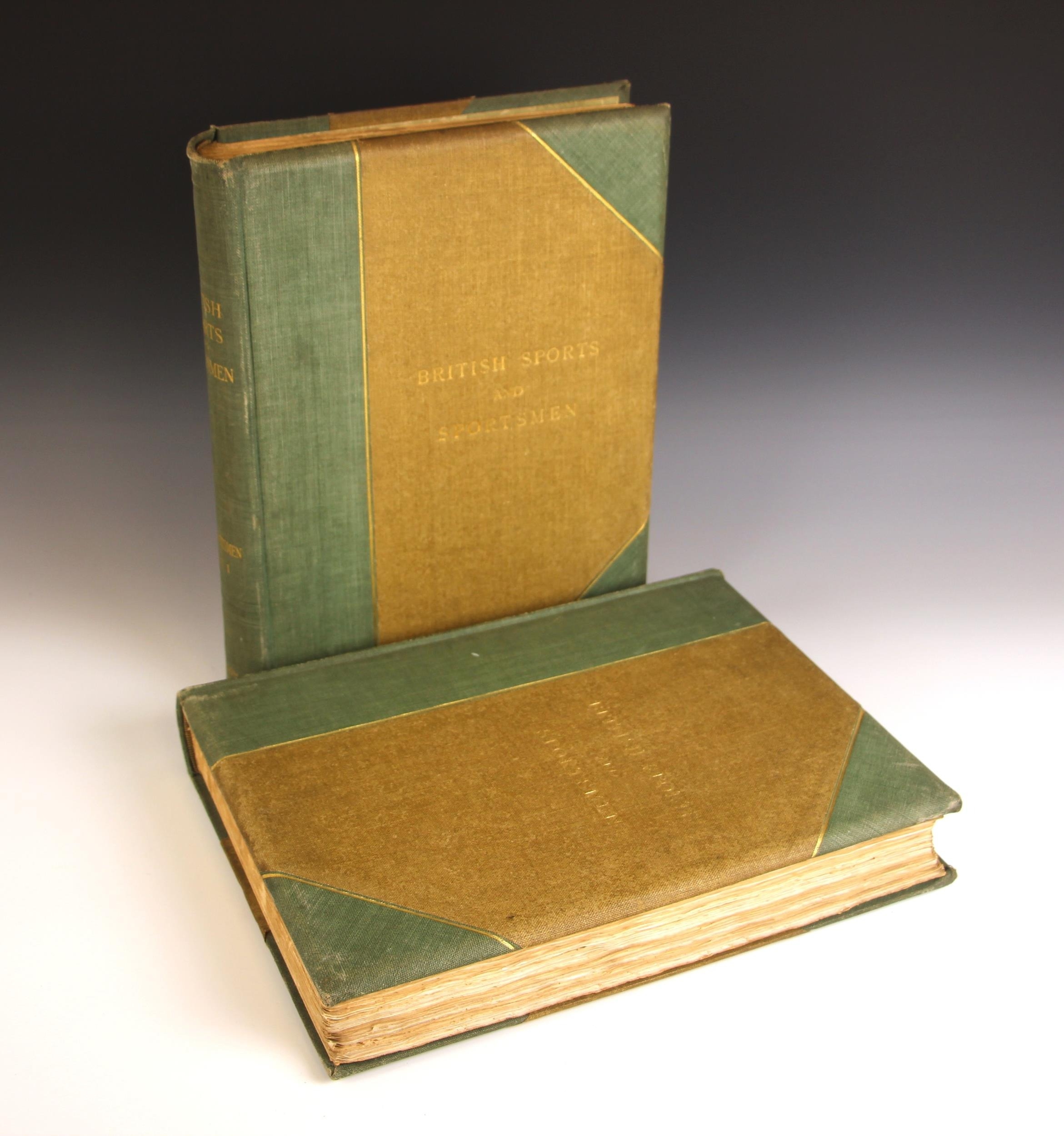 BRITISH SPORTS AND SPORTSMEN PAST & PRESENT, 2 vols, limited edition numbered 635 of one thousand, 3/4 cloth boards, gilt embossed titles, engraved portrait plates throughout, compiled and edited by 'The Sportsman' newspaper, London 1908 (2) (at fault)