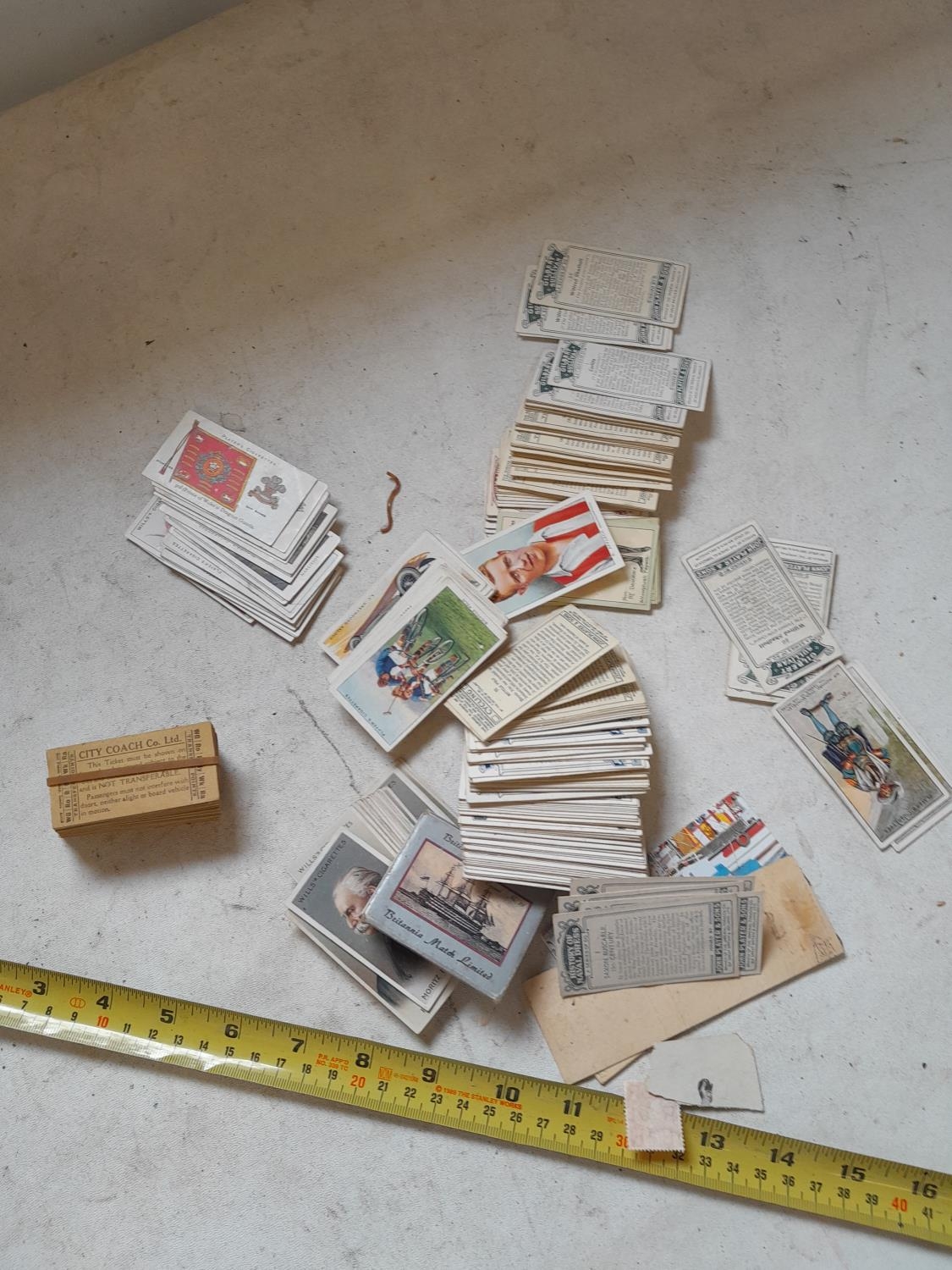 Unused bus tickets and loose cigarette cards