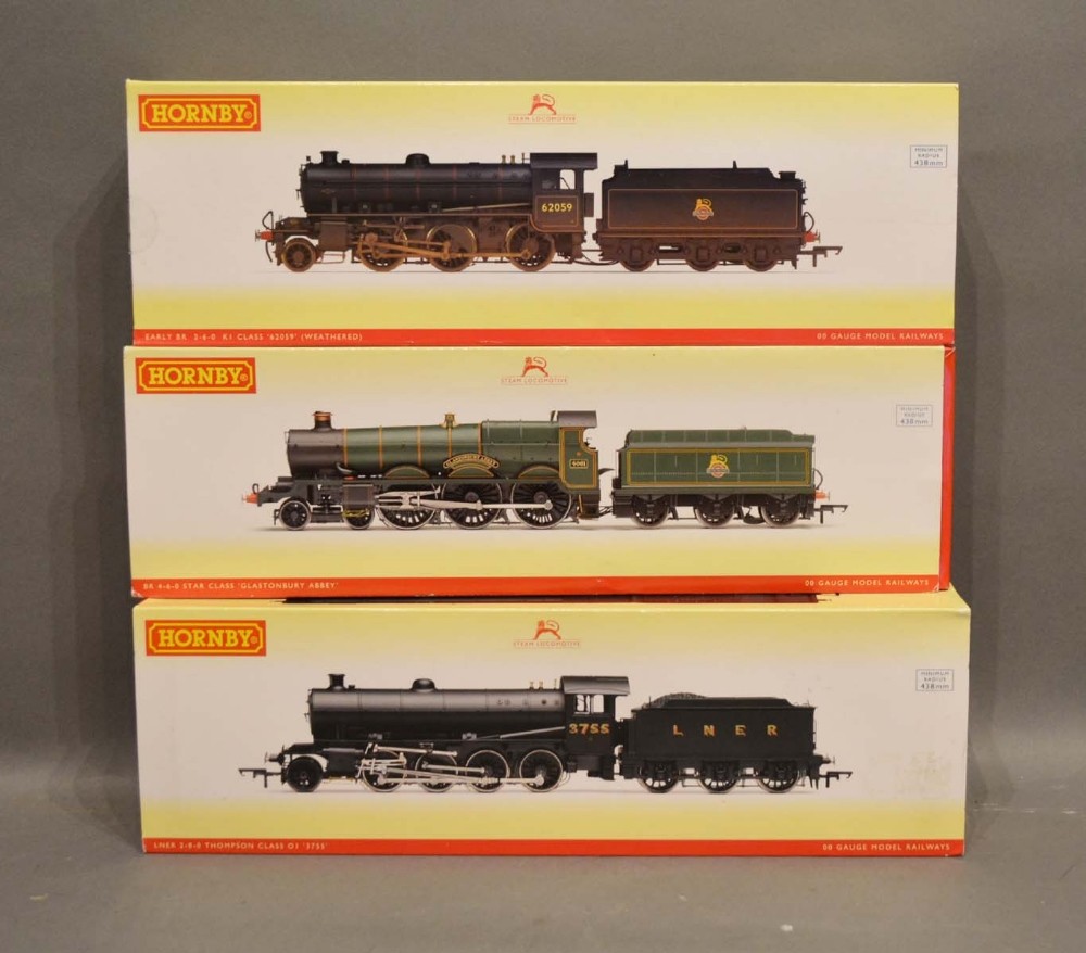 A Hornby OO Gauge BR 4-6-0 Star Class Glastonbury Abbey within original box, together with two other Hornby OO gauge locomotives R3305 and R3088 within original boxes
