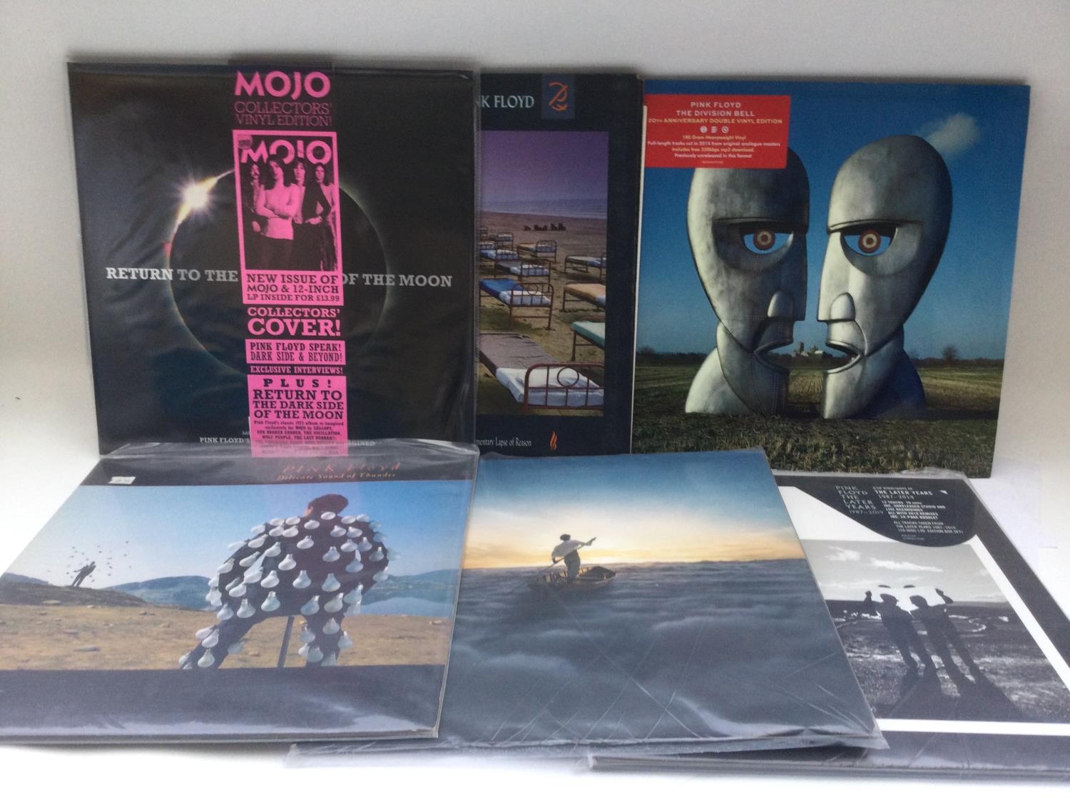 Six Pink Floyd LPs comprising a 20th anniversary 180g 2LP 'Division Bell', 'The Endless River', 'Delicate Sound Of Thunder' and others.