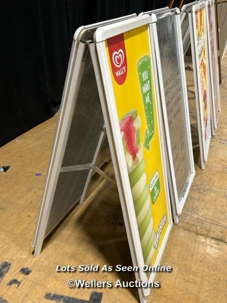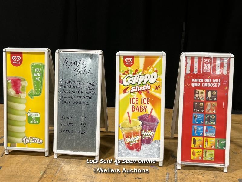 Four shop signs, 100cm (h) / Buyer will be responsible for removal, located in the large hall / Lot Location: The Tropicana, Marine Parade, Weston-Super-Mare, North Somerset, BS23 1BE