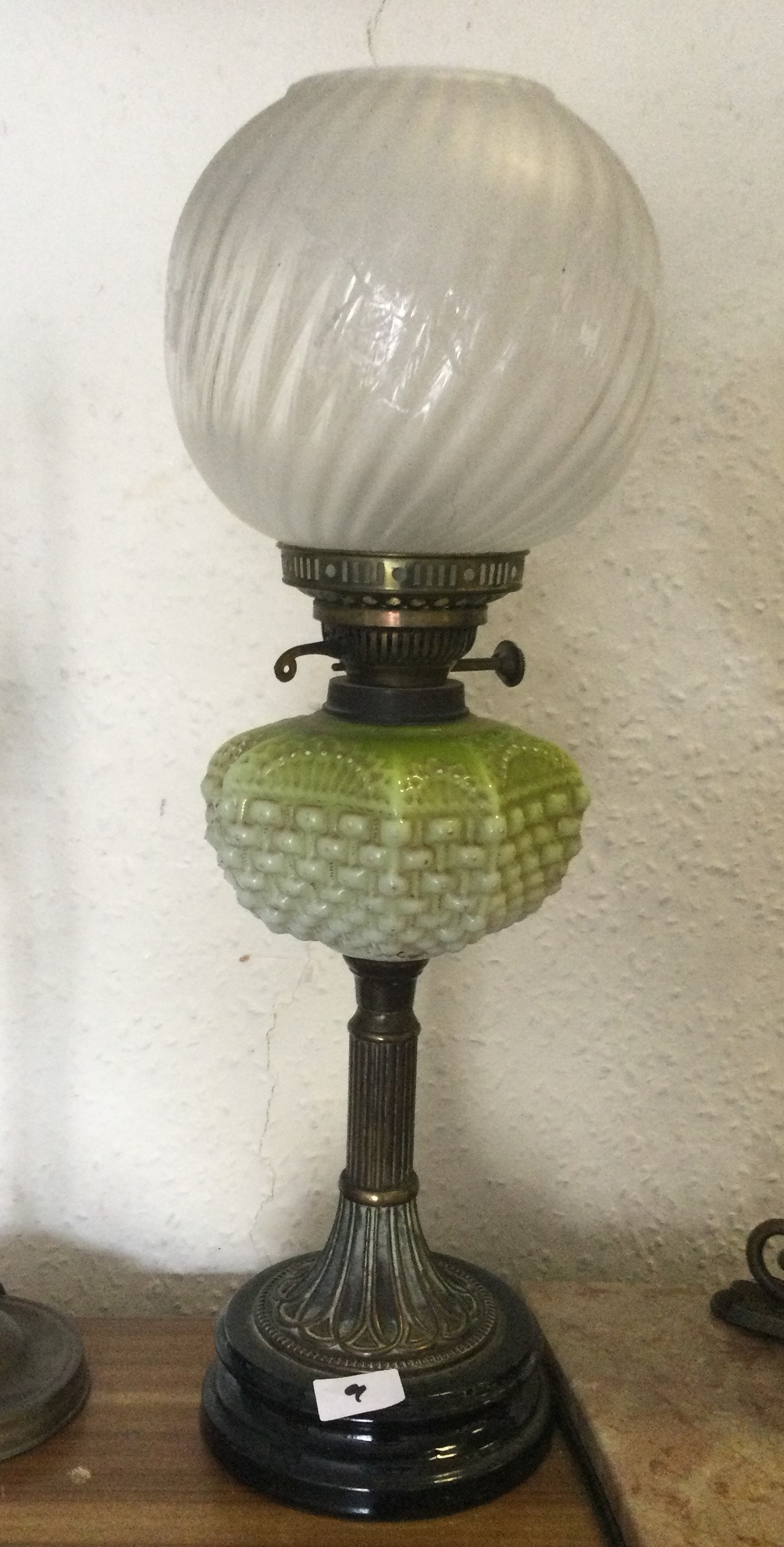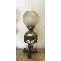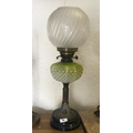 An etched glass oil lamp.