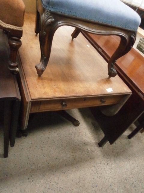 A large antique drop leaf pedestal dining table with 2 x end drawers