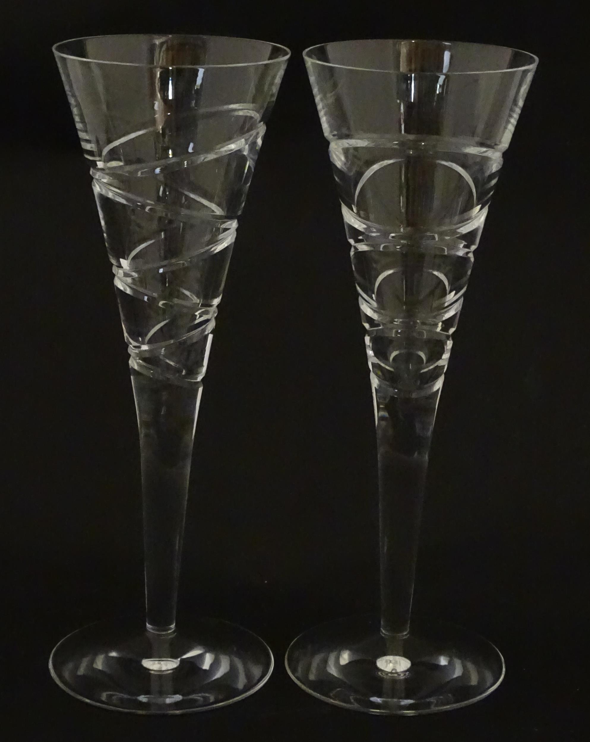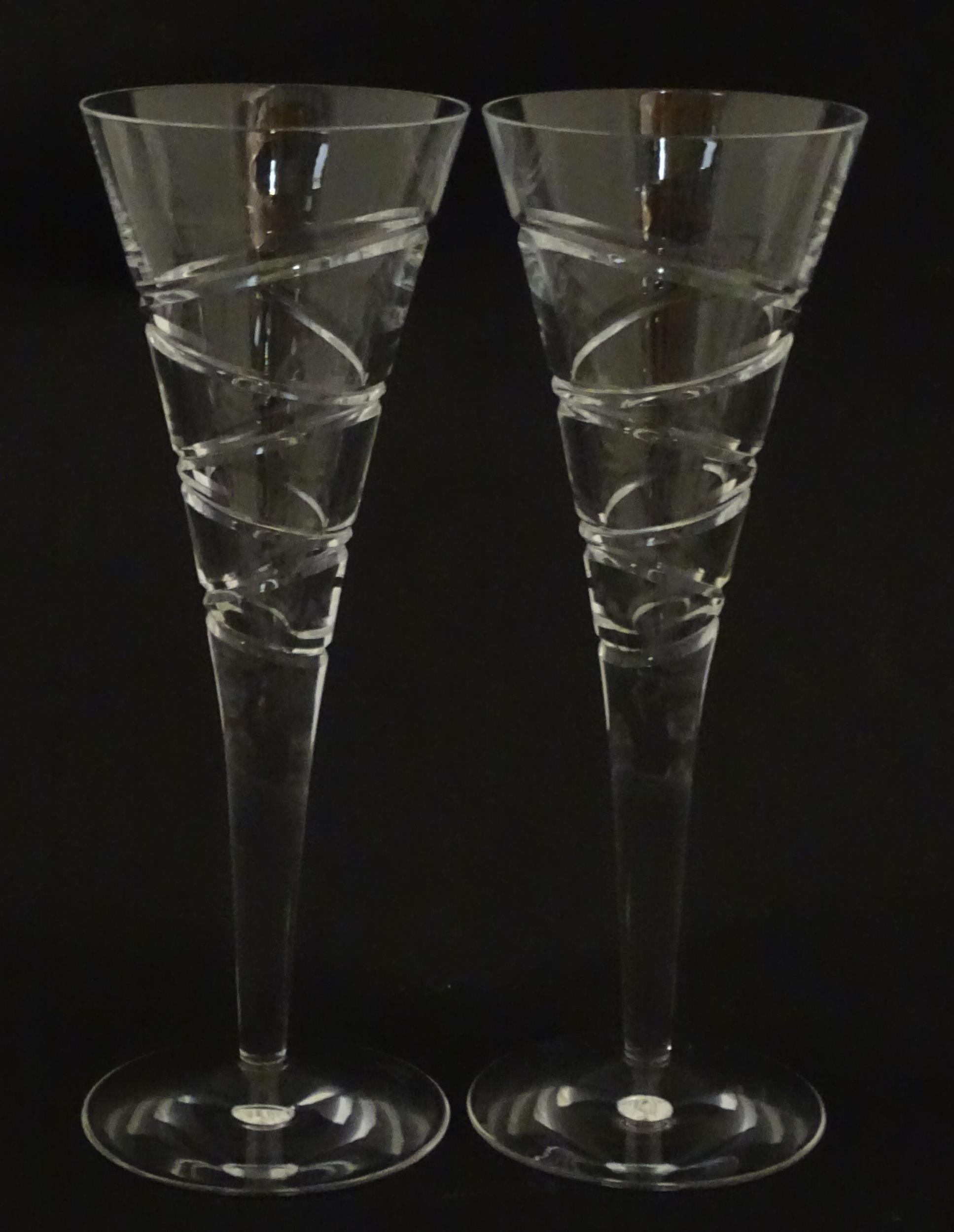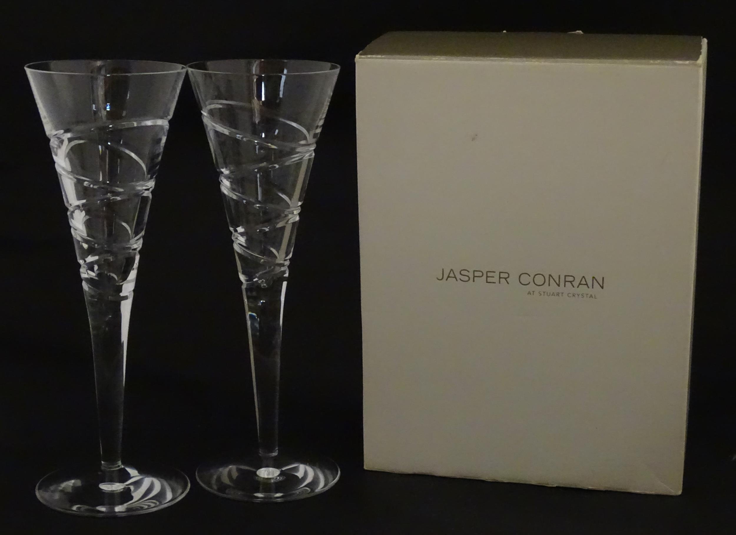 A boxed pair of Jasper Conran for Stuart Crystal champagne glasses / flutes. Each approx. 10 1/4" high