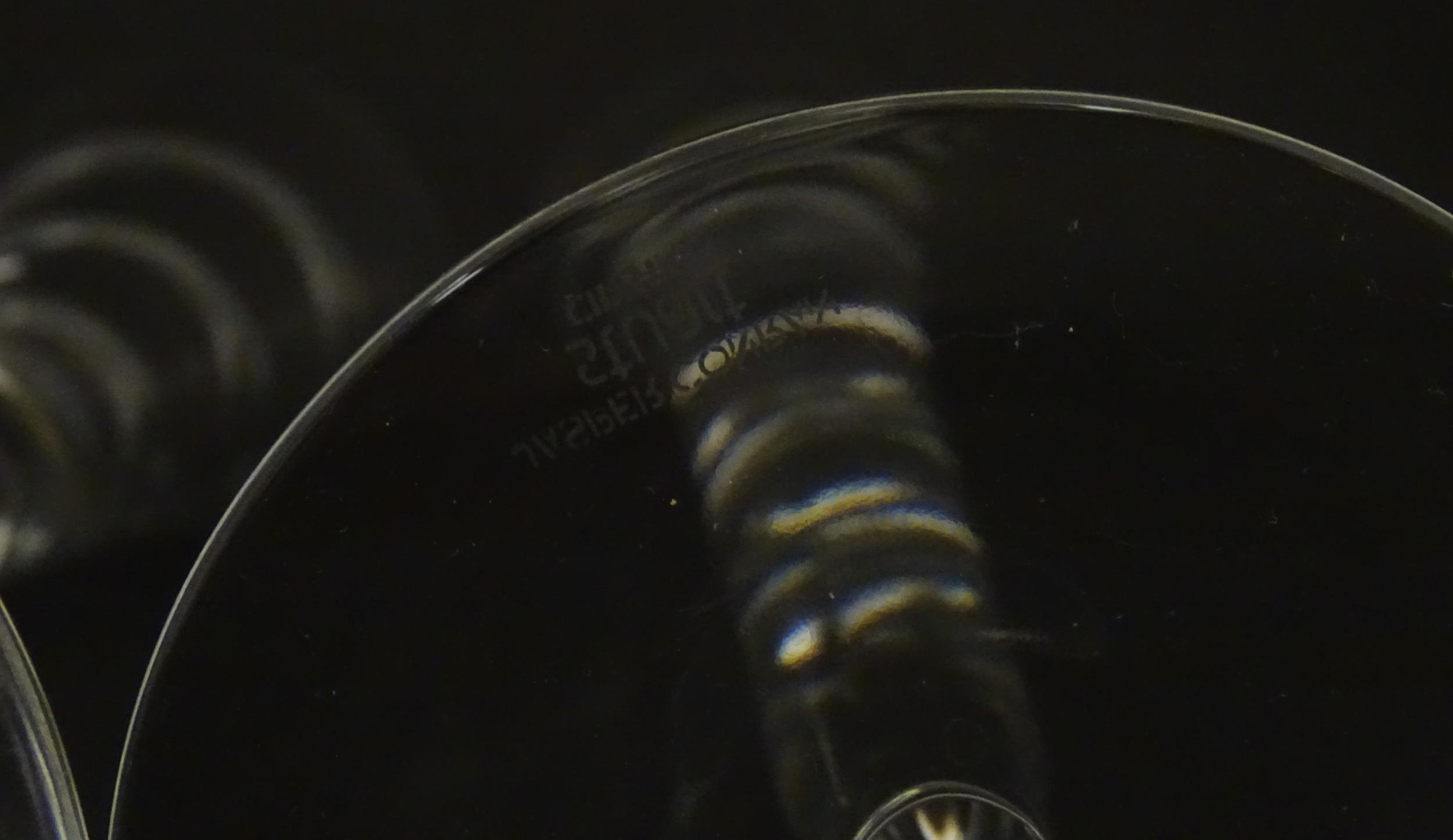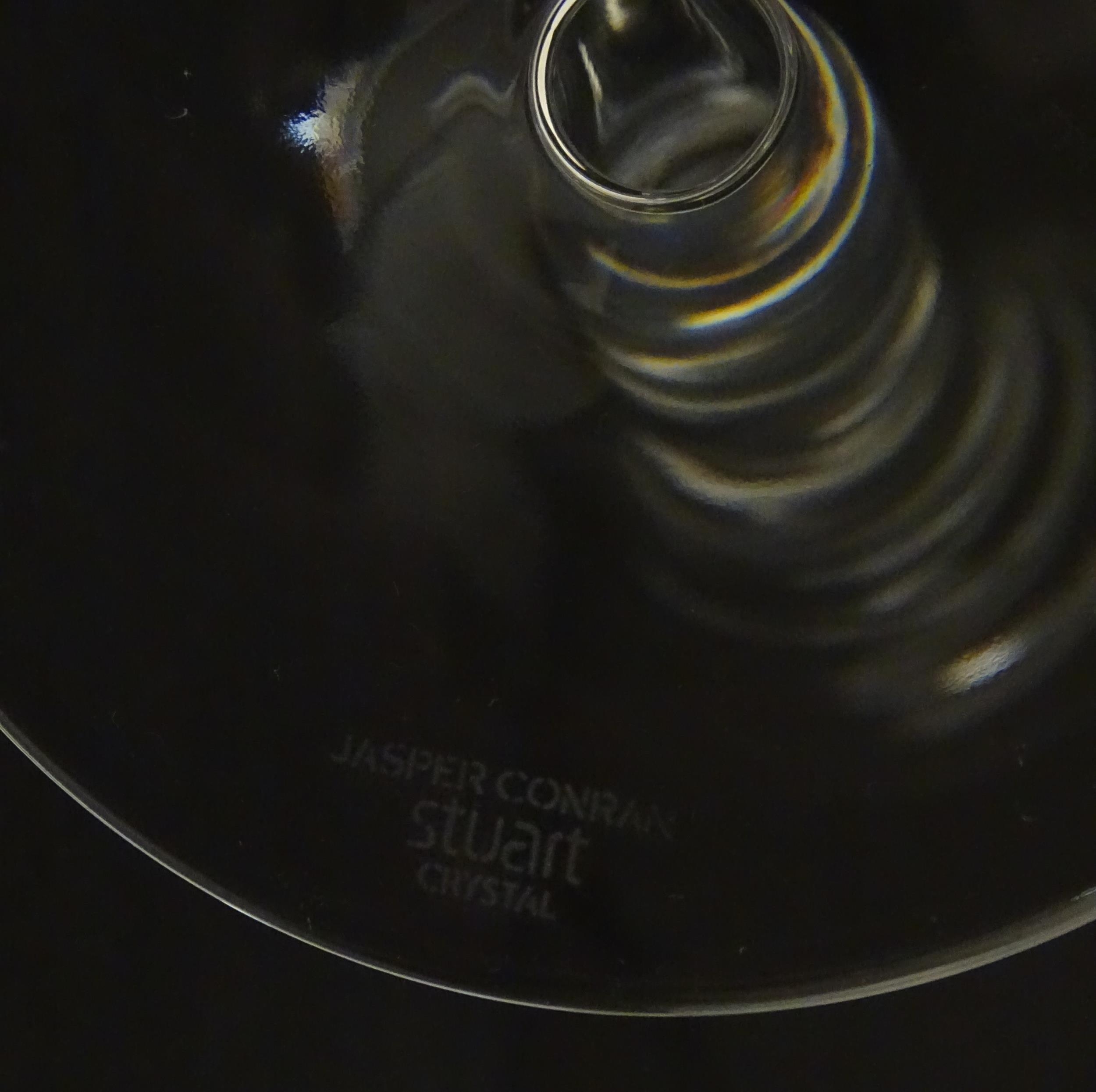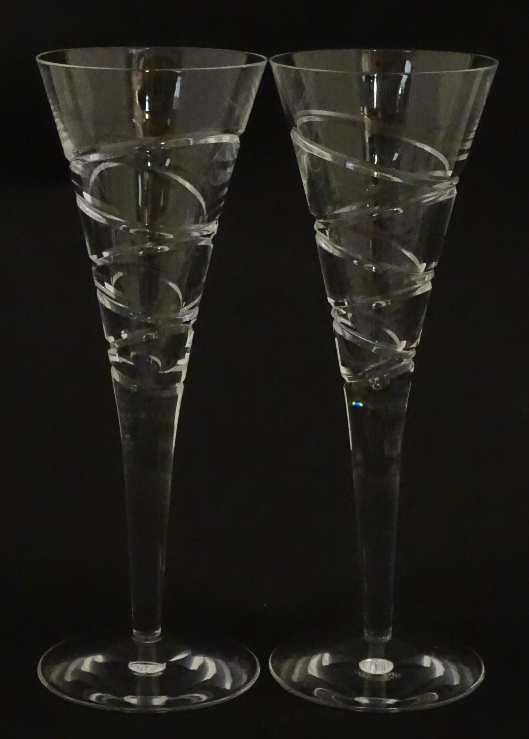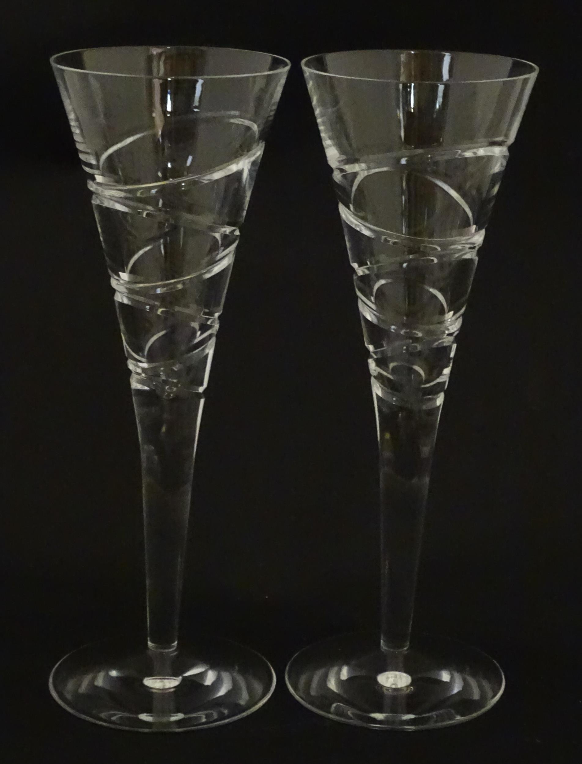 A boxed pair of Jasper Conran for Stuart Crystal champagne glasses / flutes. Each approx. 10 1/4" high