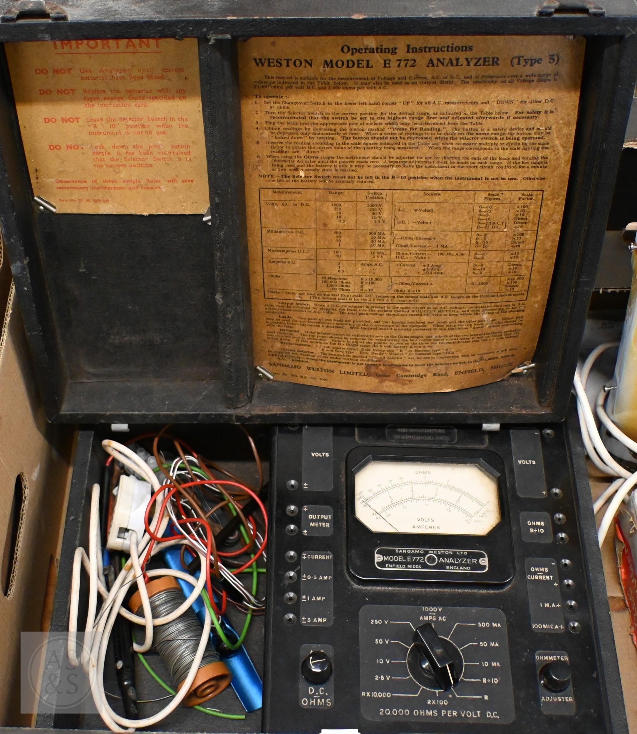 A Sangamo Weston Ltd model E772 Analyzer, to/w an Evershed & Vignoles Megger with Bakelite case and leather cover, a vintage dial telephone, yachtsman's bearing compass, postage scales and a Hoegaarden illuminated lager advertising sign (box)