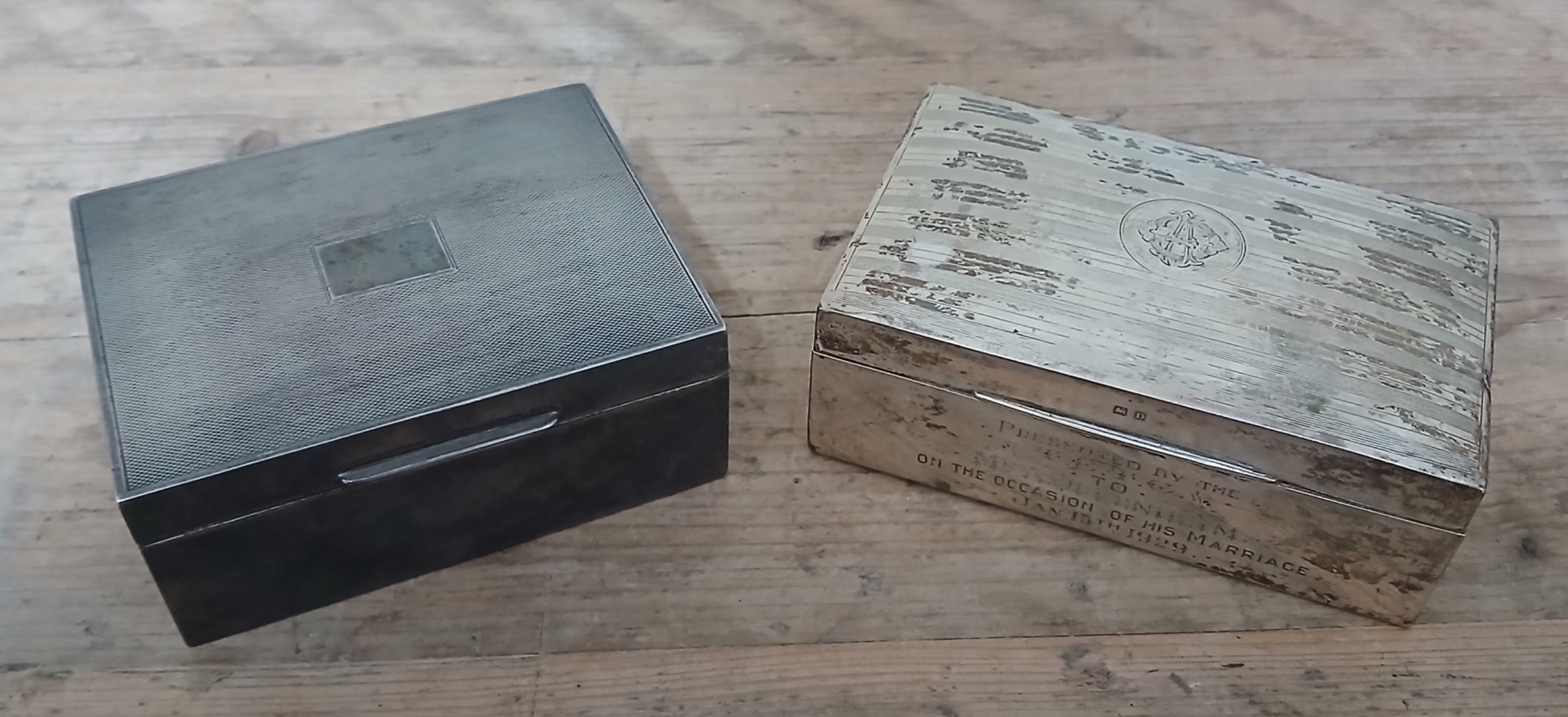 Two hallmarked silver boxes, lengths 12cm & 13cm.