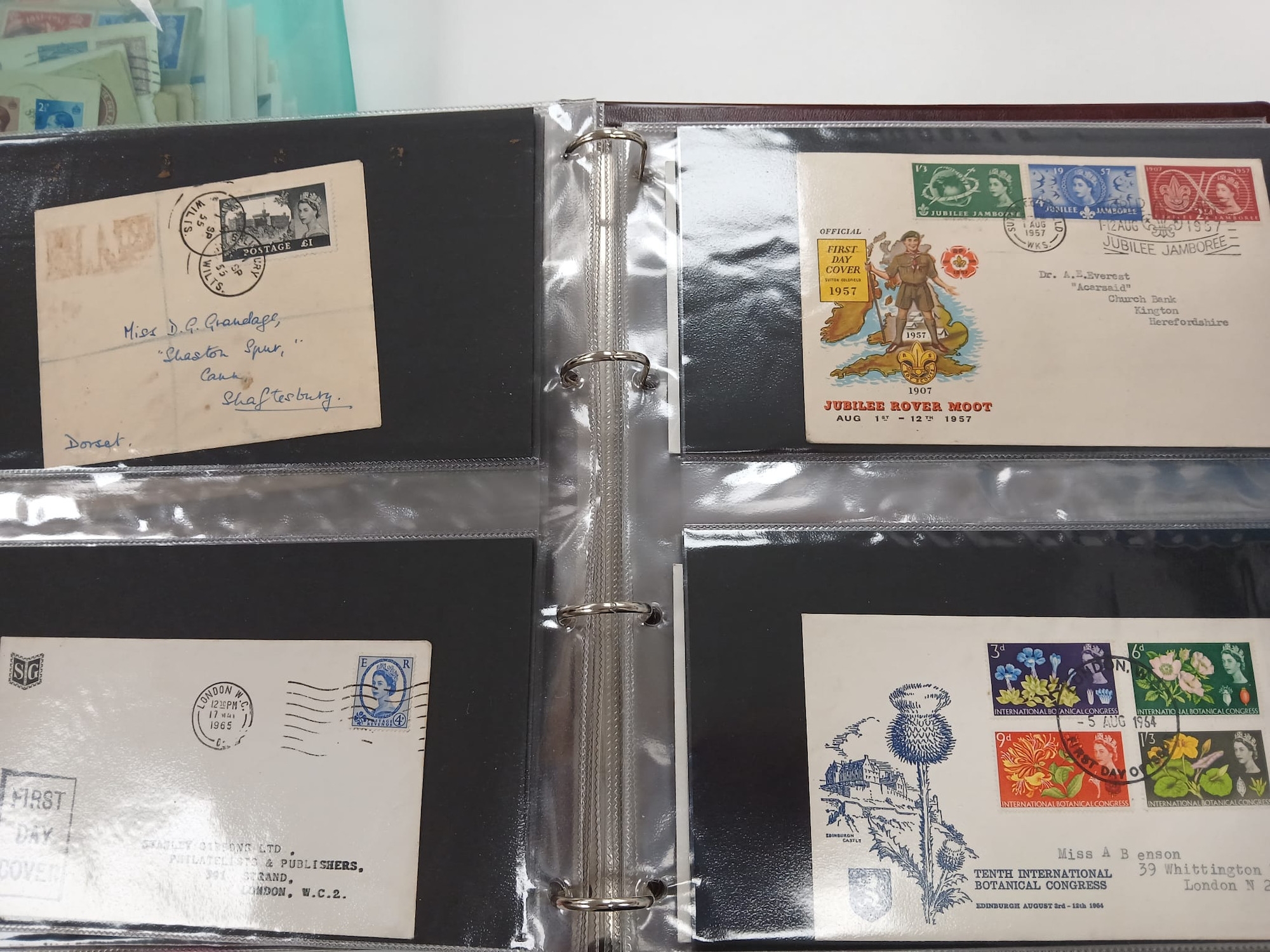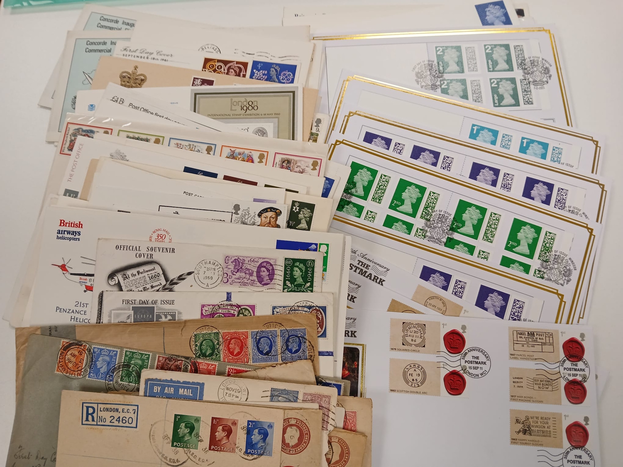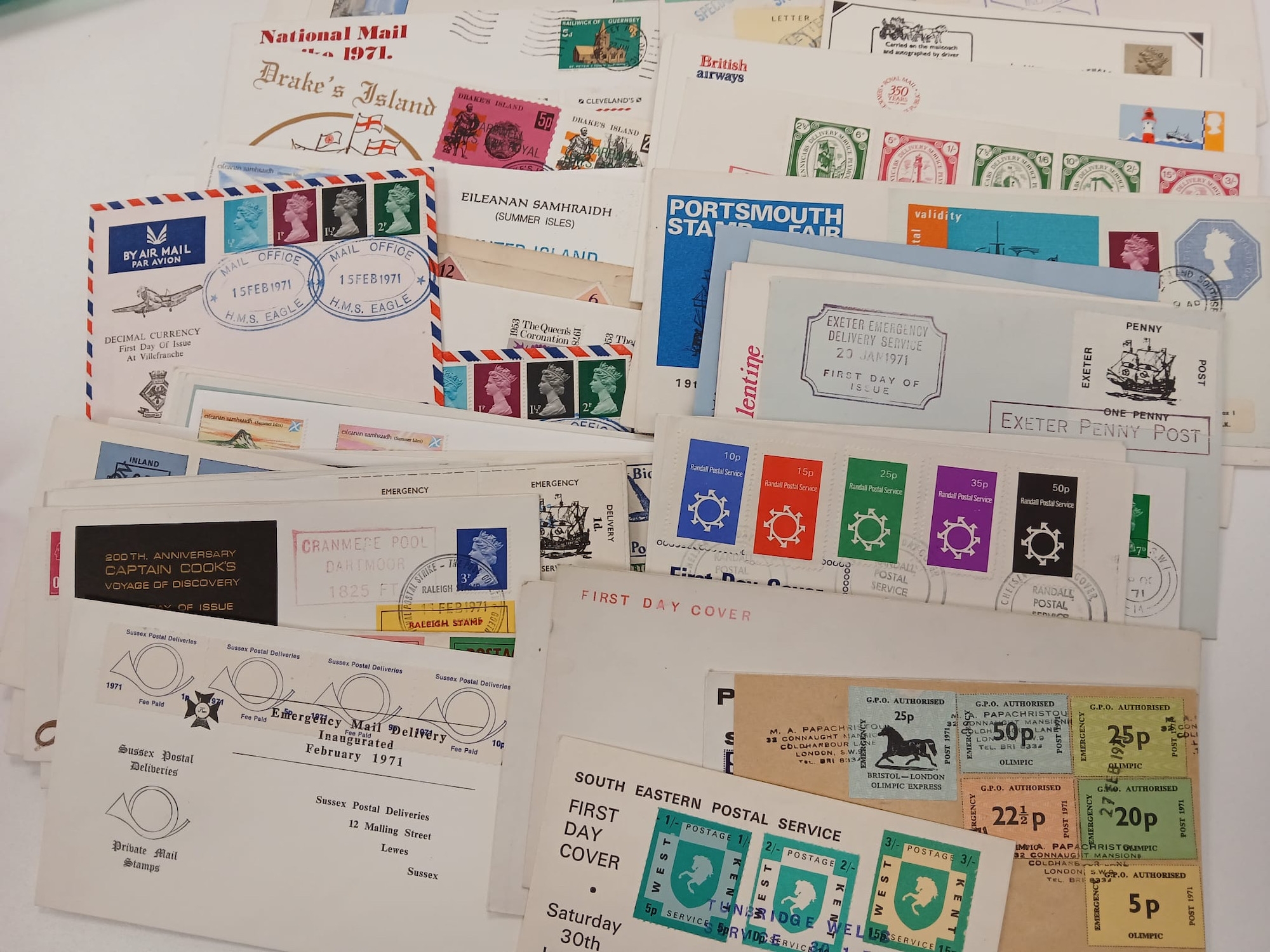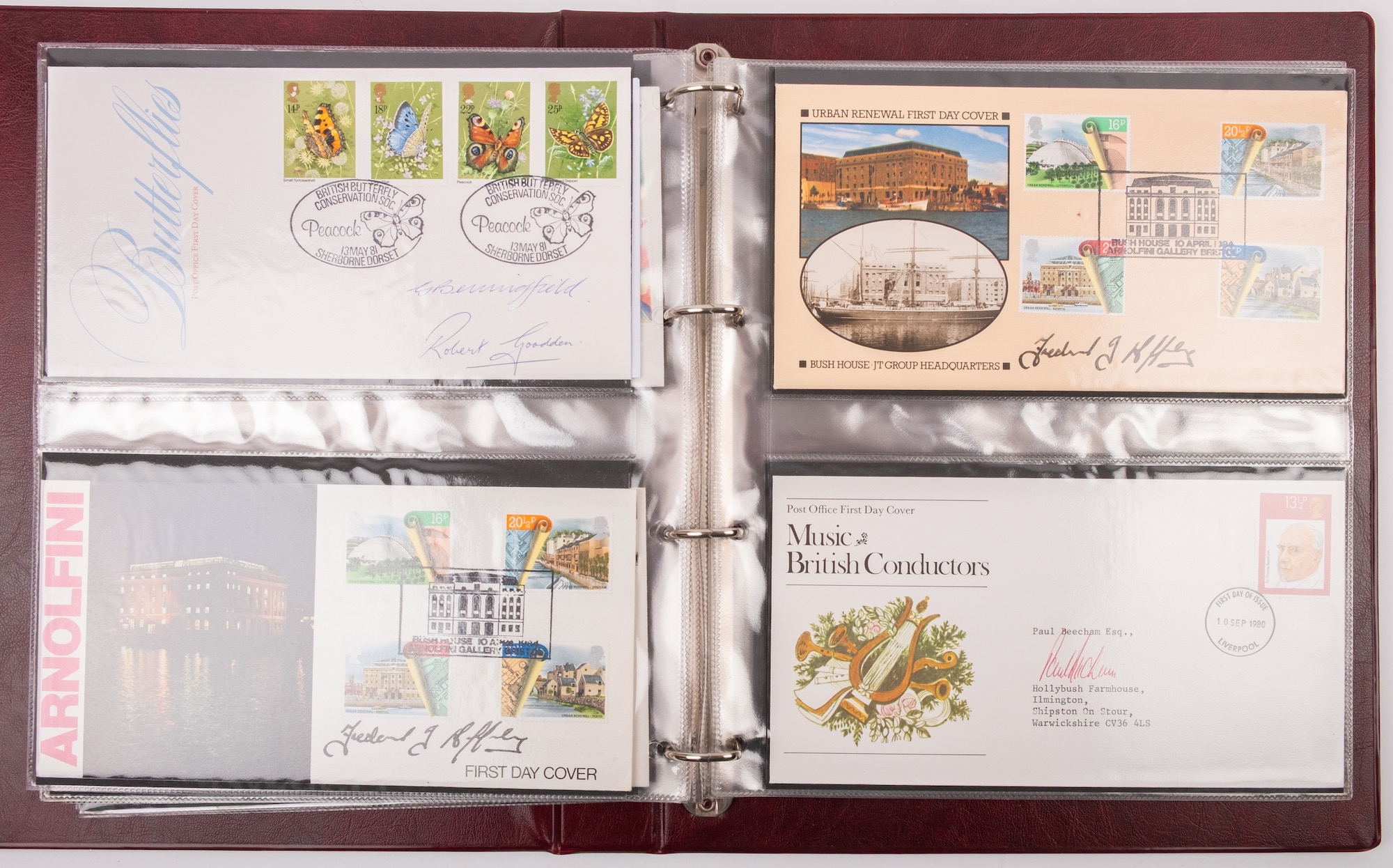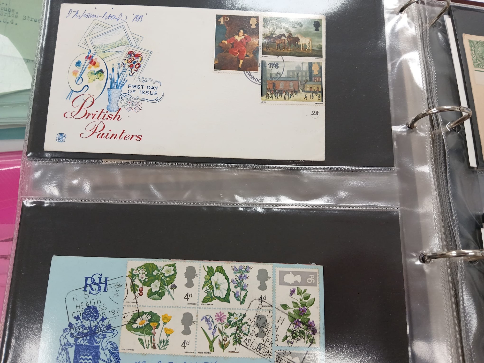 Great Britain. An album of mostly better First Day Covers and others, including King George VI Illustrated First Day Cover 10th May 1937, £1 Castle 1st September 1955, Wilding 4d,1/3,1/6 on illustrated FDC 2 Nov 1953, two 1965 Botanical illustrated FDC stamped ''CANCELLED'', 1963 NPY illustrated Phosphor, 1958 Games Empire Games Slogan, 1957 Scouts Jamboree slogan, the difficult 1967 Flowers with RSH Health Congress on Eastbourne Health Congress cover, various signed including 1967 Paintings Denys James Watkins-Pitchford ''BB'', also QV 2d Blue and 6d tied to Malta JA 16 1874, Westcountry Air Service and Railway Service KGV covers, 1890 Penny Postage Jubilee cards with cancels, and a good run of Channel Island Wartime covers including Bisects (four covers), and FDCs etc. (60 items in album), plus a qty of various others loose in two plastic folder including strike mail, local, useful.