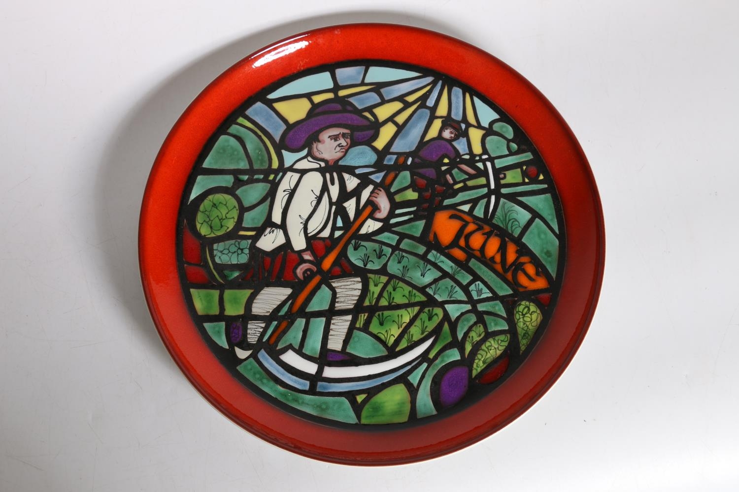 Poole Pottery Medieval Calendar Series charger 'June', issued 1974, designed by Tony Morris, signed J.F. Wills, limited edition 633/1000, 32cm diameter.