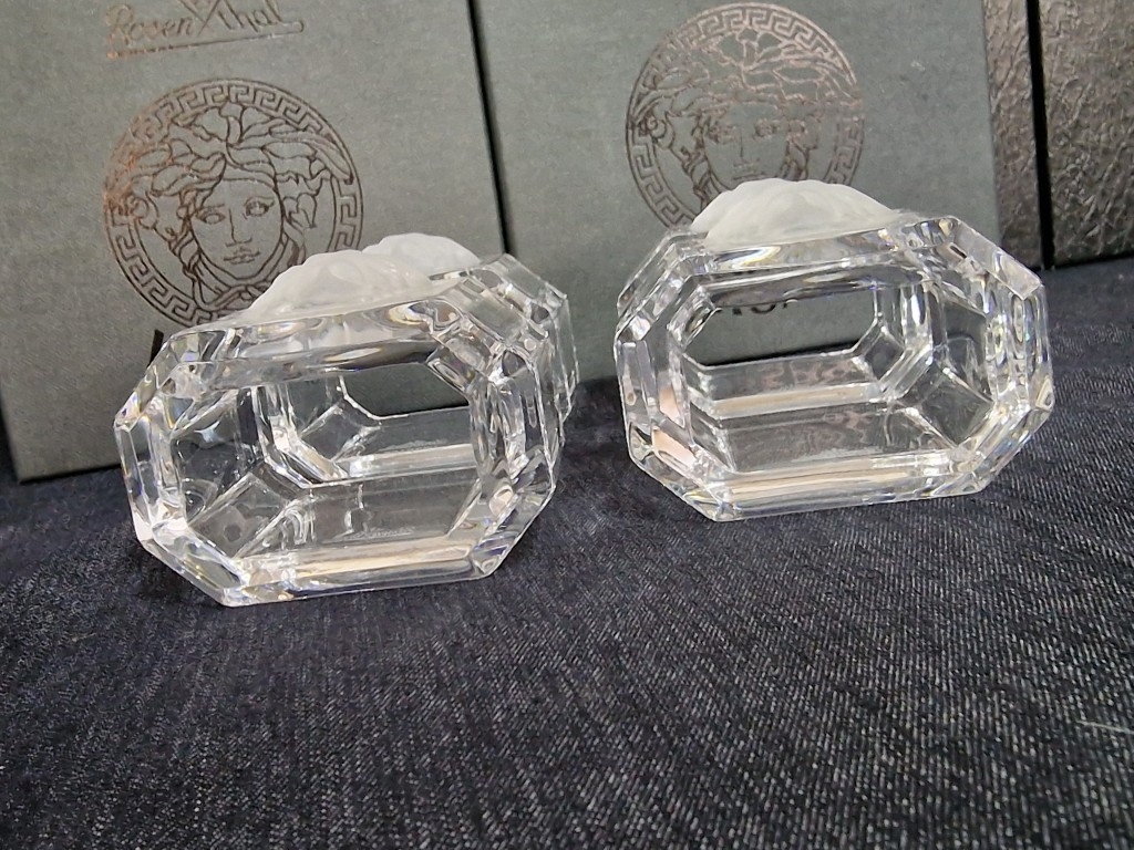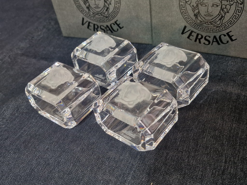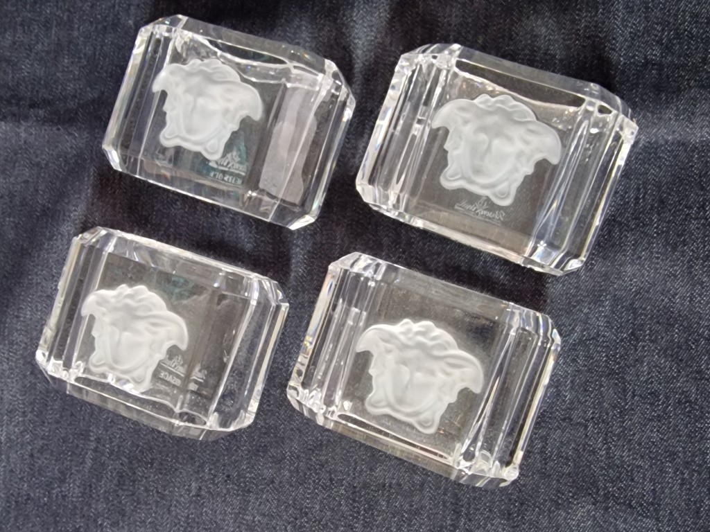 Set of 4 x Rosenthal VERSACE 'Treasury' Medusa Crystal Napkin Rings, Unused in Original Boxes, (Ref: 20665), (4)