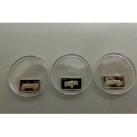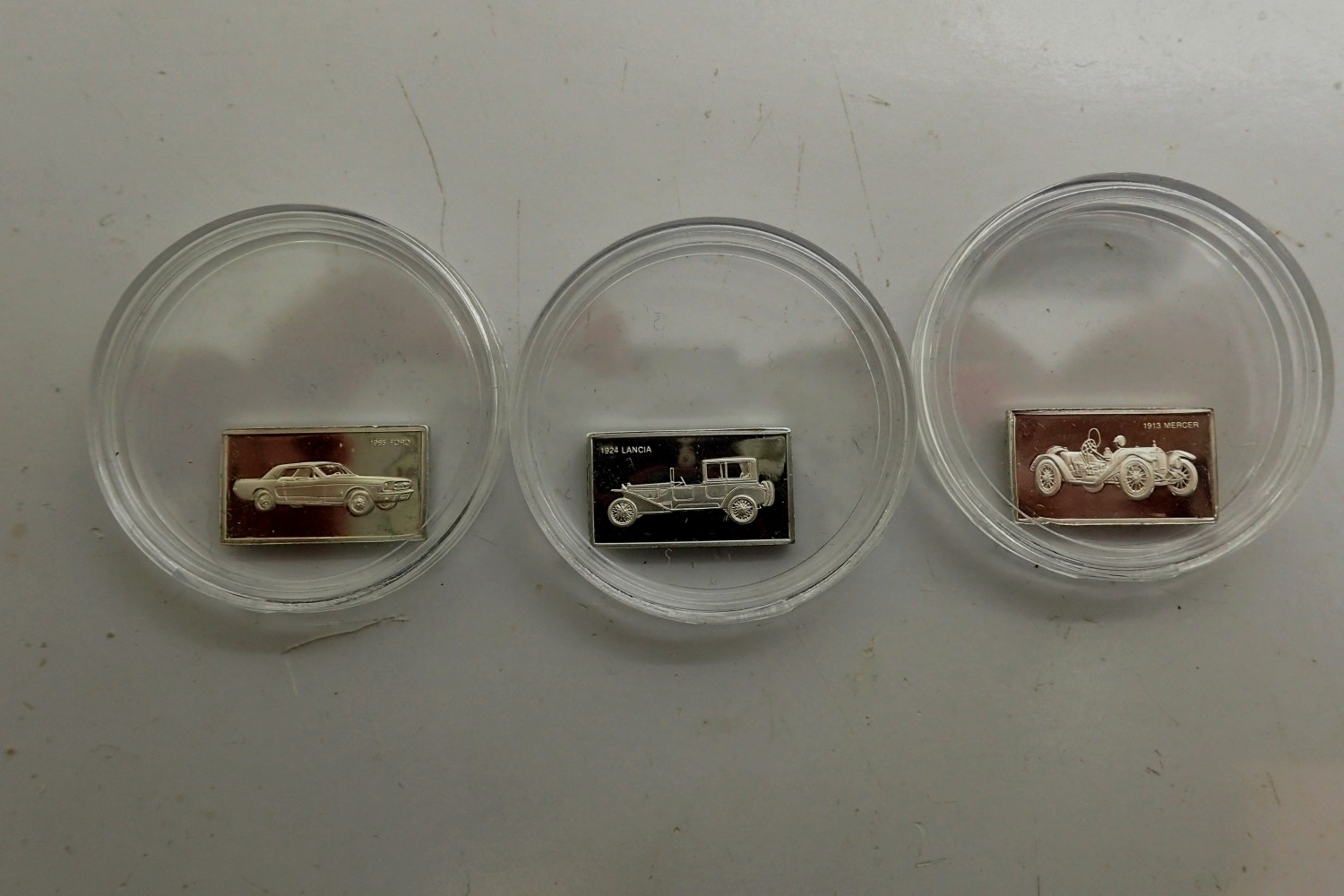 Three silver bullion car ingots, Foro, Lancia and Mercer. UK P&P Group 1 (£18+VAT for the first lot and £2+VAT for subsequent lots)