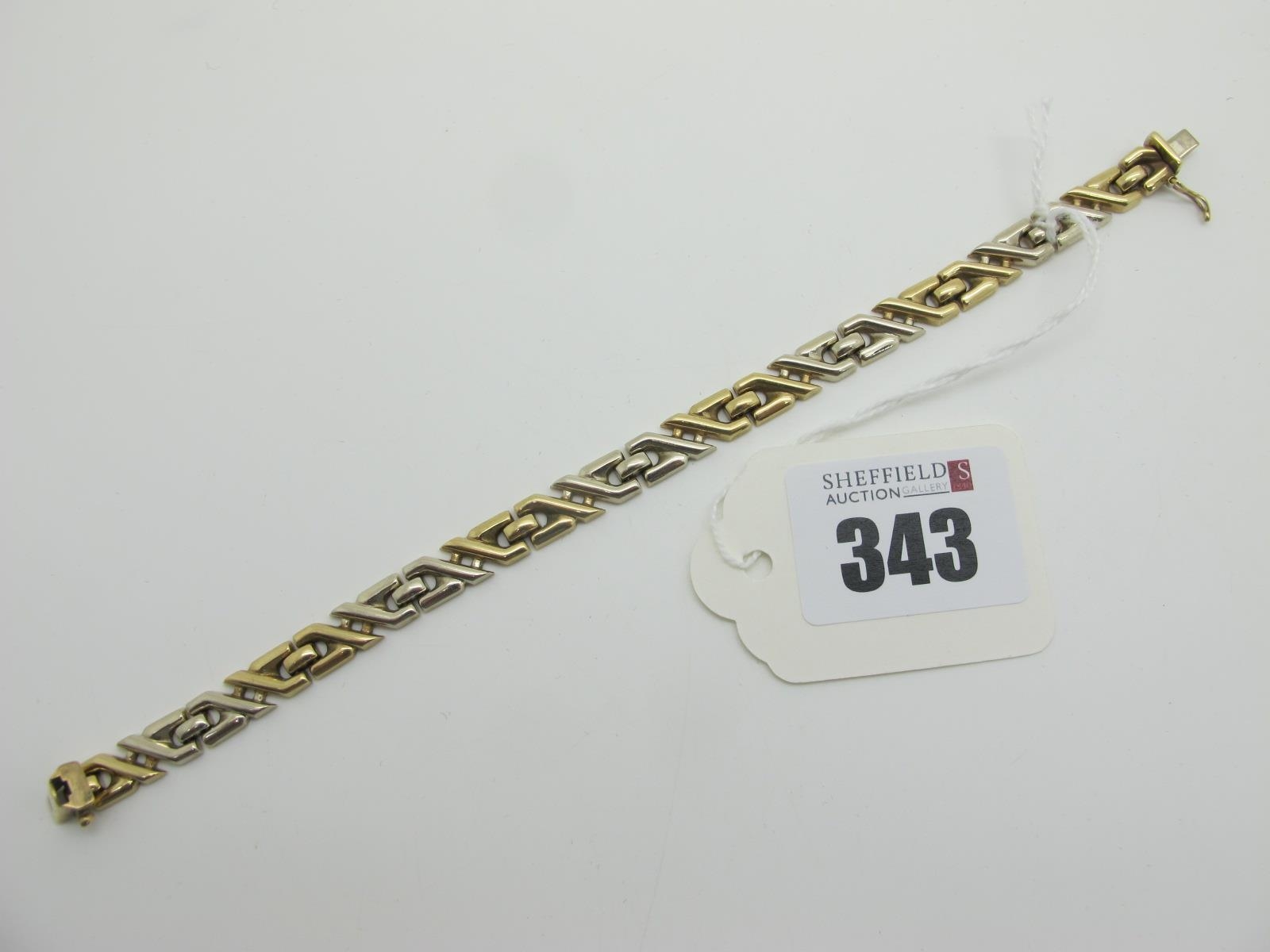 A Modern 9ct Gold Two Colour Bracelet, of geometric design, to snap clasp (11grams).