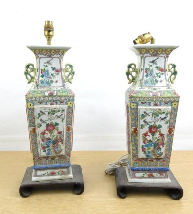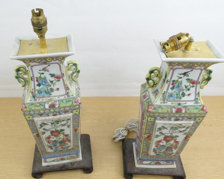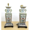 Pair of large Chinese hand painted porcelain table lamps