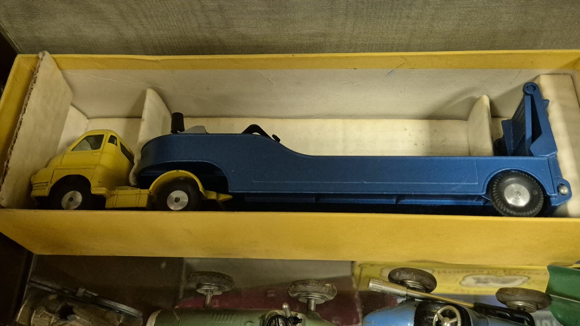CORGI TOYS: No. 1100 'Carrimore' low loader. In original box. In a yellow and blue colourway together with a collection of various model cars include Schuco Micro Racers, Corgi, etc.