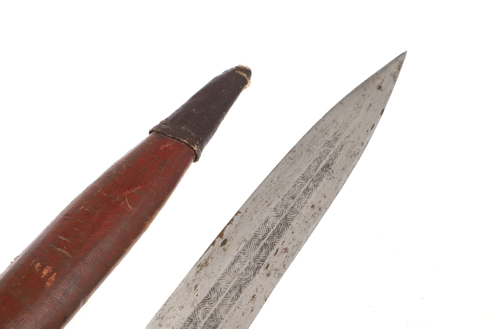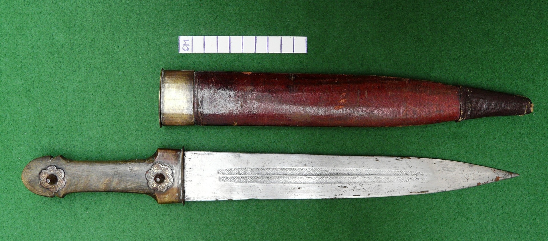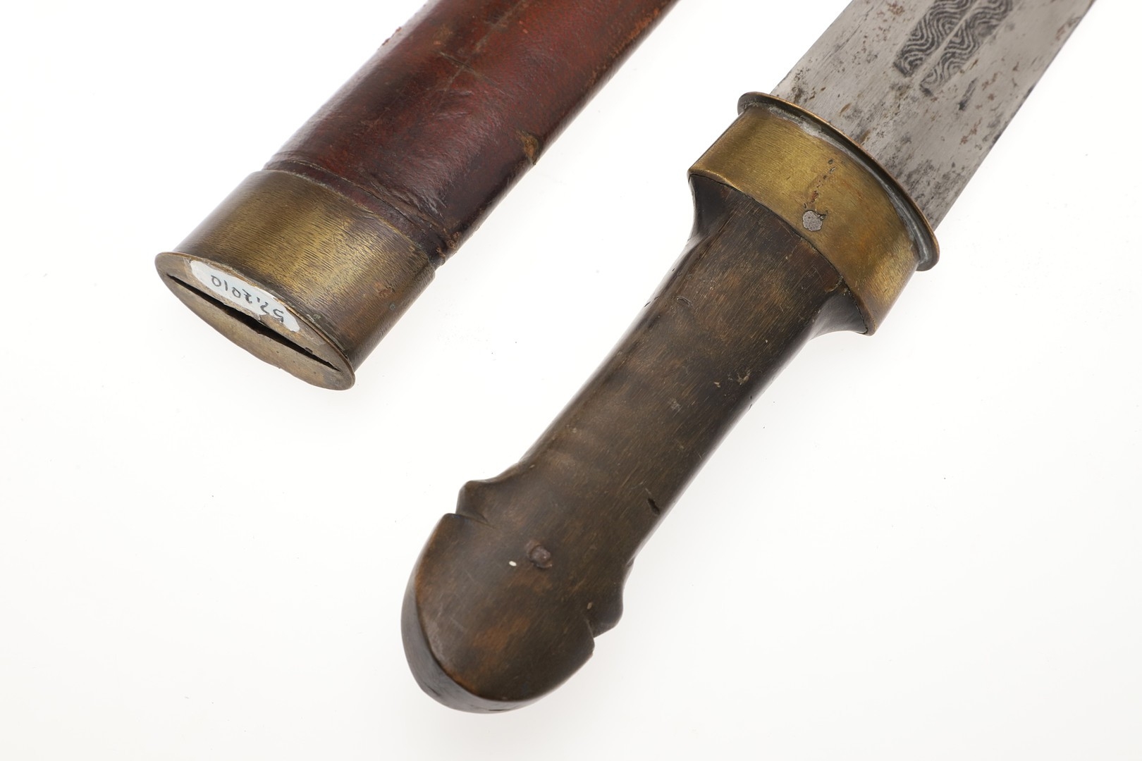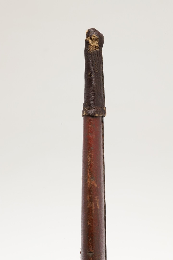 Repair to end of scabbard, light marking. Collection numbers to both parts.