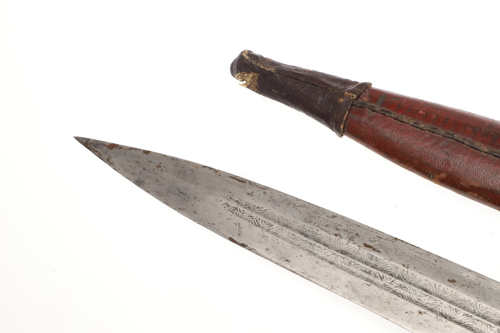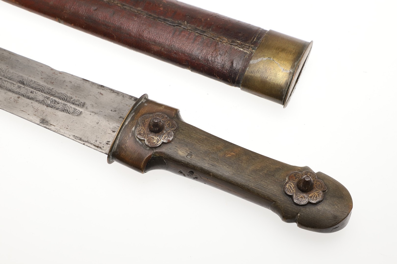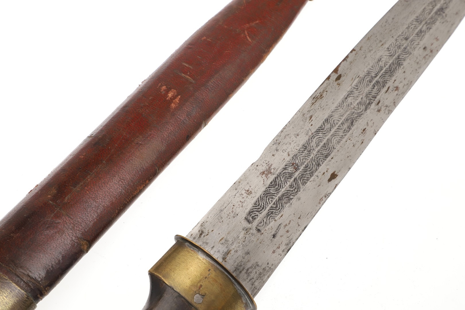 Repair to end of scabbard, light marking. Collection numbers to both parts.