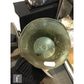 Three quarters of the base flange is missing in antiquity. Some spotting but good patination overall.