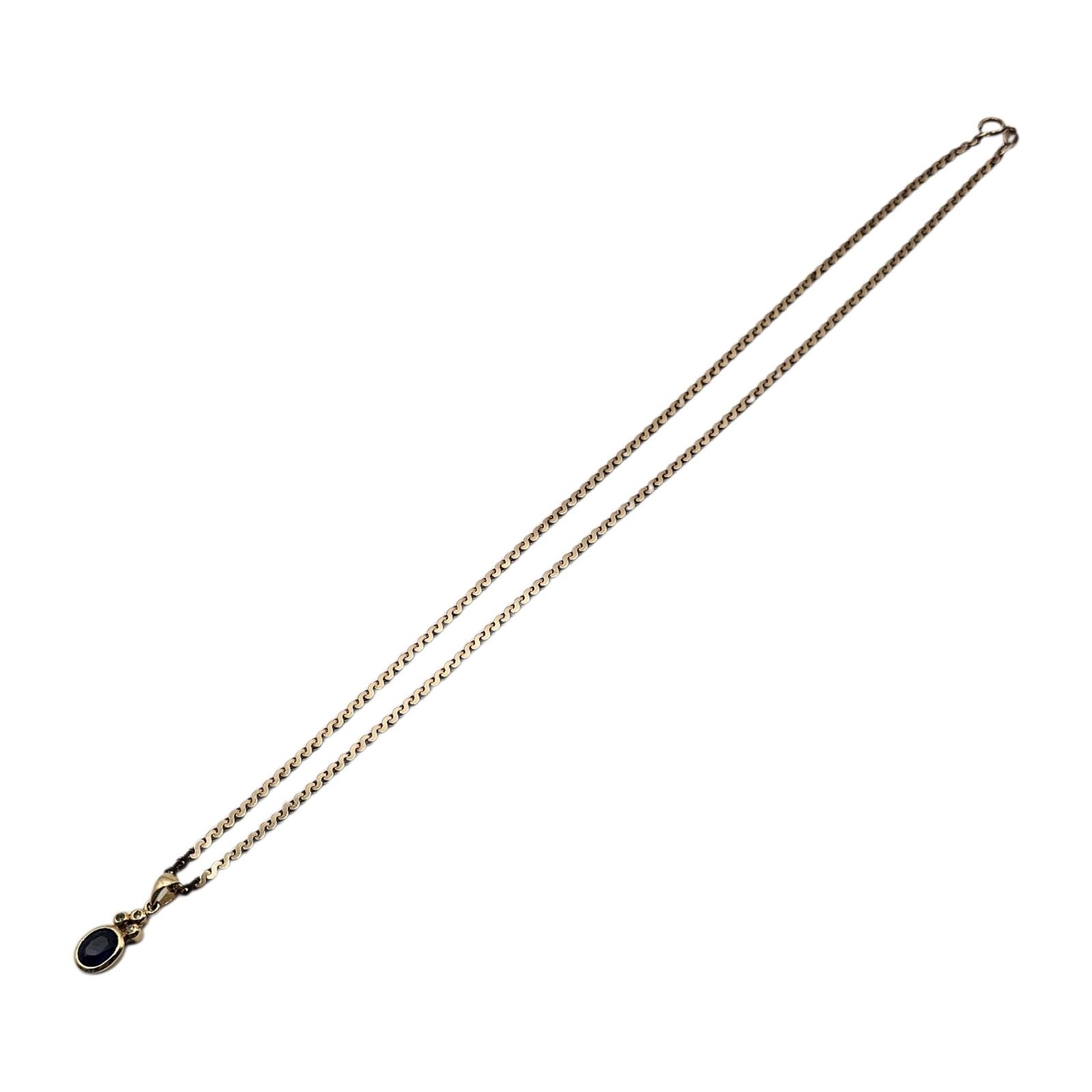 A VINTAGE 9CT GOLD, SAPPHIRE AND DIAMOND PENDANT NECKLACE