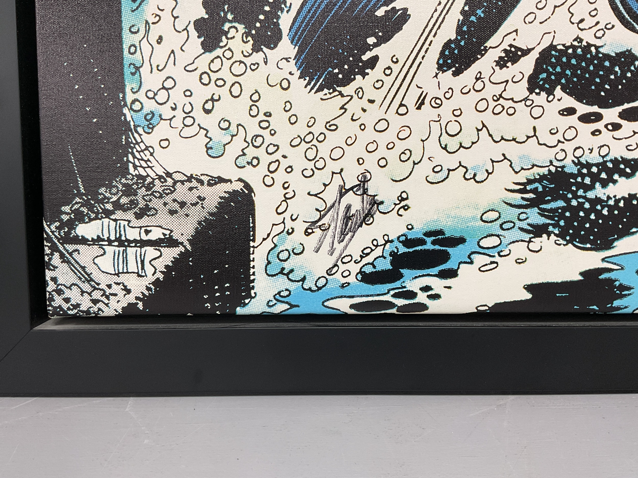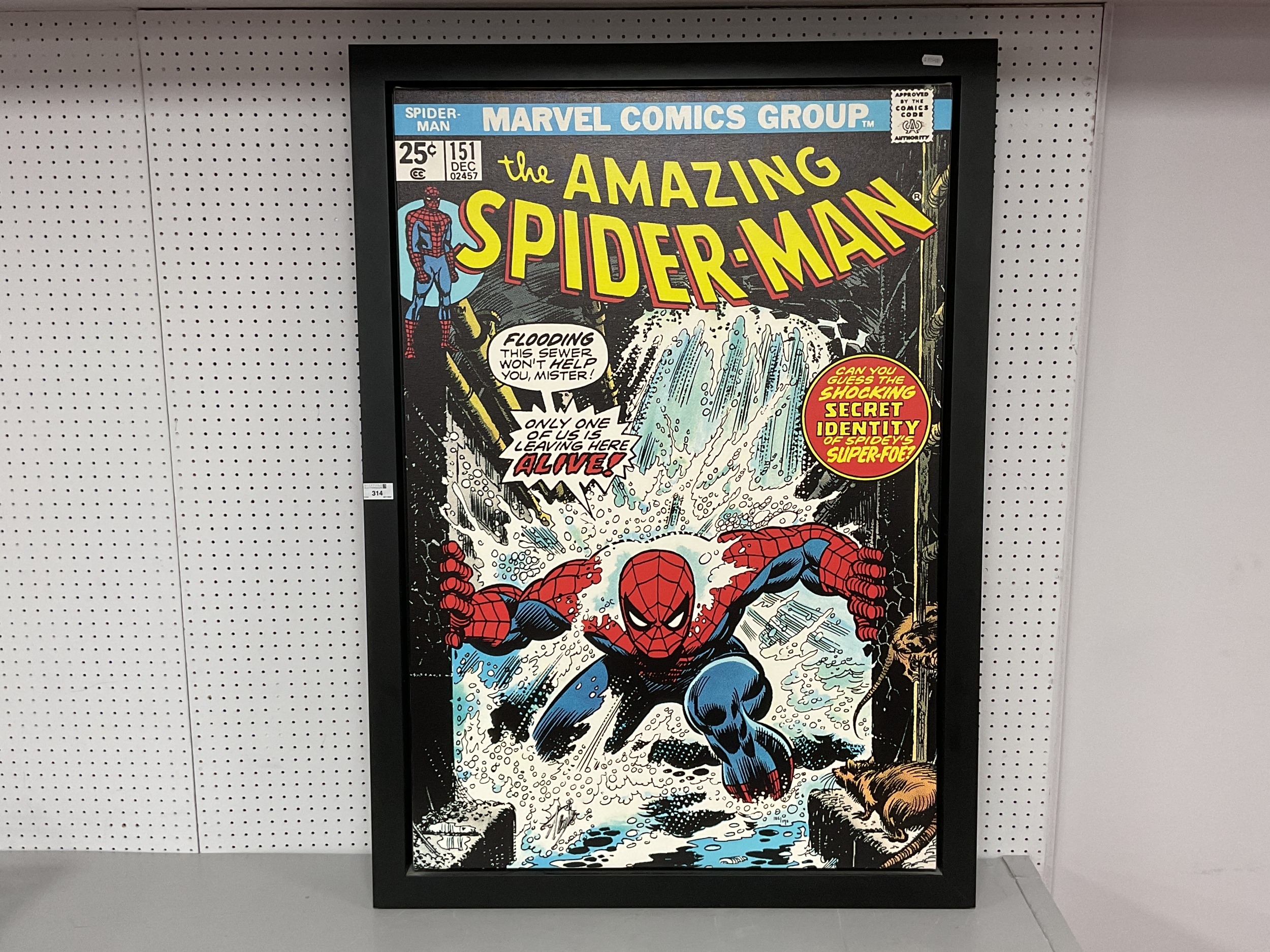 The Amazing Spider-Man #151 Only One Of Us Leaving Here Alive! Boxed Canvas Framed Limited Edition Print, Signed Stan Lee (unverified). With certificate of authenticity No.185 of 195 copies. Frame measures approximately 112cm x 80cm.