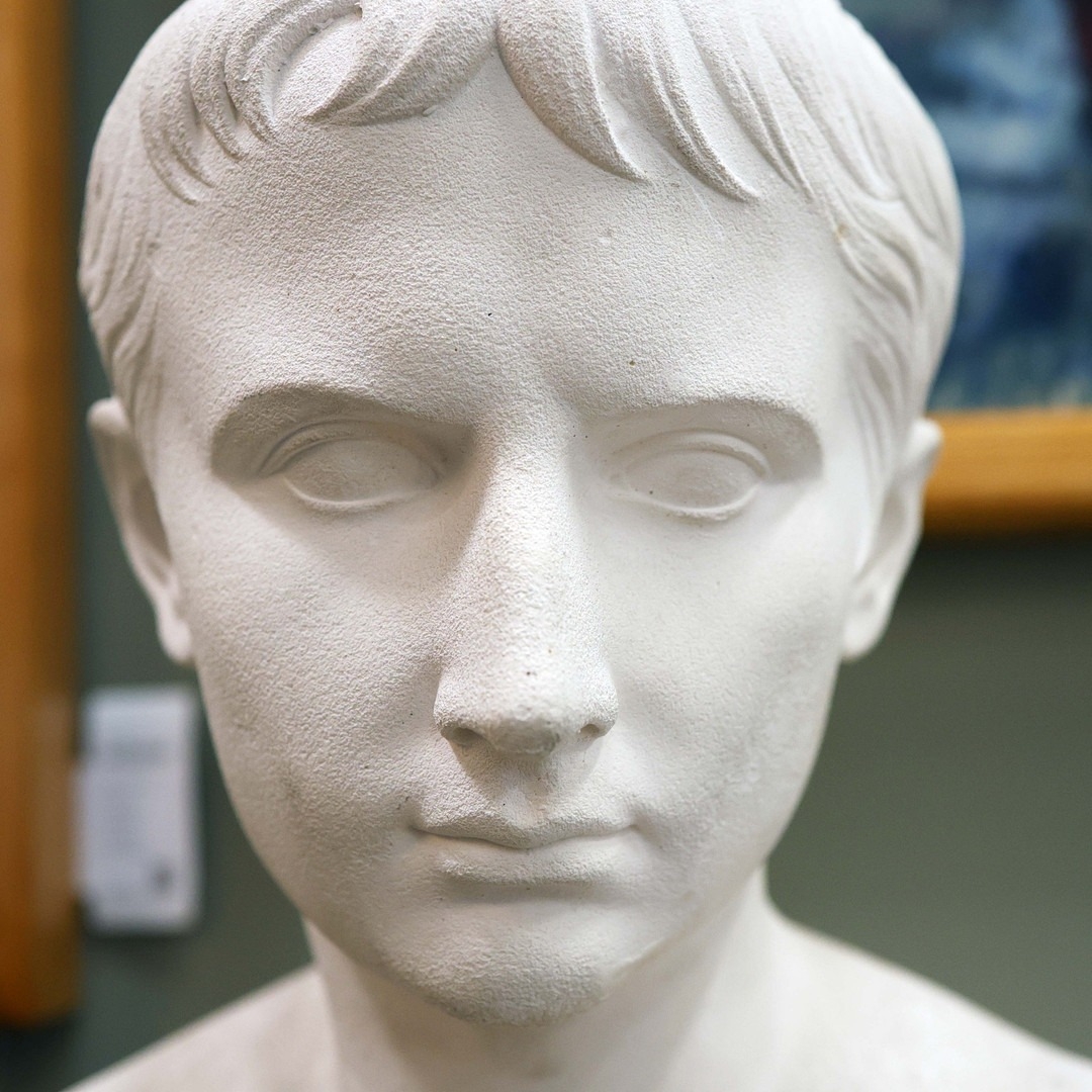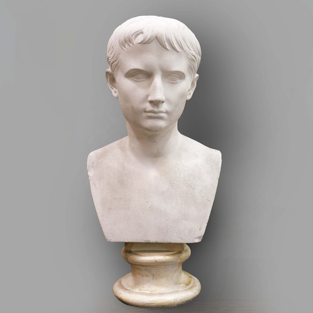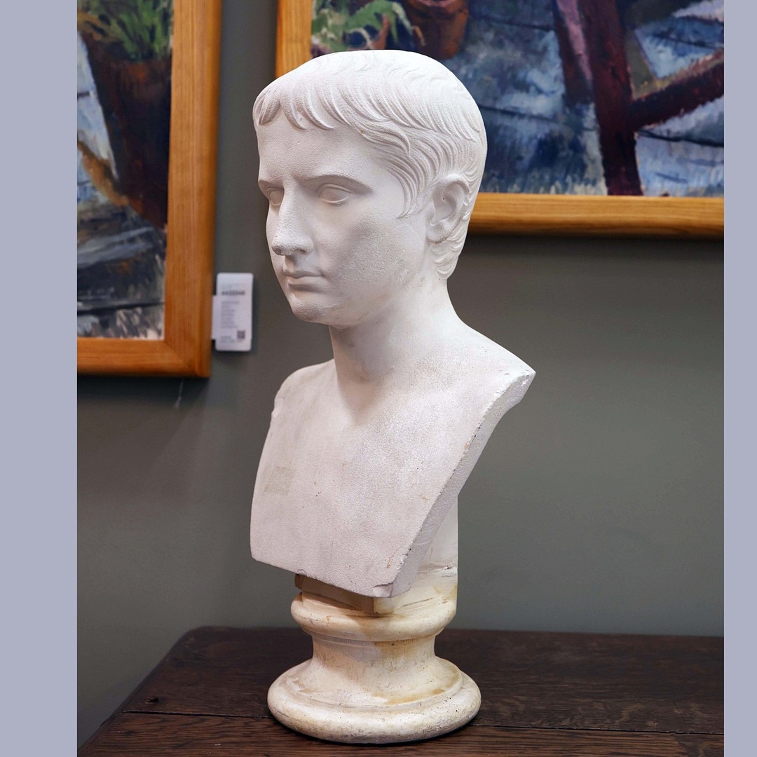 19TH CENTURY GRAND TOUR BUST OF CAESAR AUGUSTUS. plaster, 55cm H.