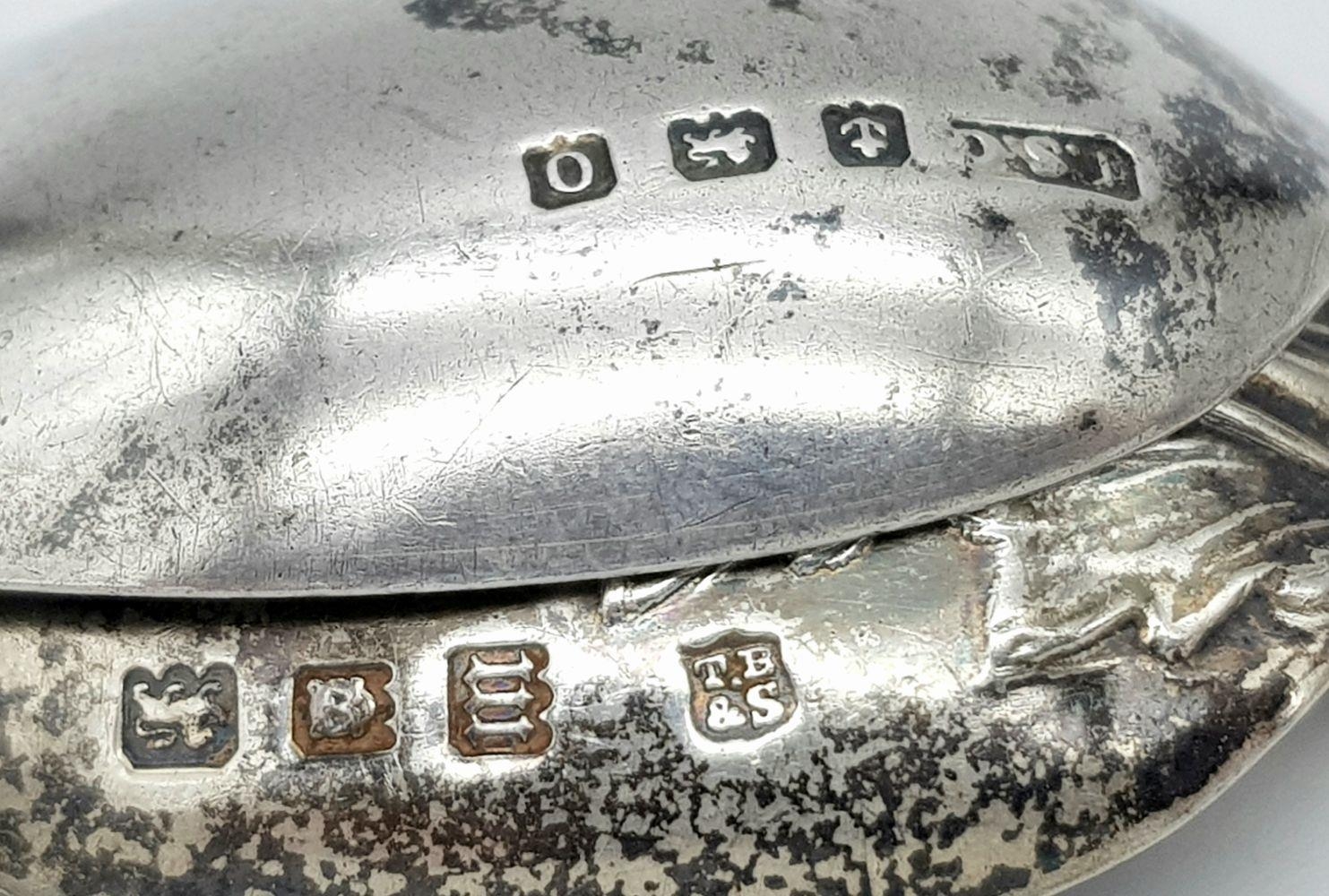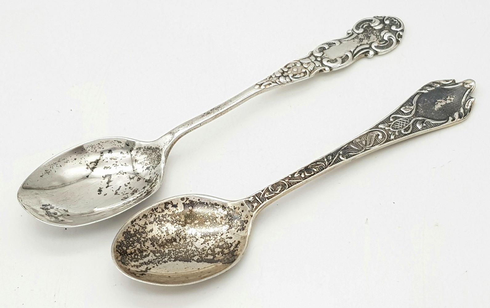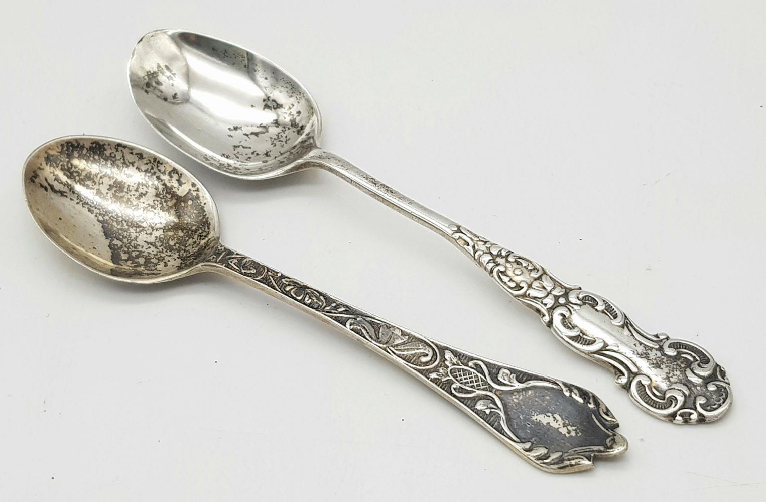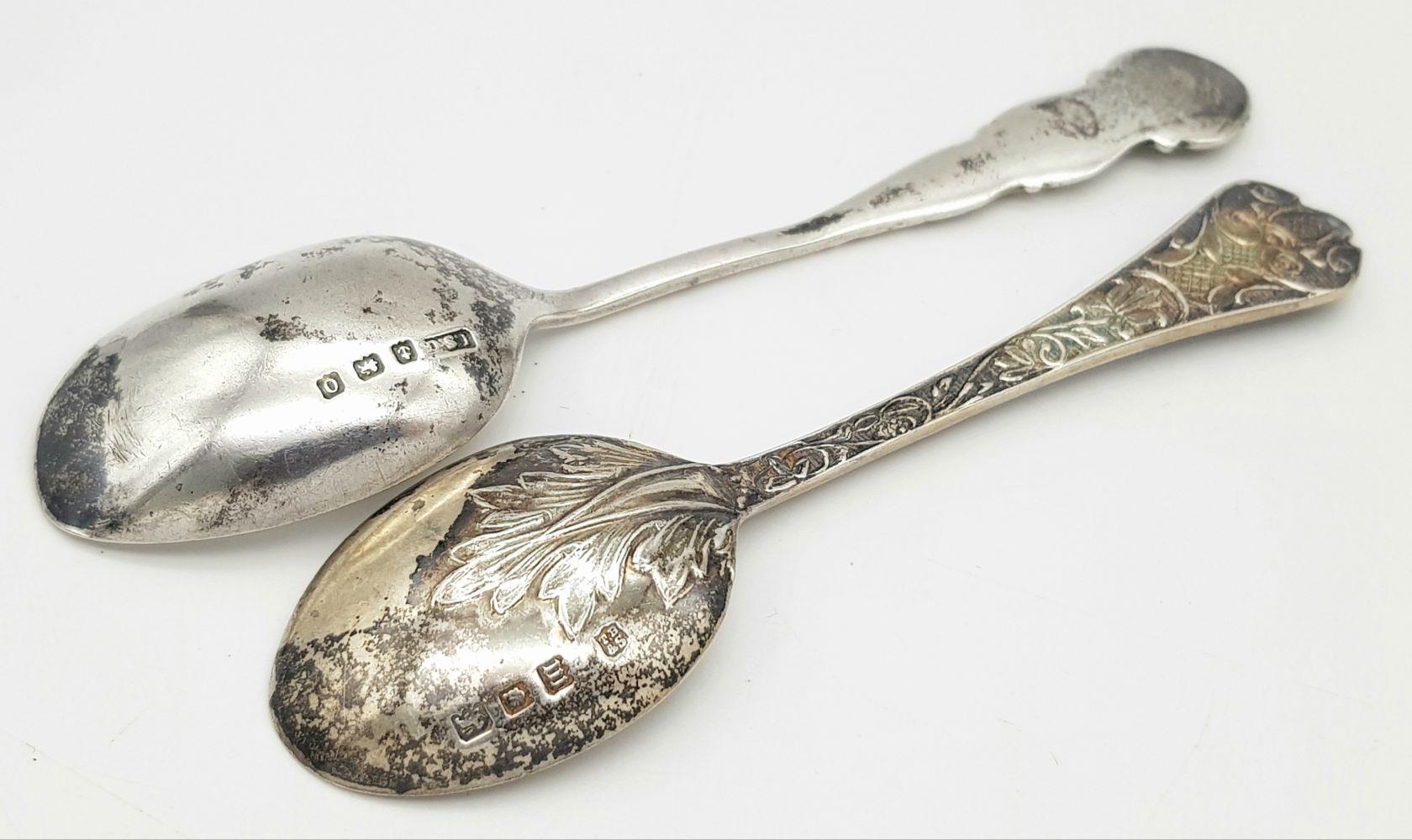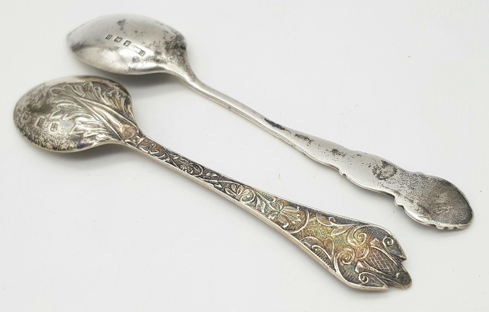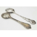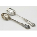 Two Ornately Decorated Silver Teaspoons. Full hallmarked. 26.92g total weight.