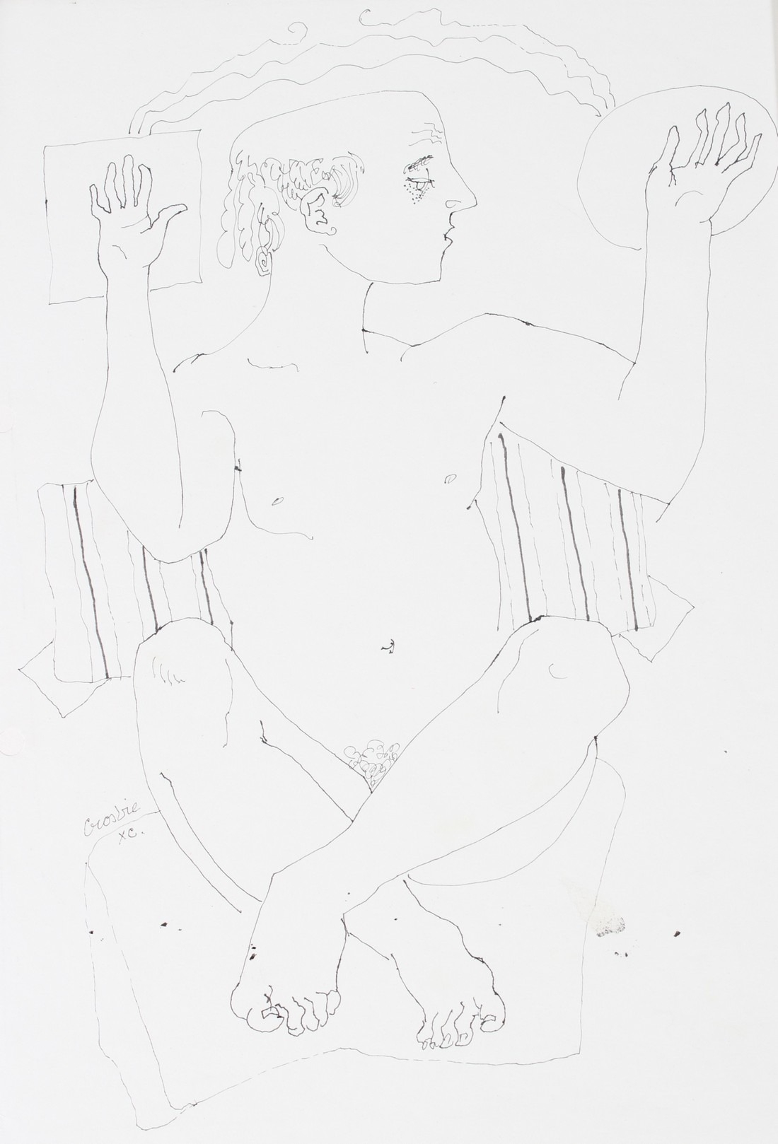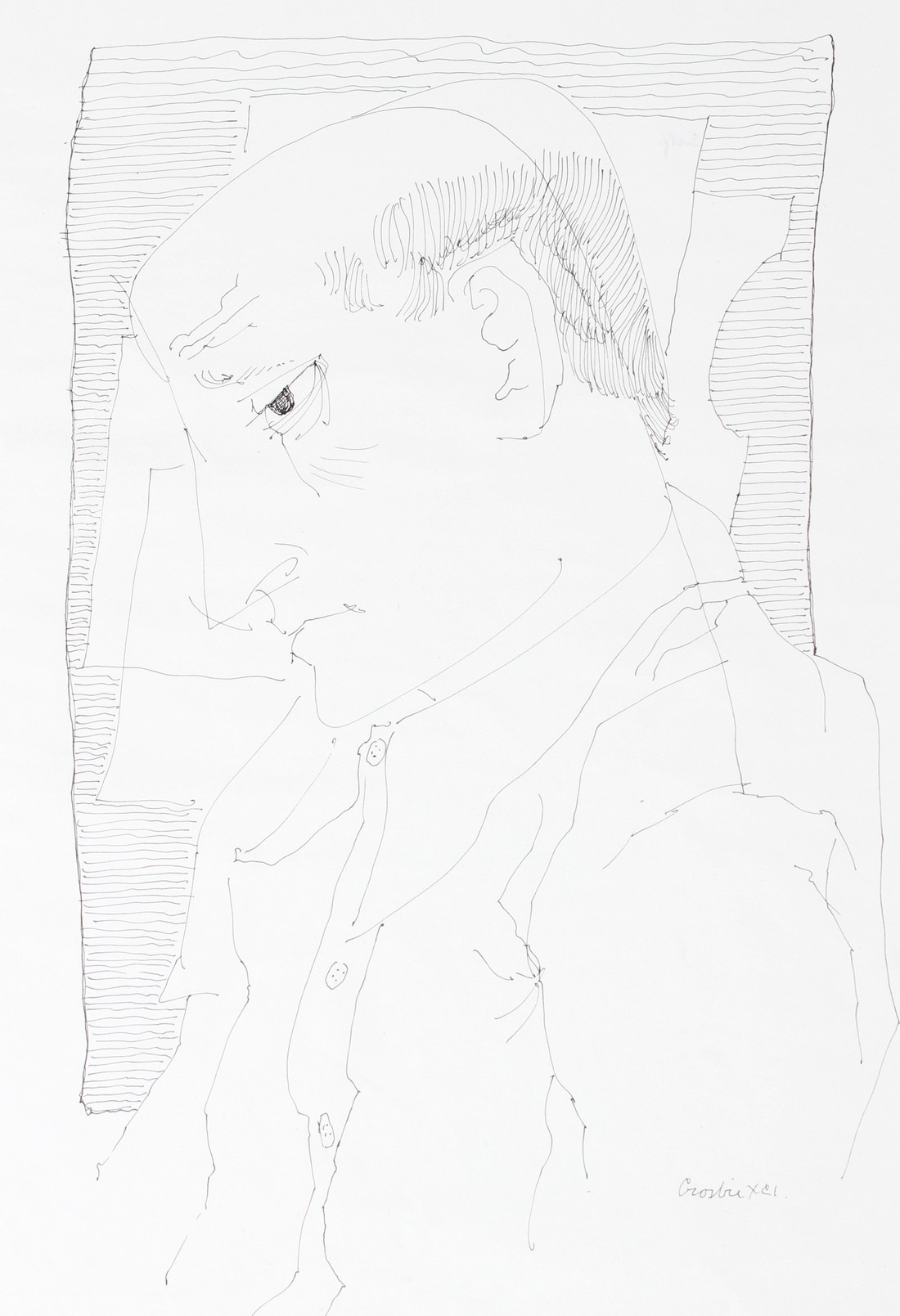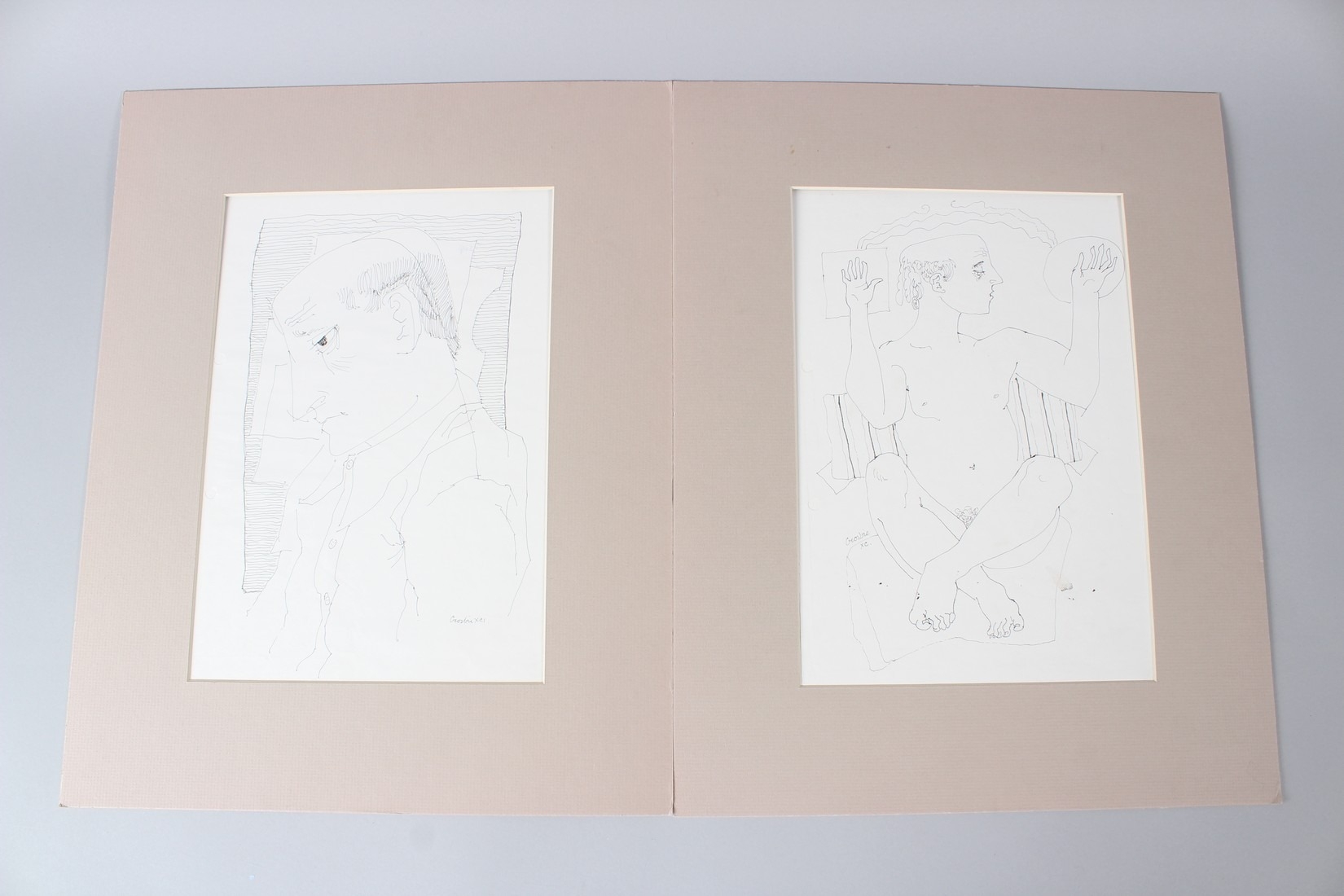 WILLIAM CROSBIE (1915-1999) Portrait study of a man in profile and another of a seated male nude. two pen and ink drawings mounted on card signed 29 x 20cm