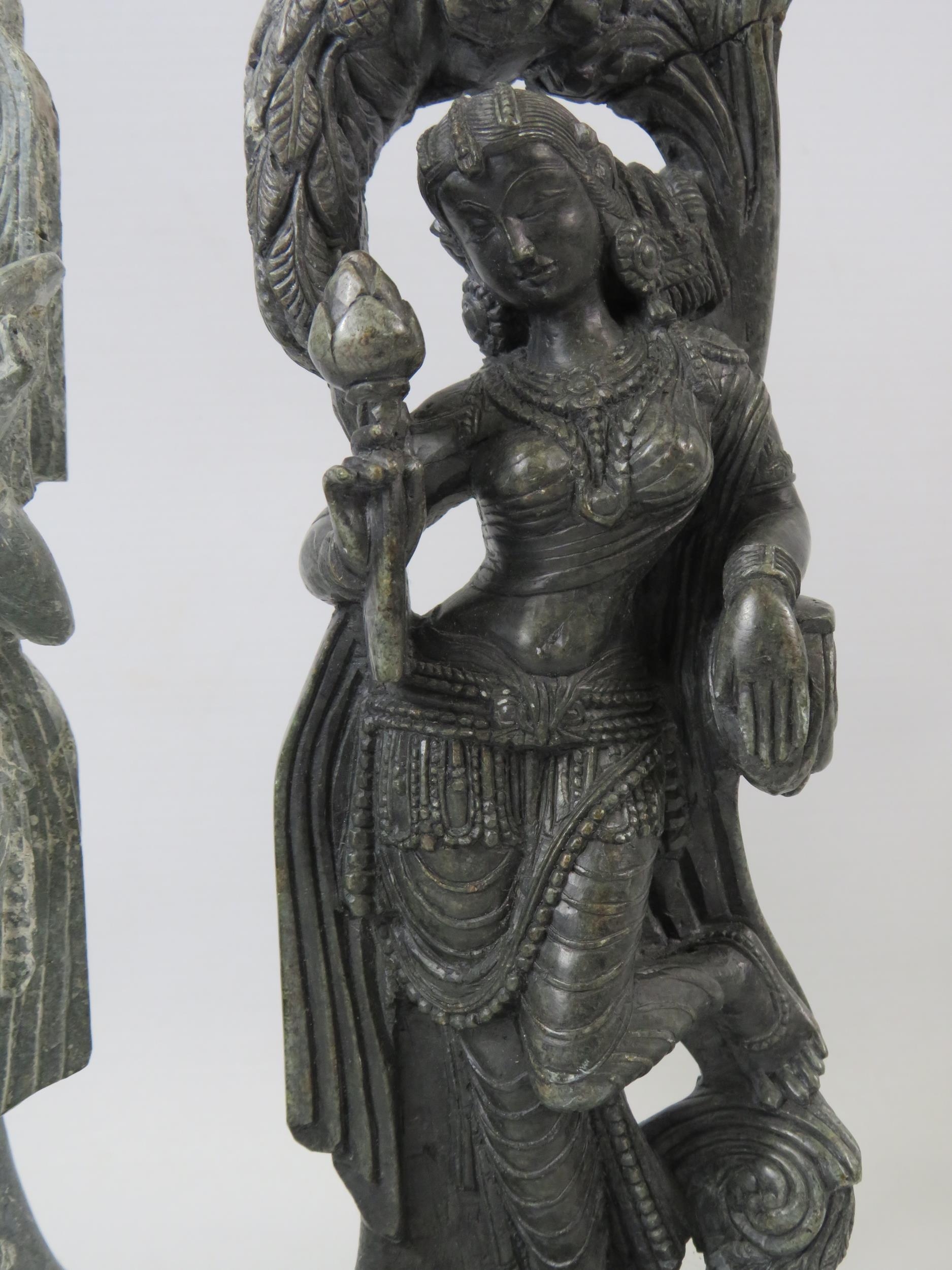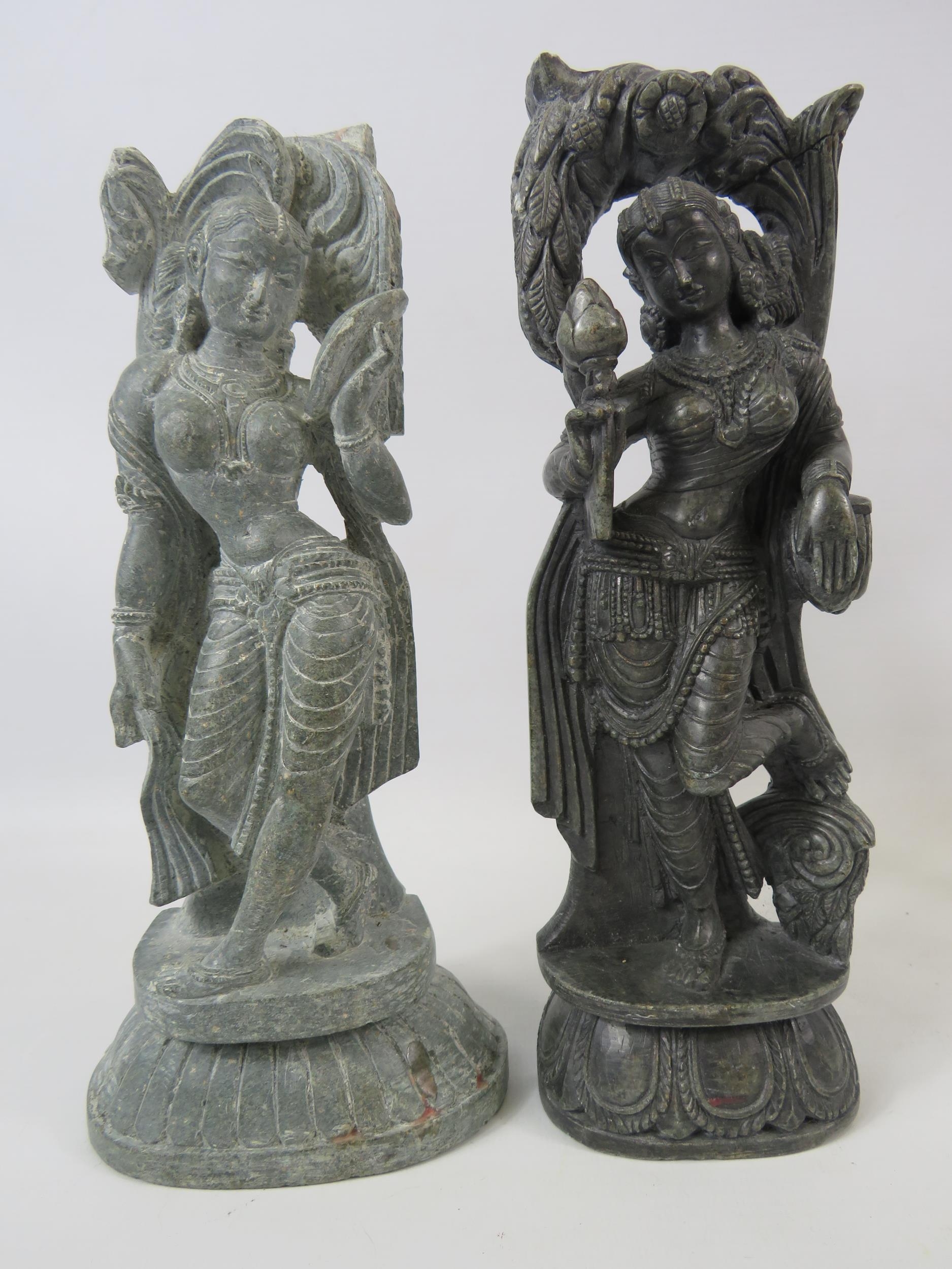2 Carved soapstone goddess sculptures, approx 9.5" tall.