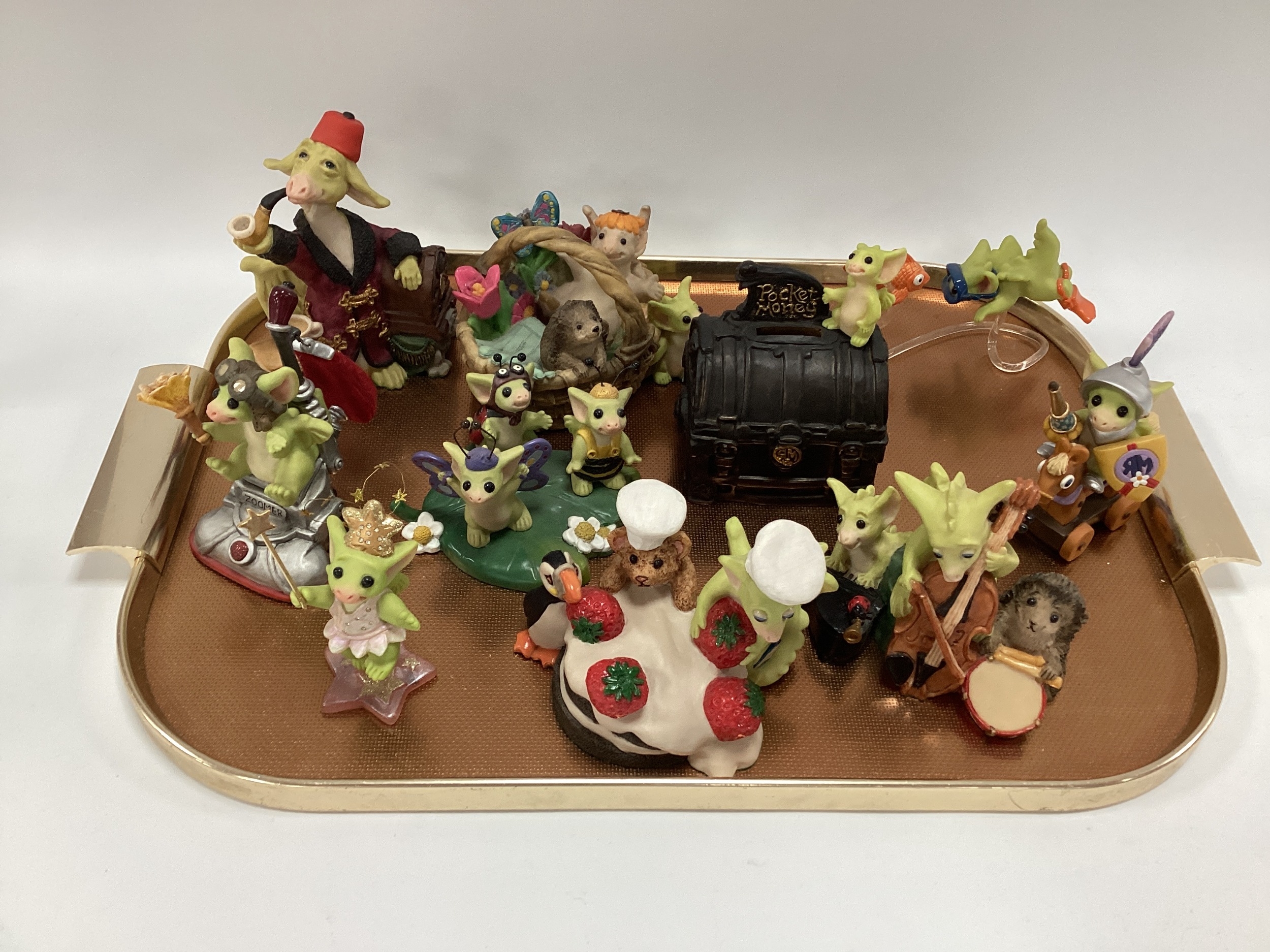 The Whimsical World of Pocket Dragons, a large collection of boxed figures from the Collectable World Studios, to include 'Glub Glub and Flippers', 'Pocket Money', 'Garden Critters', 'Maid Service' and 'Chocolate Srawberry Avalance Surprise' with hidden surprise pen drawn dragon and signature 'Real 12/99' to inside of lid, etc (10).