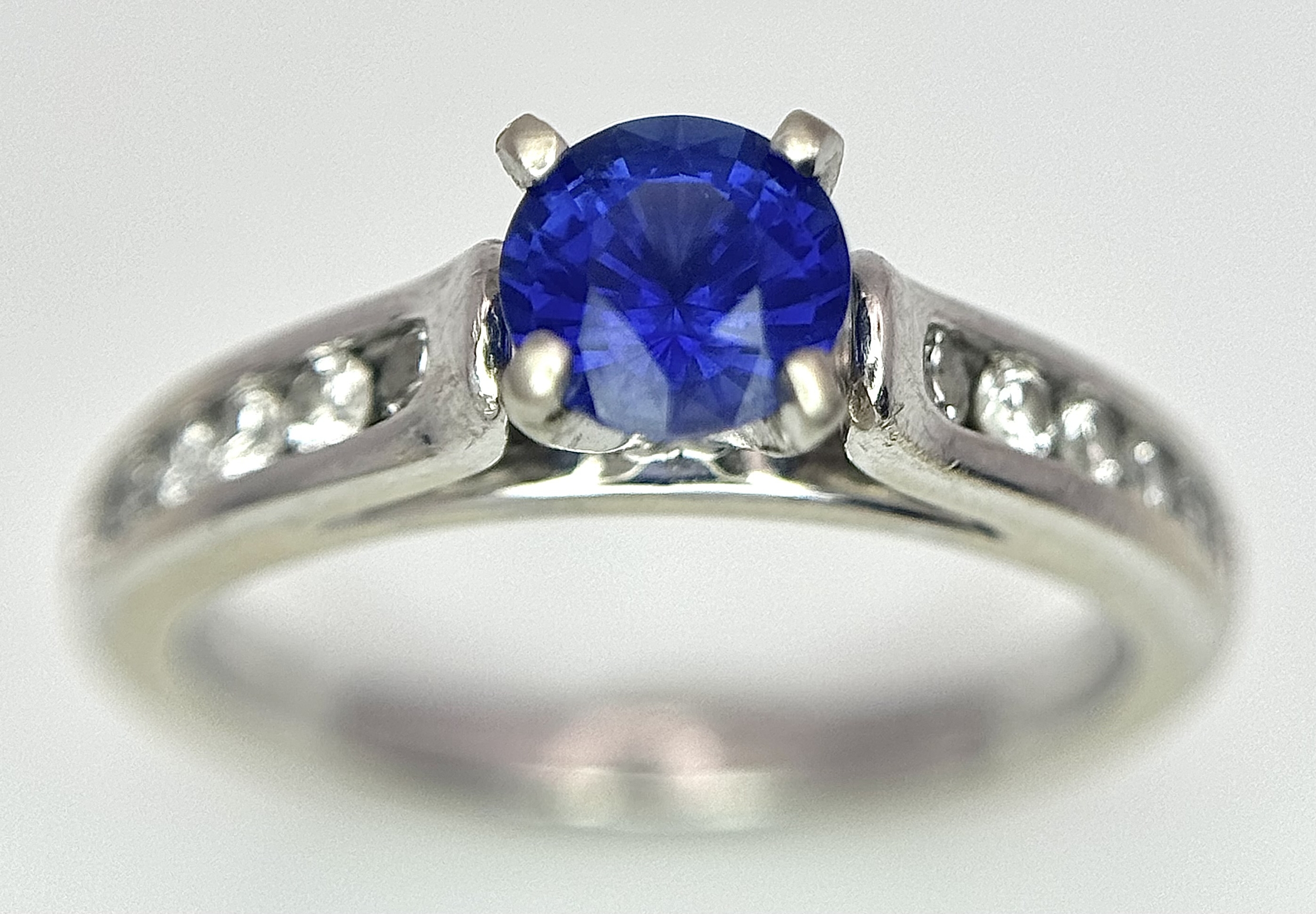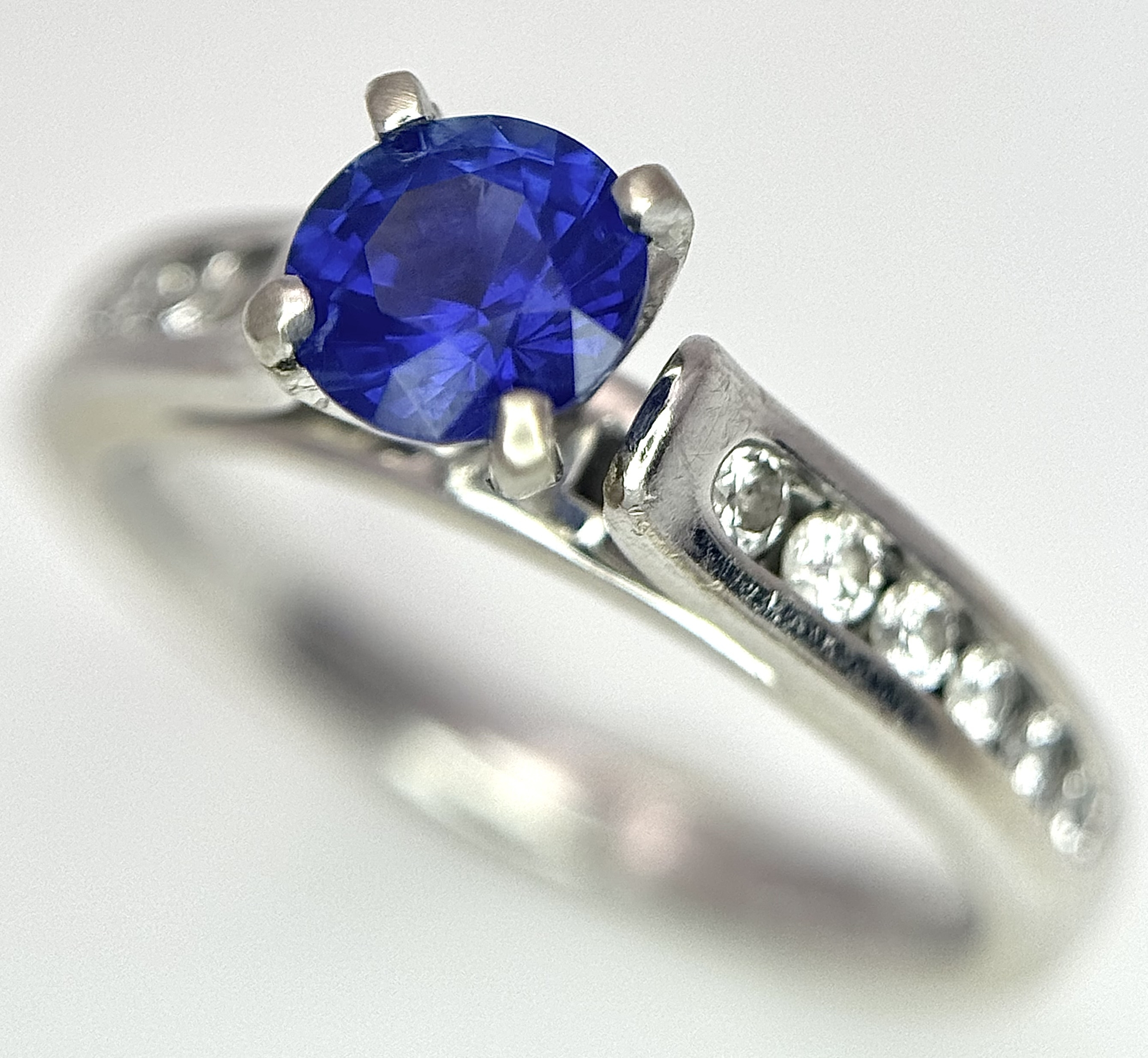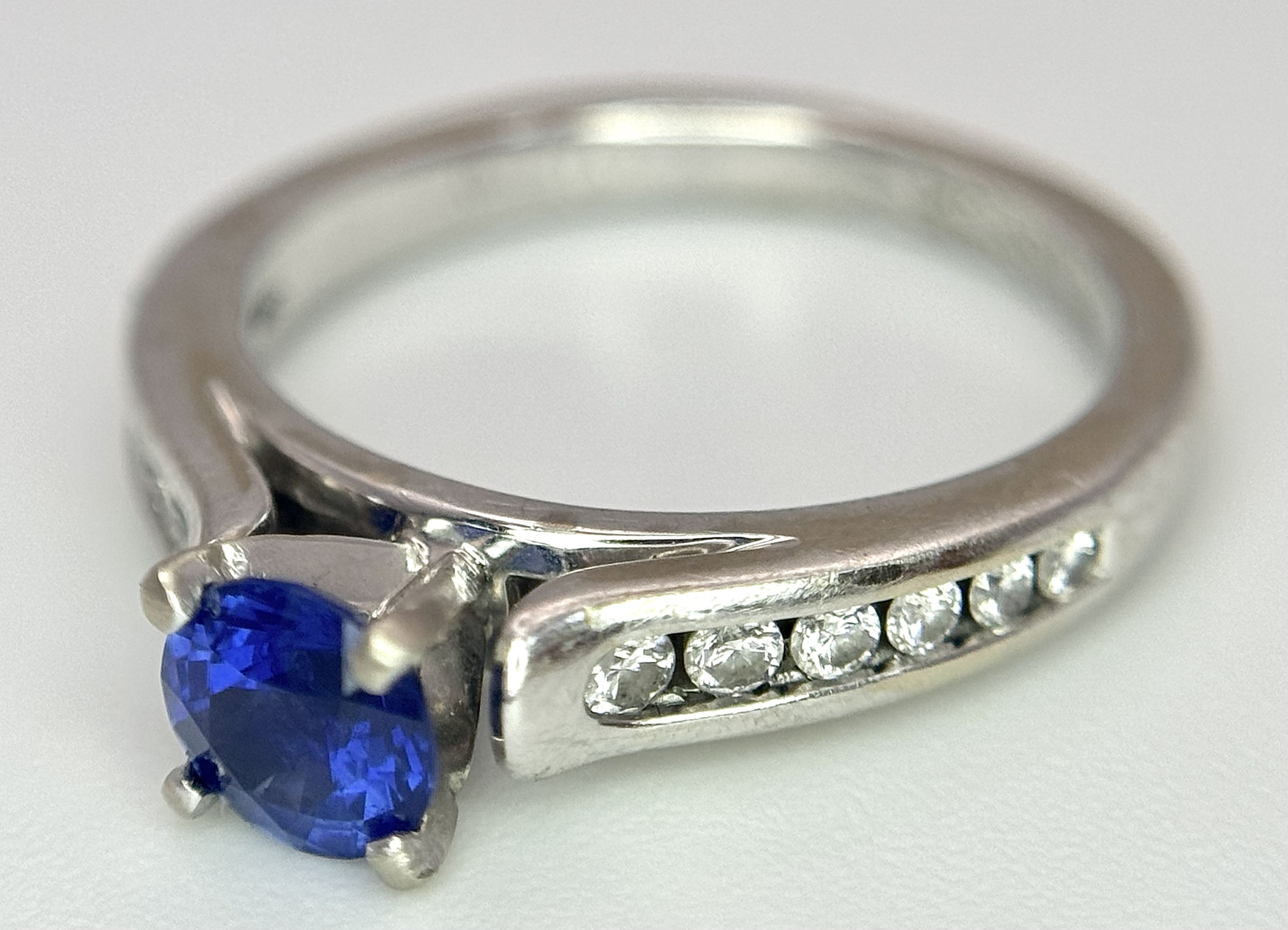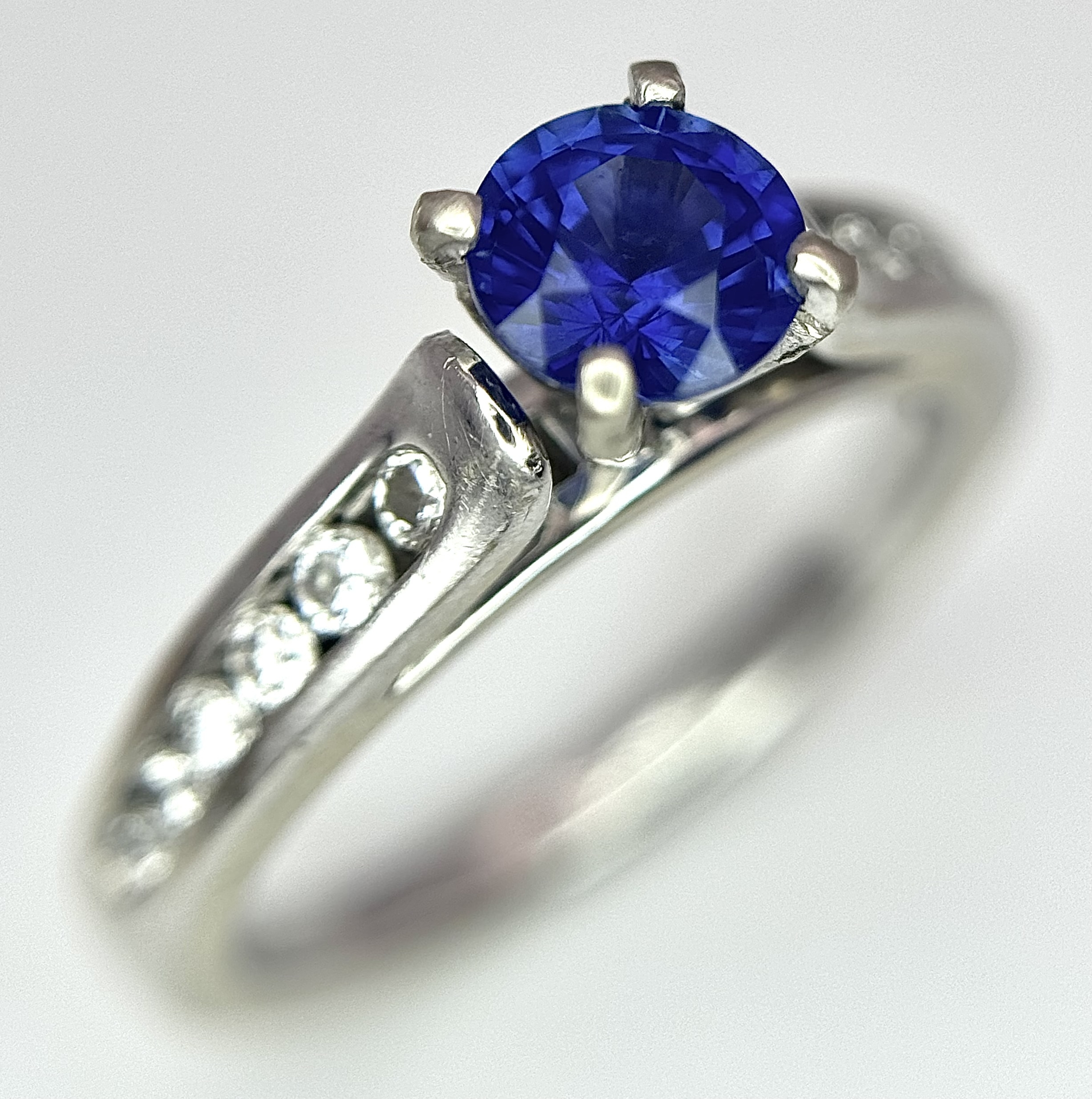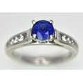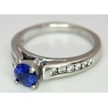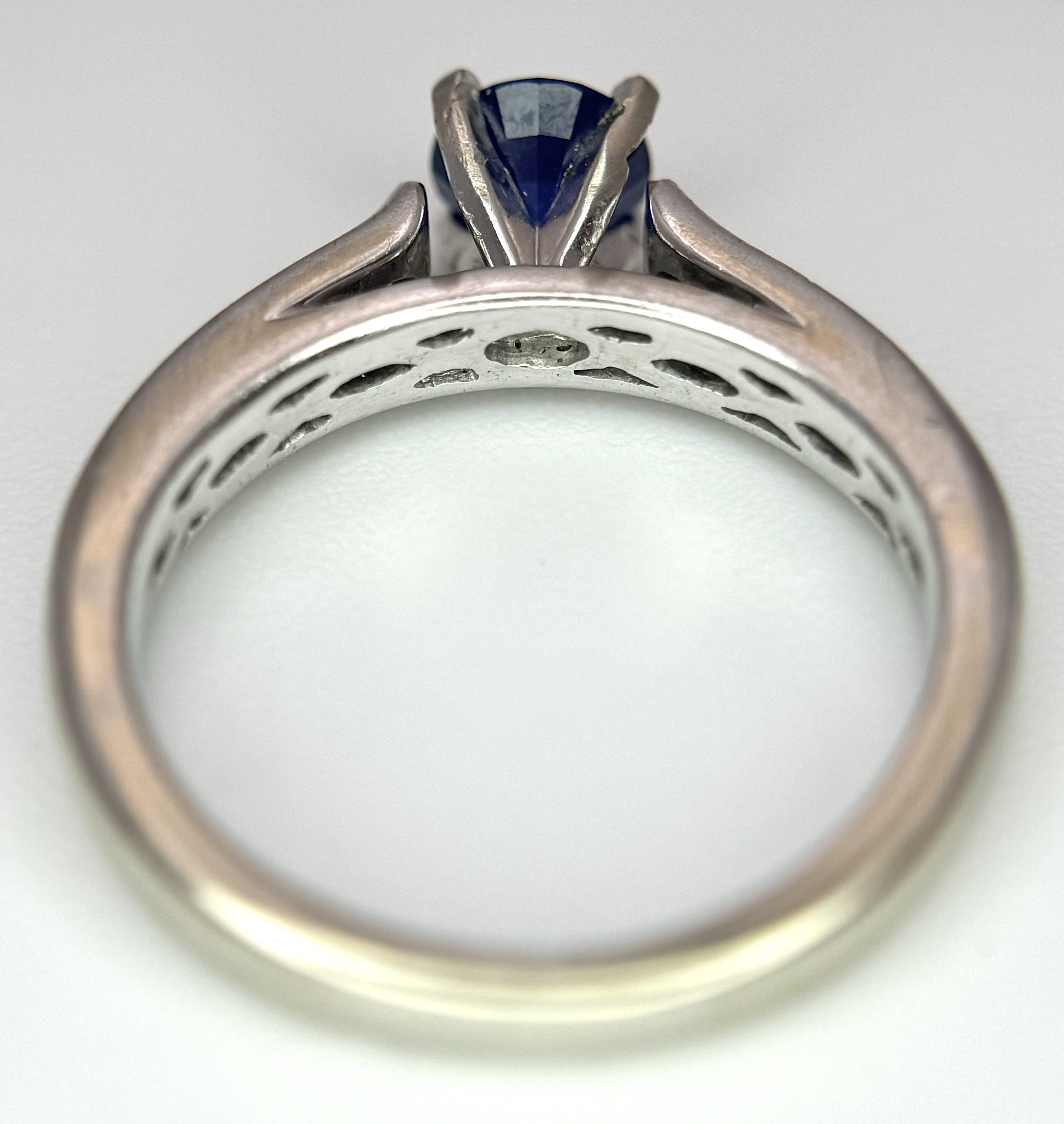 A 14K White Gold, Sapphire and Diamond Ring. 0.35ct centre stone. Size I. 3g total weight. N28/33005.