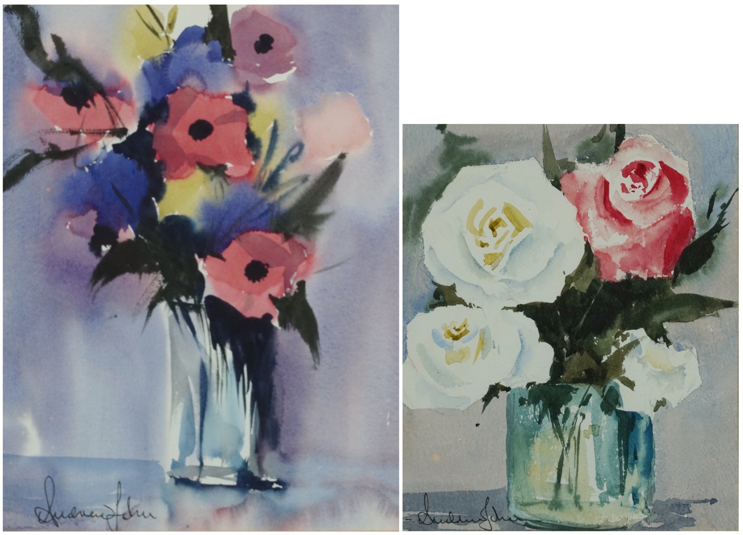 Andrew John - Still life vase of flowers, 20th century British school watercolour on paper, signed, framed and glazed, together with a similar work by the same hand, the largest 31 x 24cm.