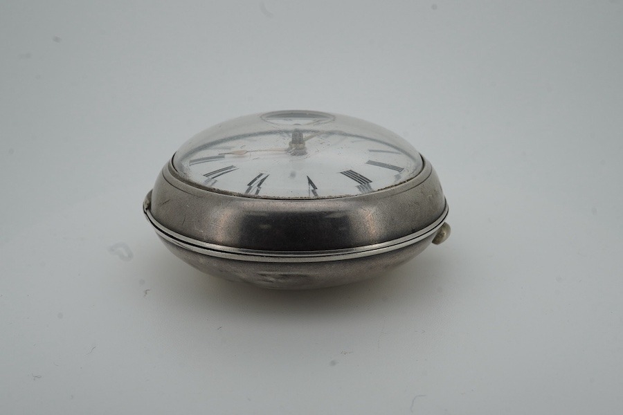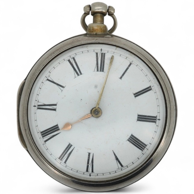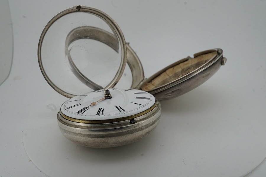 A George III silver pair case verge fusee pocket watch by H.N. Goodman, London, with Roman dial and signed movement numbered 13531, case hallmarked for London, 1804.