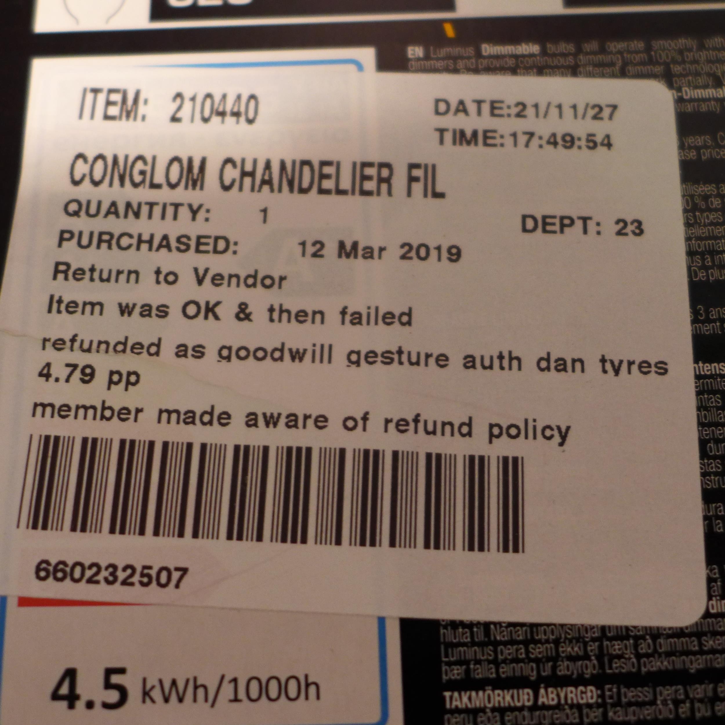 Conglom Chandelier Fil bulbs (246 -294,332)* This lot is subject to vat