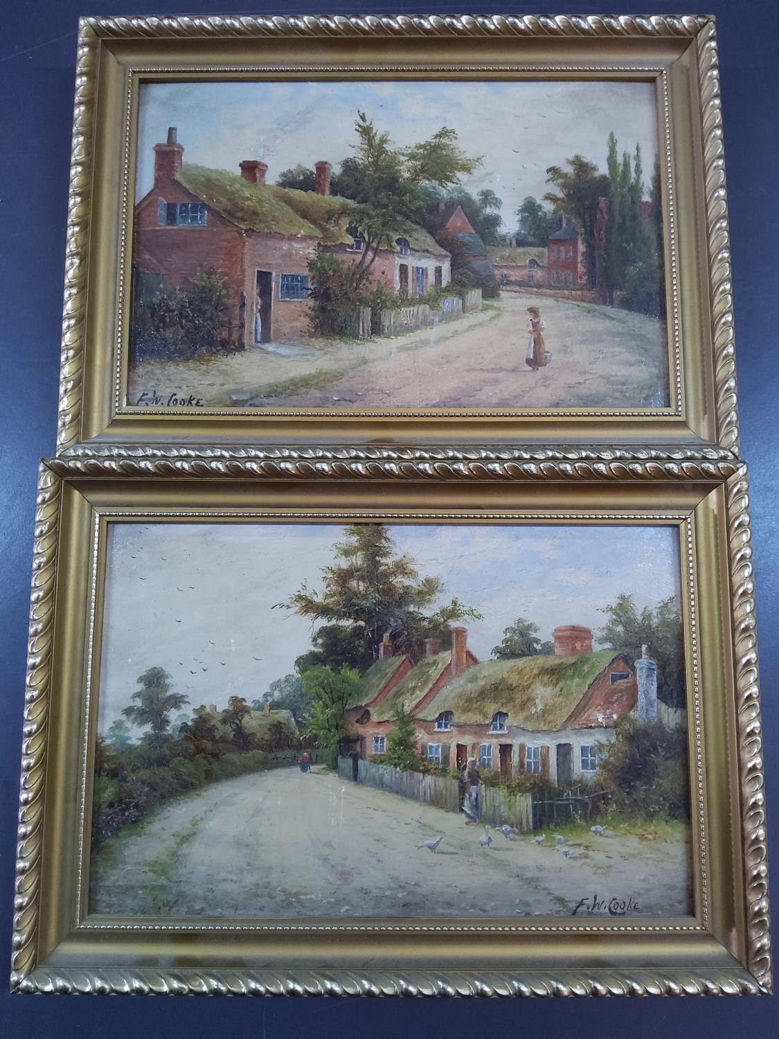 Pair of gilt framed oils on board
