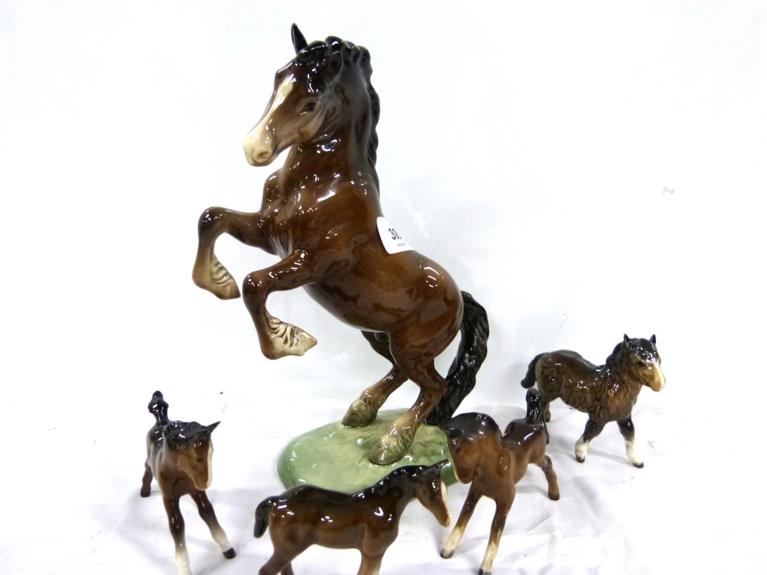 Beswick rearing Welsh cob horse and three Beswick foals (4)